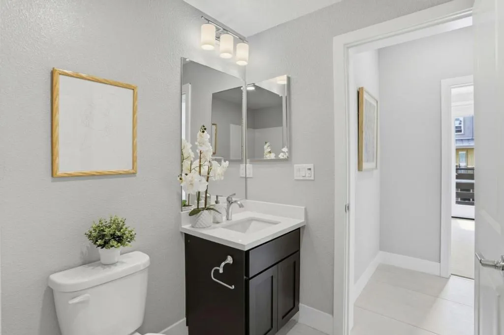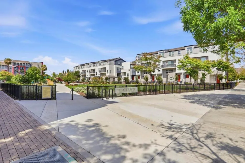 Immaculate and impeccably maintained, this townhome boasts a central location and stunning open views. It features abundant large picture windows that offer lush views and opulent soothing natural light. The open floor plan is decorated in contemporary neutral colors and high end luxurious finish with elegant oversized slab tiles throughout. The spacious and functional kitchen is equipped with ample Shaker cabinets, SS appliances, expansive quartz counters, and a large central island with convenient breakfast bar. Step out onto the intimate deck from the living room, seamlessly blending indoor and outdoor living. The generous master suite includes airy elevated ceilings, walk-in closet with elaborate organizers, and a lavish ensuite bath. The secluded main floor guest/in-law bedroom is adjacent to a full bath, providing privacy and convenience. Additional features including prewired electric car charging plug in the finished garage. Enjoy outdoor activities in the nearby Newbury Park. Community amenities include a BBQ/picnic area and a dog-friendly park. Convenient location: short commute to downtown San Jose, Japantown, and shopping centers like Costco, Ranch 99, and H-Mart, easy access to BART, VTA, freeways 101/680, and within walking distance to Google and Meta shuttle stops.