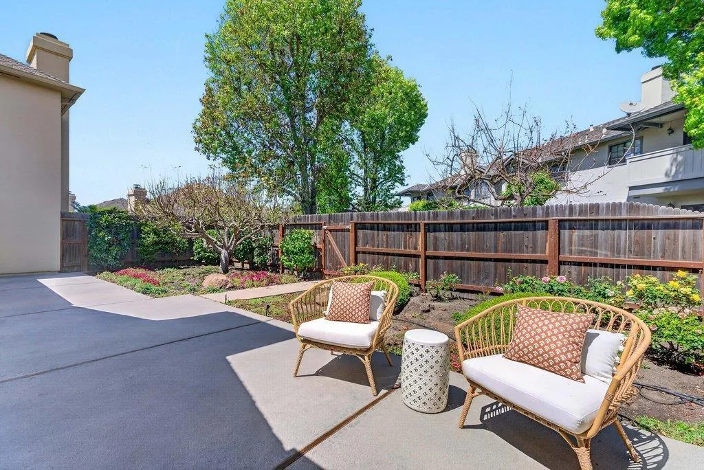 Beautifully updated single-level corner unit in the desirable Cambridge Village gated community! This move-in ready 3-bedroom, 2-bath home features new interior paint, brand-new carpet, and updated light fixtures throughout. The light-filled living room offers vaulted ceilings with exposed beams and a charming brick wood-burning fireplace, creating a warm and inviting space. Large windows and sliding doors provide abundant natural light and access to a private patio. The functional layout includes a spacious dining area and a well-maintained kitchen with ample cabinetry. The primary suite features mirrored closet doors and direct patio access. Enjoy community amenities including a clubhouse, pool, and sport court. Conveniently located within walking distance to shopping, dining, and everyday essentials. Clean, bright, and move-in ready!