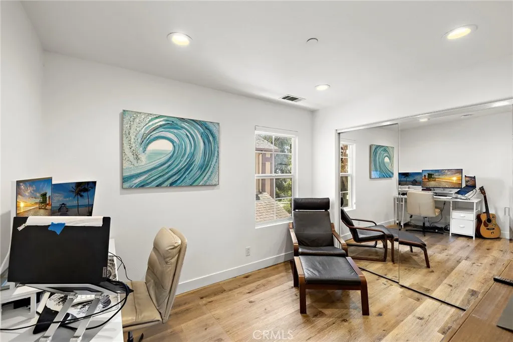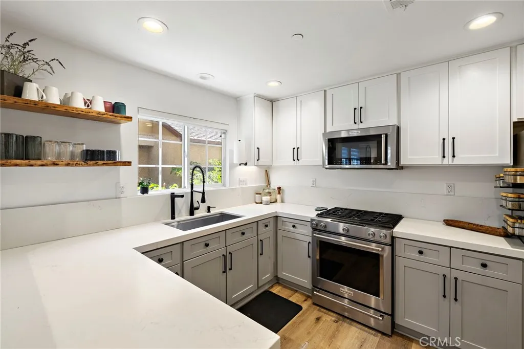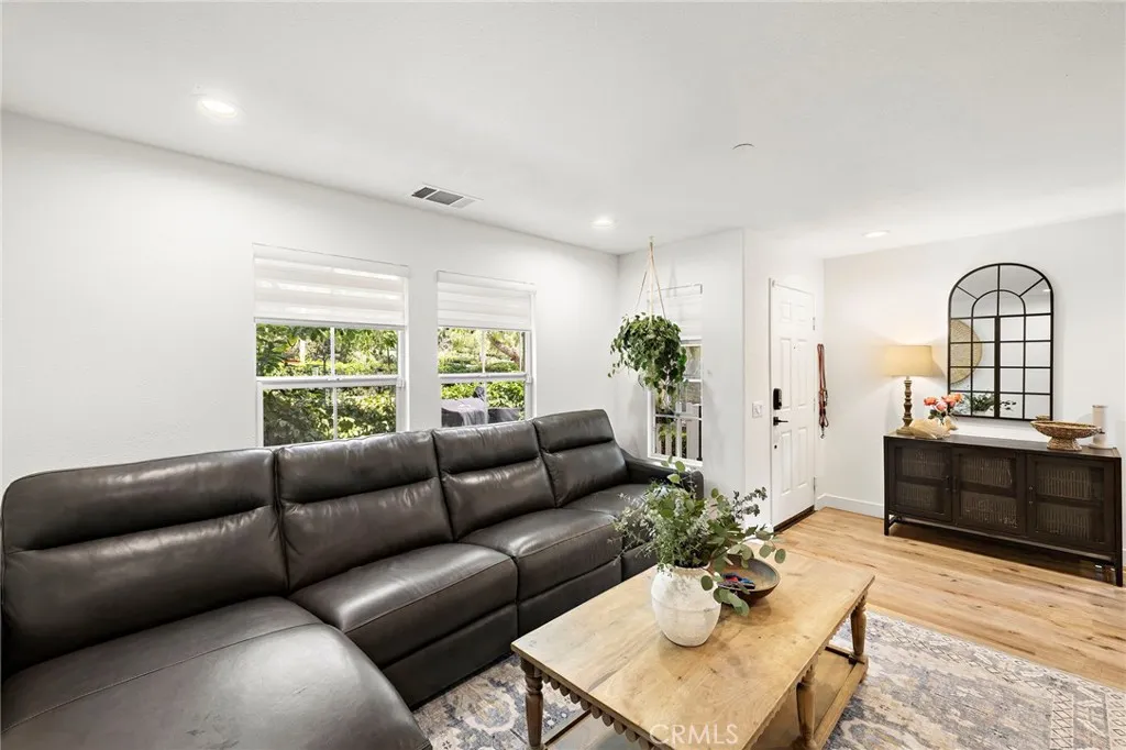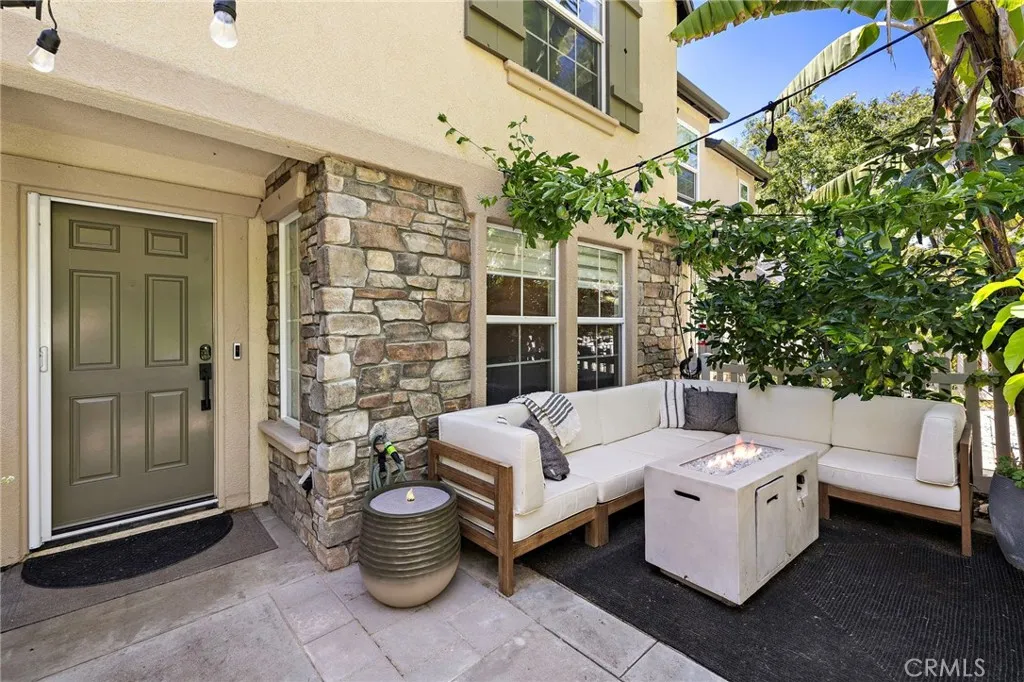 Set on a desirable corner lot in one of Ladera Ranch’s most charming neighborhoods, this beautifully upgraded townhome offers exceptional privacy, abundant natural light, and thoughtfully refined living. A private courtyard entry creates a warm and inviting first impression. Inside, the kitchen has been tastefully redesigned with refaced shaker cabinetry, honed quartz countertops, a deep stainless sink, and a dedicated reverse osmosis water system. The open-concept living and dining areas feel bright and elevated, featuring LVP flooring, recessed lighting on dimmers, and remote-controlled blinds for added comfort and convenience. The primary suite serves as a peaceful retreat, highlighted by a custom closet and a striking Venetian plaster accent wall that adds warmth and texture. Secondary spaces are equally well-appointed, including a refreshed guest bath with an enhanced shower and a versatile third bedroom ideal for a home office or guest accommodations. Major system upgrades provide peace of mind, including a newer AC and furnace (2021), whole-house fan, tankless water heater, whole-house filtration system, and water softener—delivering both efficiency and everyday comfort. The two-car garage is optimized with a side-mounted opener for additional storage, and the full two-car driveway—rare for townhomes in Ladera Ranch—adds valuable convenience. Outdoors, the private yard is both tranquil and productive, showcasing mature banana trees, a flourishing passion fruit vine, and a prolific lime tree. Residents enjoy access to resort-style amenities including several pools, spa, pickleball and tennis courts, water park, skate park—bringing the best of community living right to your doorstep