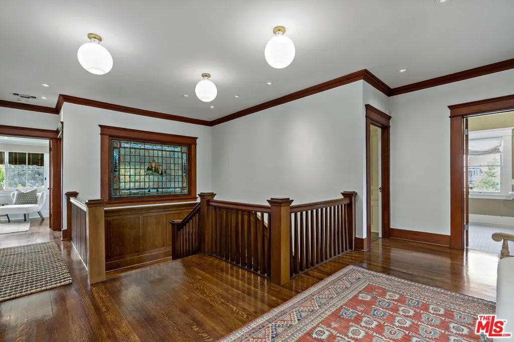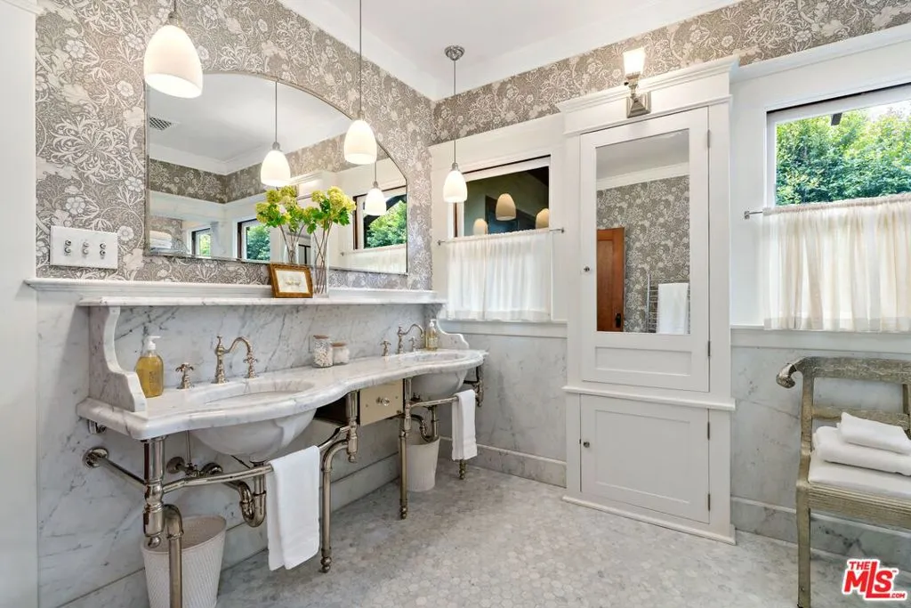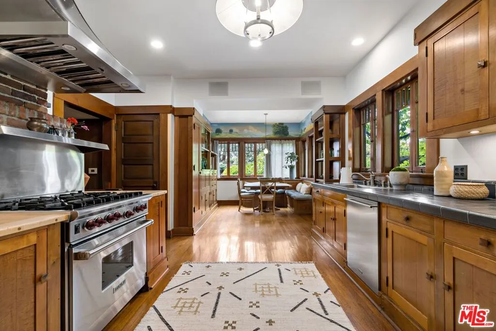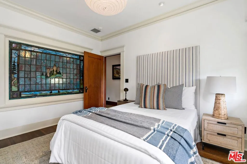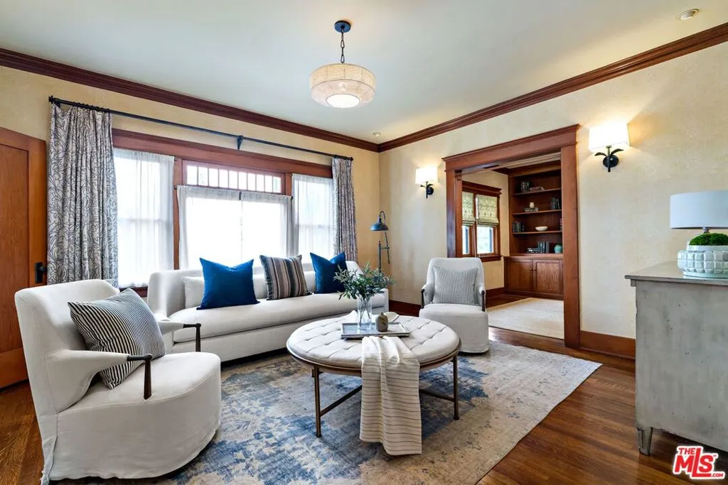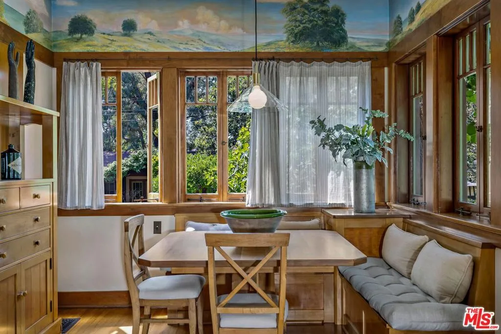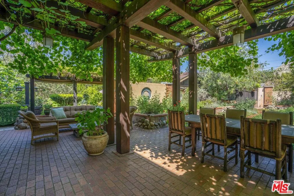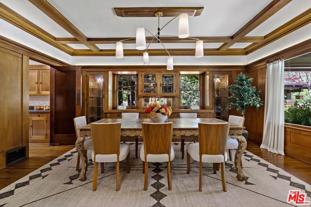 The Van Ness Estate is a rare 1912 Arts & Crafts compound set on more than half an acre in Windsor Square, surrounded by mature, beautifully layered gardens. Defined by architectural integrity, privacy, and seamless indoor-outdoor living, it offers a timeless vision of California living - thoughtfully refined for modern life.The property unfolds across five distinct structures: the main residence, a two-bedroom guest house with fireplace and full kitchen, a poolside pavilion with gym and underground wine cellar, a private studio or office, and a plumbed garden structure. Original millwork in quarter-sawn oak, Honduran mahogany, and redwood along with stained-glass windows and two handcrafted tile fireplaces establish a rich architectural foundation, while carefully considered updates introduce contemporary comfort with quiet sophistication. Inside the main residence, a grand oak-paneled entry opens to formal and relaxed living spaces. An elegant living room flows through glass-paneled pocket doors into a dramatic sunken library with fireplace and cathedral ceiling made of Honduran mahogany. The formal dining room - complete with its original built-in sideboard - over looks an expansive patio. The kitchen features custom maple cabinetry and top-tier appliances, opening to a sunlit breakfast room with tranquil views of the pool and grounds. Upstairs, five sunny bedrooms and three baths include a serene primary suite designed as a true retreat, with adjoining spaces for work, reading, or wellness.Outdoors, the landscape is composed as a series of enchanting garden rooms, artfully linked by winding paths and vine-covered pergolas. A park-like native California garden, fireplace terrace with pizza oven, Moroccan-inspired courtyard, bamboo shade garden, and three tranquil fountains introduce layers of texture and contrast, while a canopy of mature trees provides privacy and a sense of permanence. At the center, a 45-foot pool and spa are framed by dining terraces and shaded lounges, evoking the calm and refinement of a private resort.Located just blocks from Larchmont Village - with its boutiques, cafes, restaurants, and weekly farmers market - the estate offers both convenience and a quintessential Los Angeles lifestyle. A truly rare offering, the Van Ness Estate brings together heritage craftsmanship, privacy, and modern livability within historic Windsor Square - uniting architectural significance with the scale of a true compound in one of the area's most distinguished residential settings. vannessestate.com