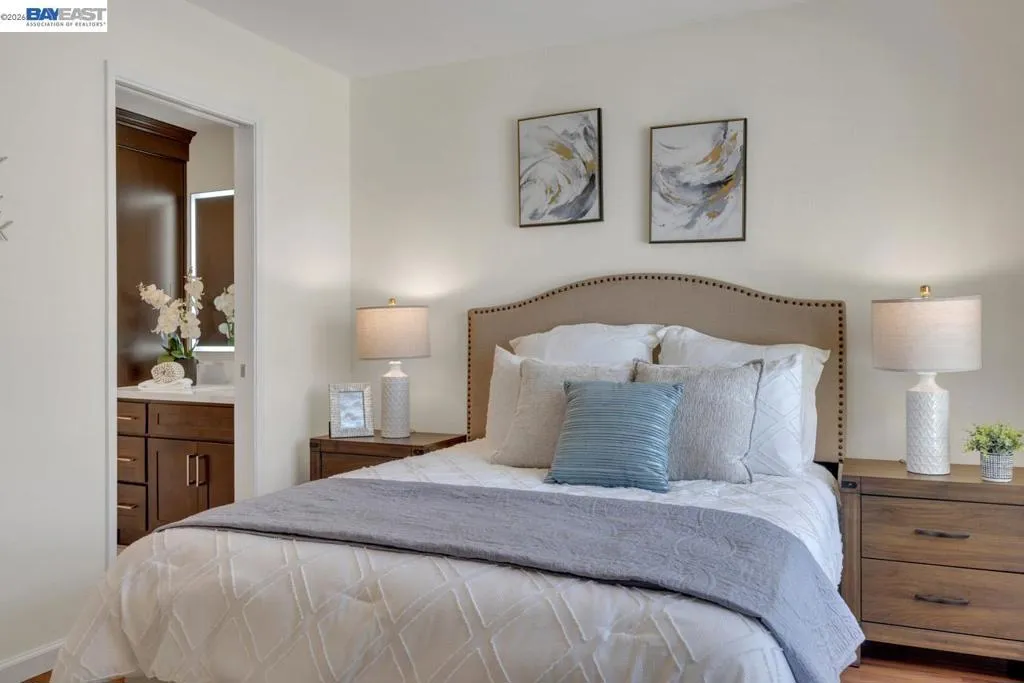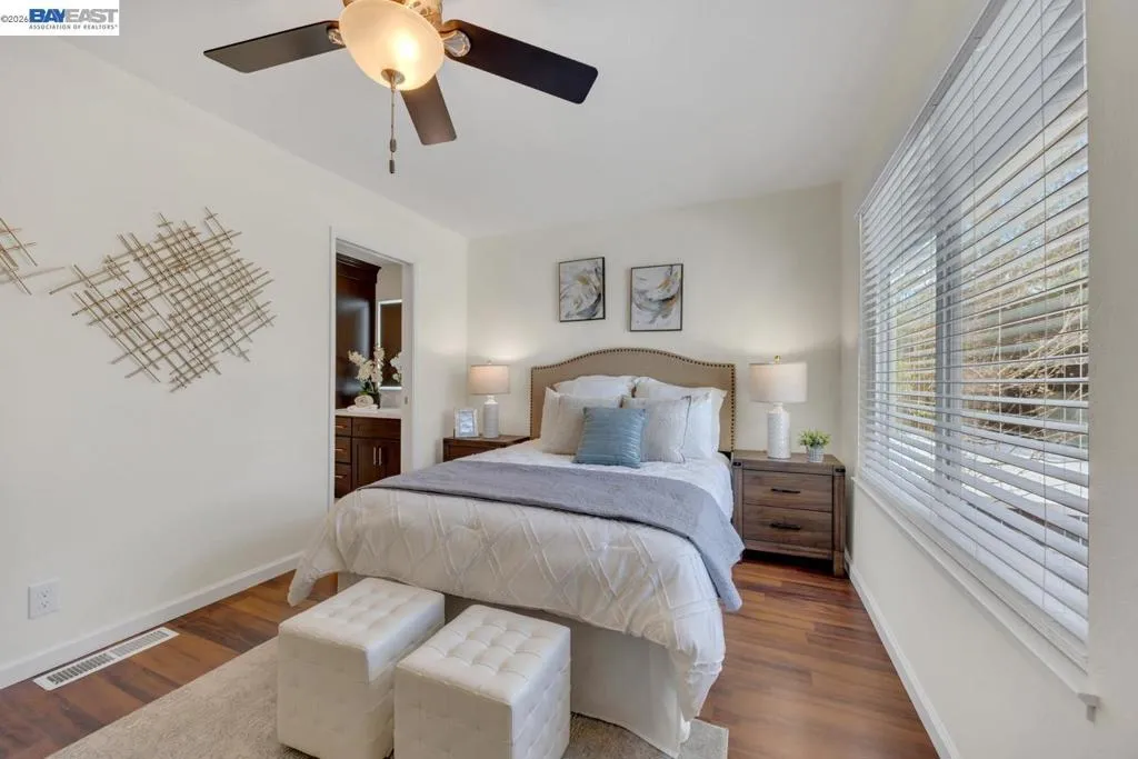Welcome to this beautifully transformed Plaza Del Valle townhouse, ideally situated moments from Downtown Pleasanton. This unique property offers 3 bedrooms & 2.5 bathrooms, including the significant addition of a fully permitted full bathroom, ensuring comfort & flexibility. Every bathroom has been thoughtfully renovated with elegant finishes, enhancing the home's contemporary aesthetic. Further upgrades include energy-efficient dual-pane windows, brand-new laminate flooring, modern window blinds, fresh interior paint, & ceiling fans, creating a bright ambiance. Prepare to be inspired in the chef's dream kitchen, equipped with luxurious granite countertops, premium stainless steel appliances, & sleek white cabinetry. The expansive primary bedroom suite offers a private sanctuary, featuring a stunning en suite bathroom. All full bathrooms boast custom tilework, modern shower enclosures, stylish vanities, & practical extra storage cabinetry, reflecting a commitment to quality. This townhouse seamlessly blends modern amenities with an unbeatable location. Enjoy the convenience of dedicated parking, a private patio for outdoor enjoyment, EV charger outlet & a water softener system. Within the highly-regarded Pleasanton Unified School District & the Downtown. A Must see!