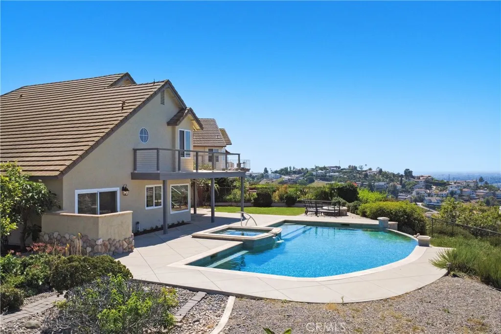 Welcome to 5719 East West View Drive! Set within the exclusive, 24-hour guard-gated community of Rocking Horse Ridge, this two-story, 4-bedroom, 2.5-bathroom home offers privacy, elegance, and breathtaking mountain views. The first floor features a living room with a floor-to-ceiling fireplace, an eating area with direct backyard access, and a bright kitchen with stainless steel appliances and a breakfast nook overlooking the backyard and mountains. The family room has a fireplace, wet bar, and sliding door leading to the covered patio. A convenient half bath, laundry room, and spacious 2-car garage complete the main level. Upstairs, the primary suite boasts vaulted ceilings, a private balcony with stunning views, and a spa-inspired bathroom with dual vanities, separate shower and soaking tub, and walk-in closet. Three additional bedrooms share a hallway bath. The backyard is ideal for entertaining, featuring a private pool and spa, scenic views, and plenty of space for lounging. Rocking Horse Ridge offers resort-style amenities, including a pool, spa, clubhouse, tennis and pickleball courts, and scenic viewpoints. Centrally located with easy access to the 5/55/22 freeways, local shops, dining, hiking trails, Peters Canyon Regional Park, Old Town Orange, and more! Don’t miss out on this rare opportunity!