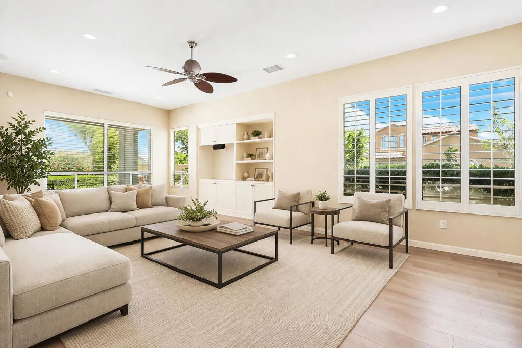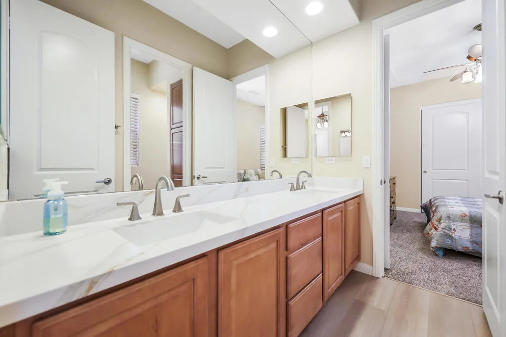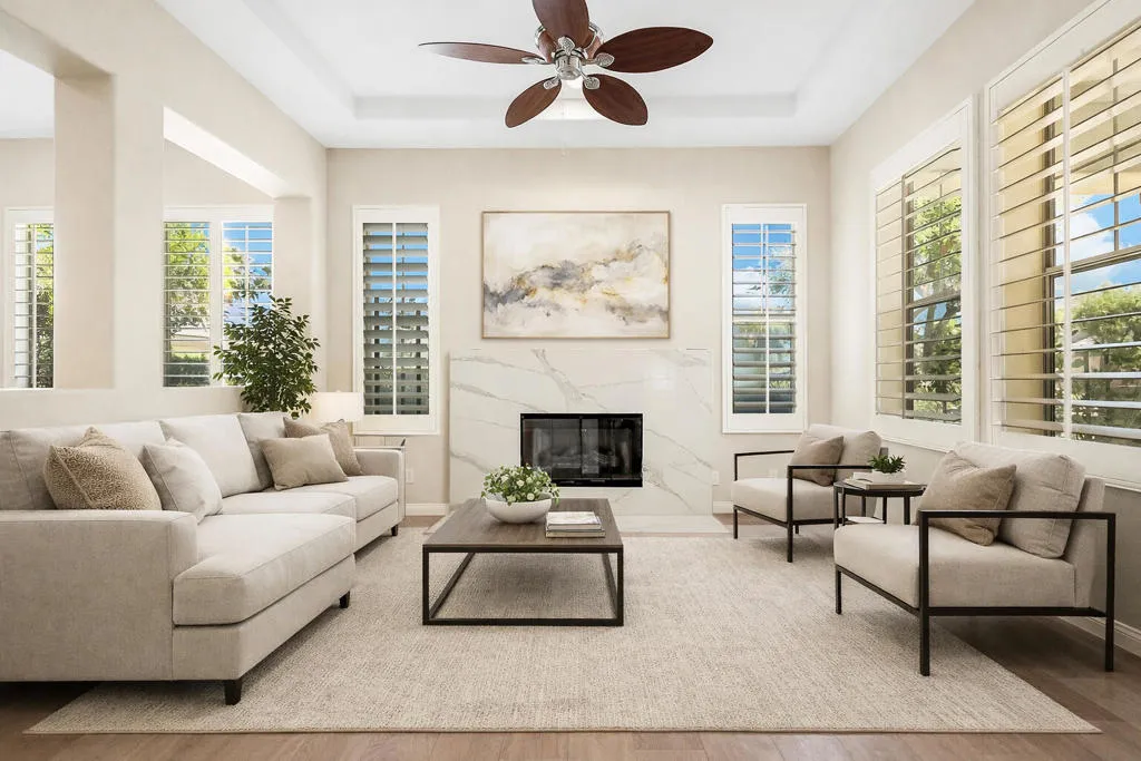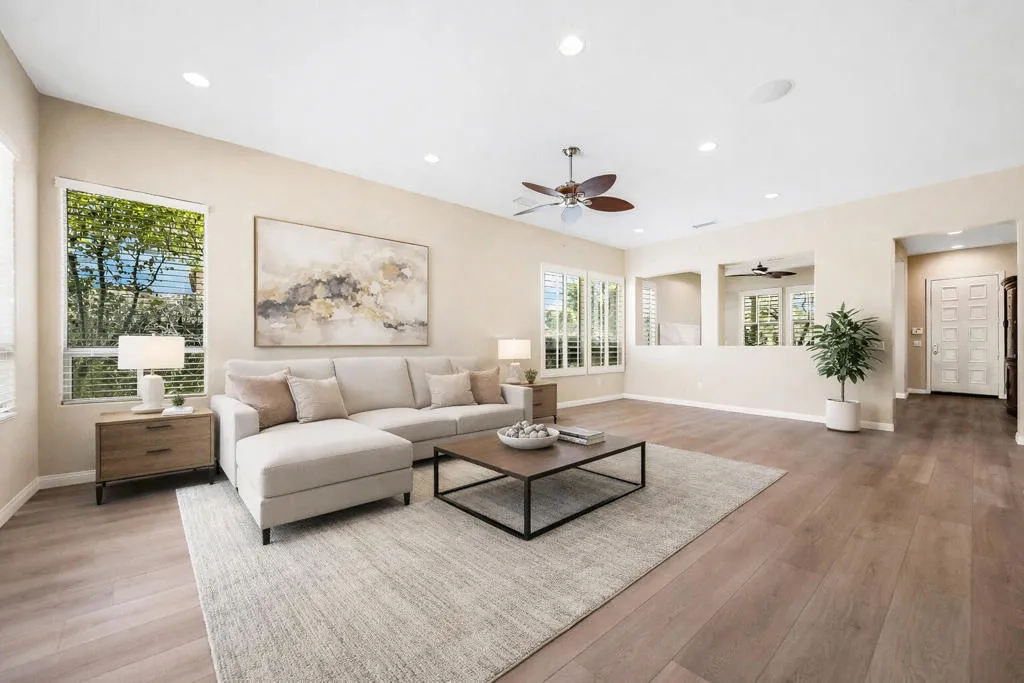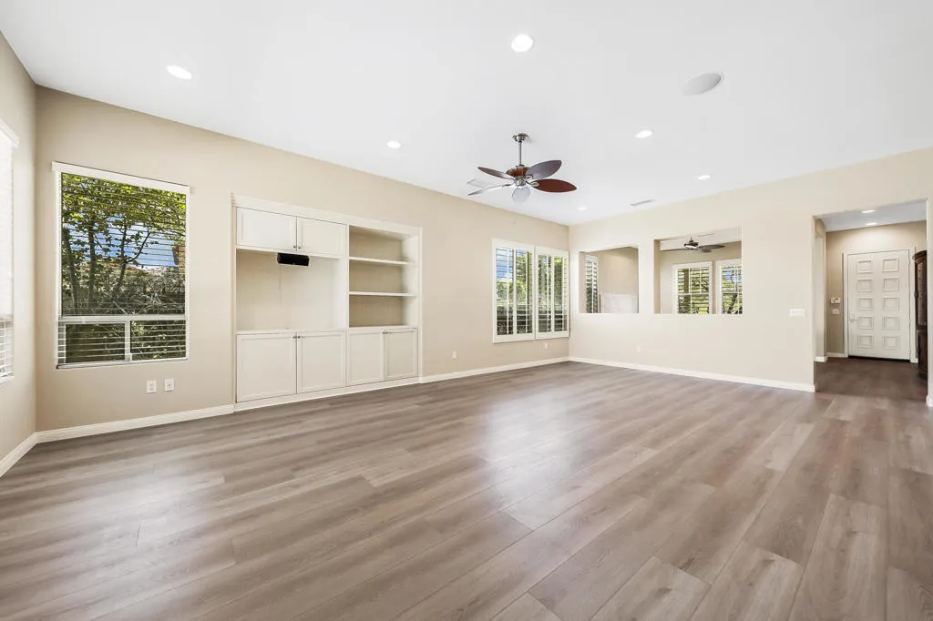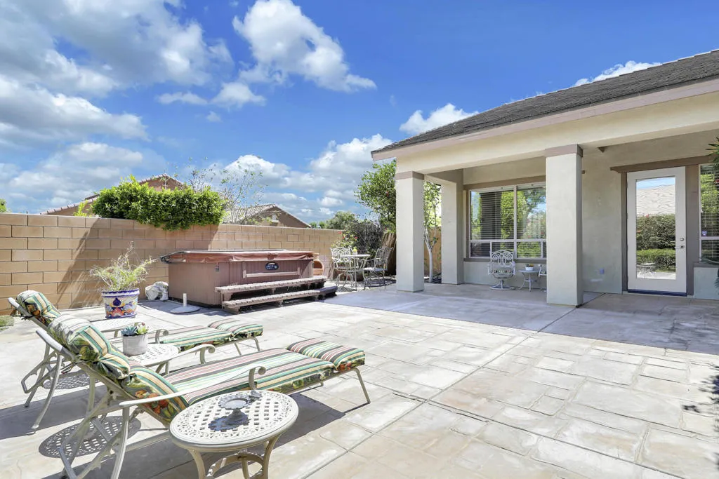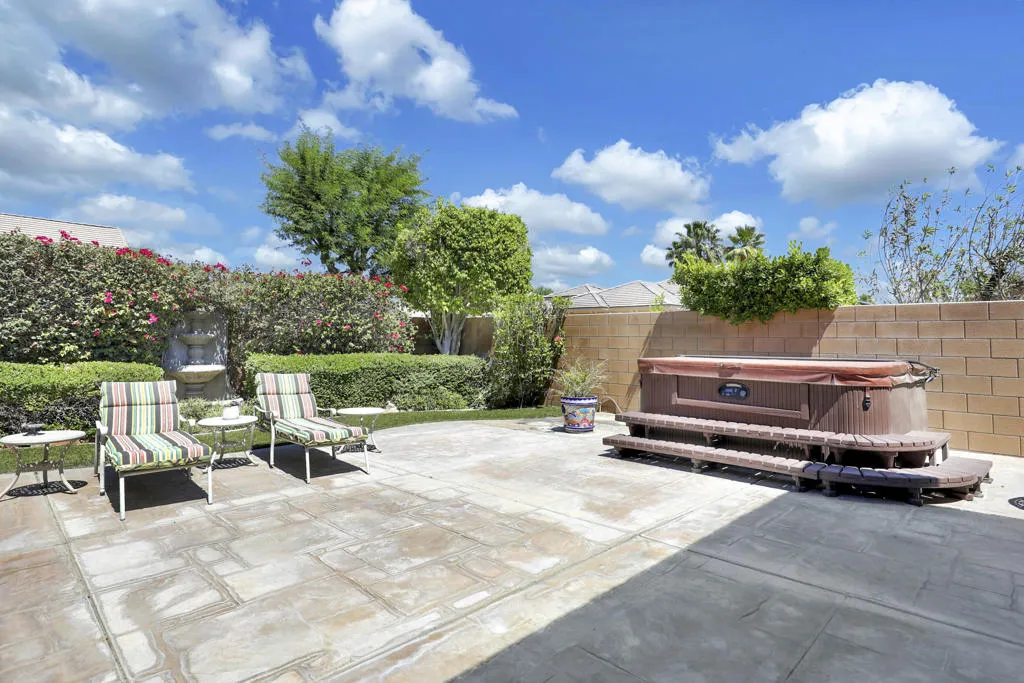Open, bright, and absolutely stunning! This beautifully remodeled 3-bedroom, 2.5-bath home feels brand new from the moment you step inside. Perfectly situated on the posada with serene landscaping and fountain which offers your home both style and tranquility.Enjoy the high volume ceilings, elegant quartz countertops throughout, and a designer chef's kitchen that's perfect for cooking and entertaining. The inviting fireplace, and brand-new flooring add warmth and sophistication, while every detail has been thoughtfully upgraded. The oversized primary suite has a deluxe soaking tub and shower with large walk-in closet. The guest rooms are adjoined with a Jack and Jill bath. Step outside to your private backyard sanctuary, complete with mature landscaping and your very own spa!The common areas are spectacular as well! Large sparkling pool and spa, outdoor play area and an impressive gym for the homeowners.Don't miss this incredible opportunity - your dream home is here. Schedule your private showing today!