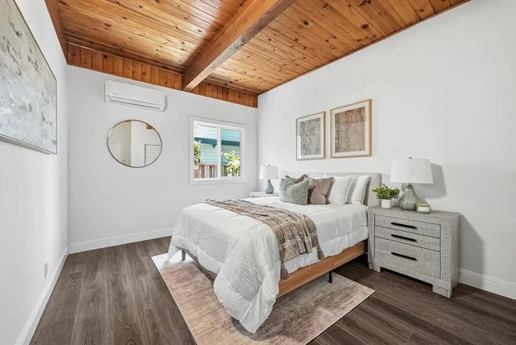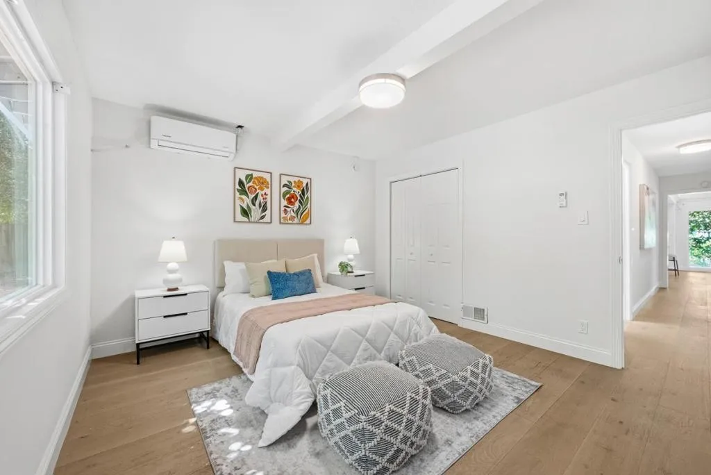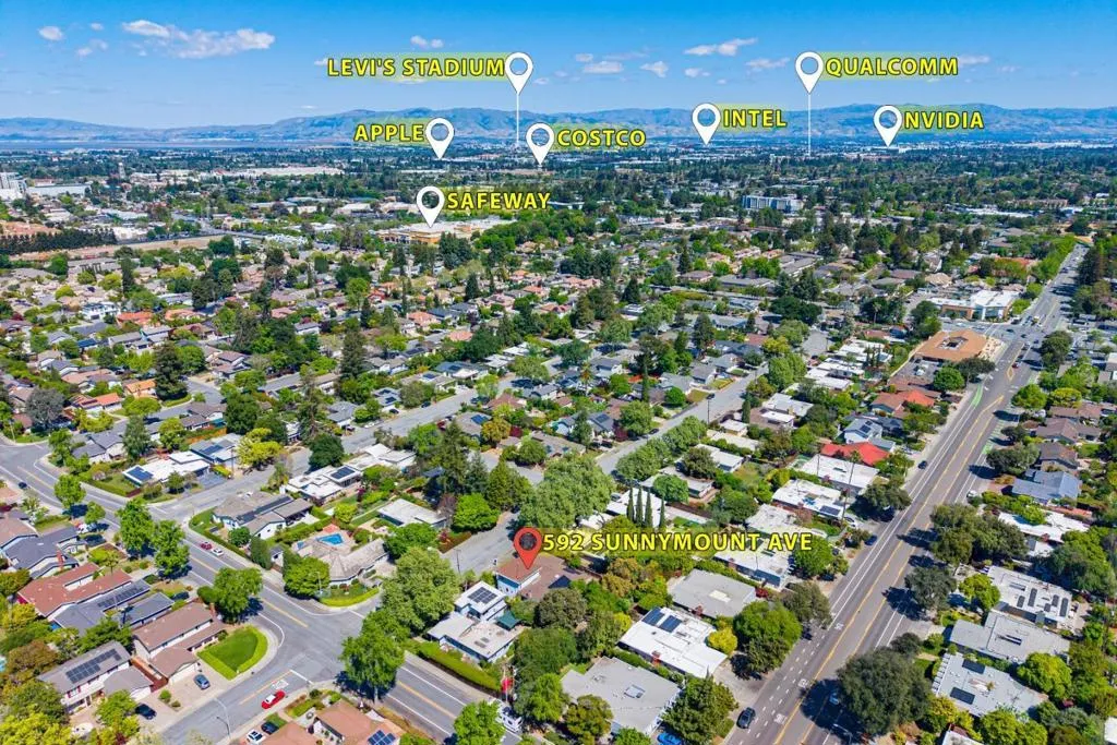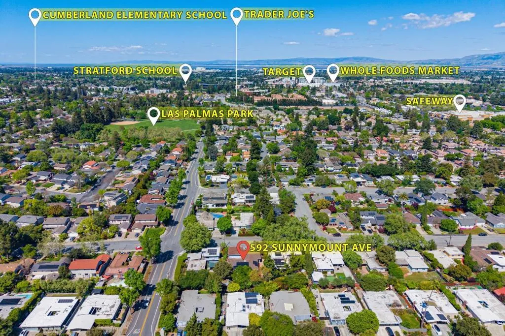 Welcome to this beautiful two-story single-family home in Sunnyvale, set on an expansive 8,850 sqft lot. A paved front path leads into a spacious living room with large view windows overlooking the front yard. The space flows seamlessly into a stunning kitchen featuring a center island highlighted by modern pendant lighting, stylish countertops, stainless steel appliances, ample white cabinetry, and recessed lighting. The connected dining room is perfect for gatherings, accented by a crystal ceiling light. The east hallway leads to bedrooms and an updated bath with a skylight, double vanity with quartz countertops, and a stall shower. Along the west hallway are additional rooms and a hallway bath with double vanity, quartz countertops, and a stall shower. A bonus sunroom sits at the back of the home. Upstairs features additional rooms and an office, along with an updated hallway bath featuring a double vanity, lighted mirror, and stall shower. The large backyard is ideal for outdoor activities. Additional features include solar panels, in-unit laundry, and an attached garage. Conveniently located near restaurants and parks such as Las Palmas Park, as well as groceries such as Safeway and Trader Joes. Enjoy great public schools and easy access to major tech companies.