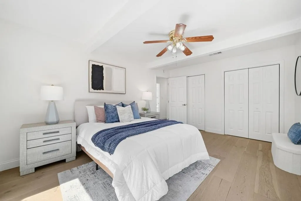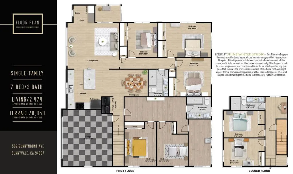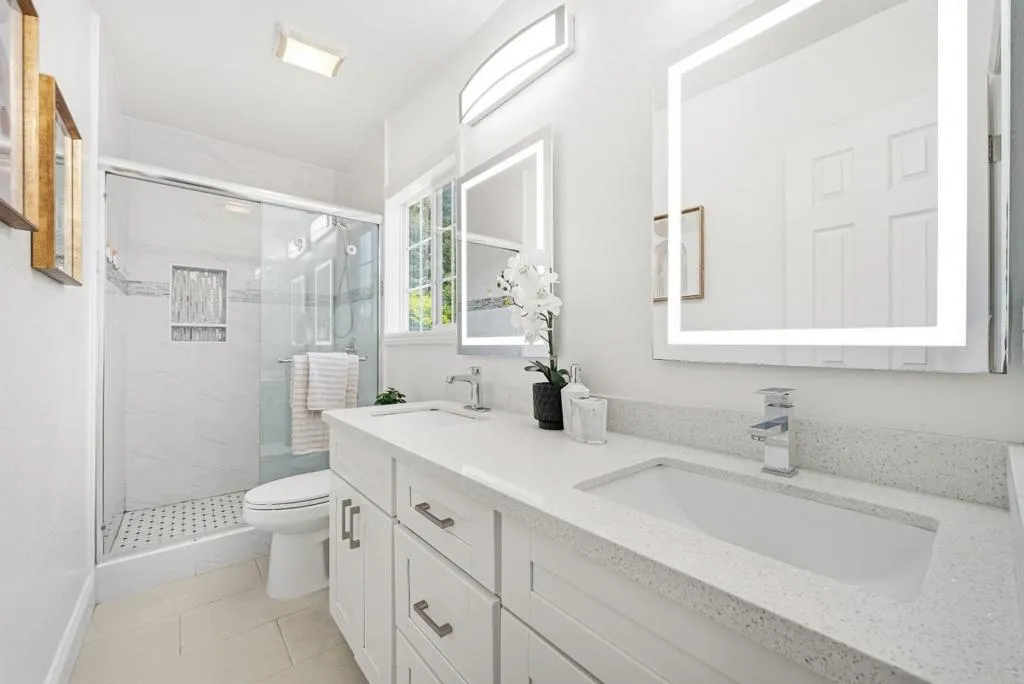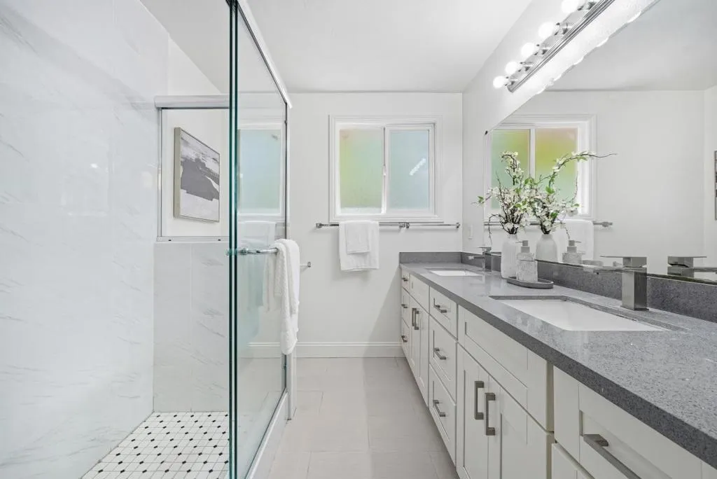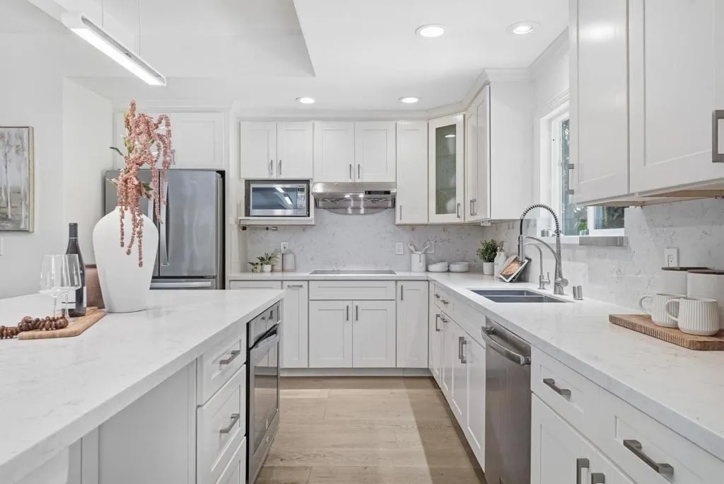 Welcome to this beautiful two-story single-family home in Sunnyvale, set on an expansive 8,850 sqft lot. A paved front path leads into a spacious living room with large view windows overlooking the front yard. The space flows seamlessly into a stunning kitchen featuring a center island highlighted by modern pendant lighting, stylish countertops, stainless steel appliances, ample white cabinetry, and recessed lighting. The connected dining room is perfect for gatherings, accented by a crystal ceiling light. The east hallway leads to bedrooms and an updated bath with a skylight, double vanity with quartz countertops, and a stall shower. Along the west hallway are additional rooms and a hallway bath with double vanity, quartz countertops, and a stall shower. A bonus sunroom sits at the back of the home. Upstairs features additional rooms and an office, along with an updated hallway bath featuring a double vanity, lighted mirror, and stall shower. The large backyard is ideal for outdoor activities. Additional features include solar panels, in-unit laundry, and an attached garage. Conveniently located near restaurants and parks such as Las Palmas Park, as well as groceries such as Safeway and Trader Joes. Enjoy great public schools and easy access to major tech companies.