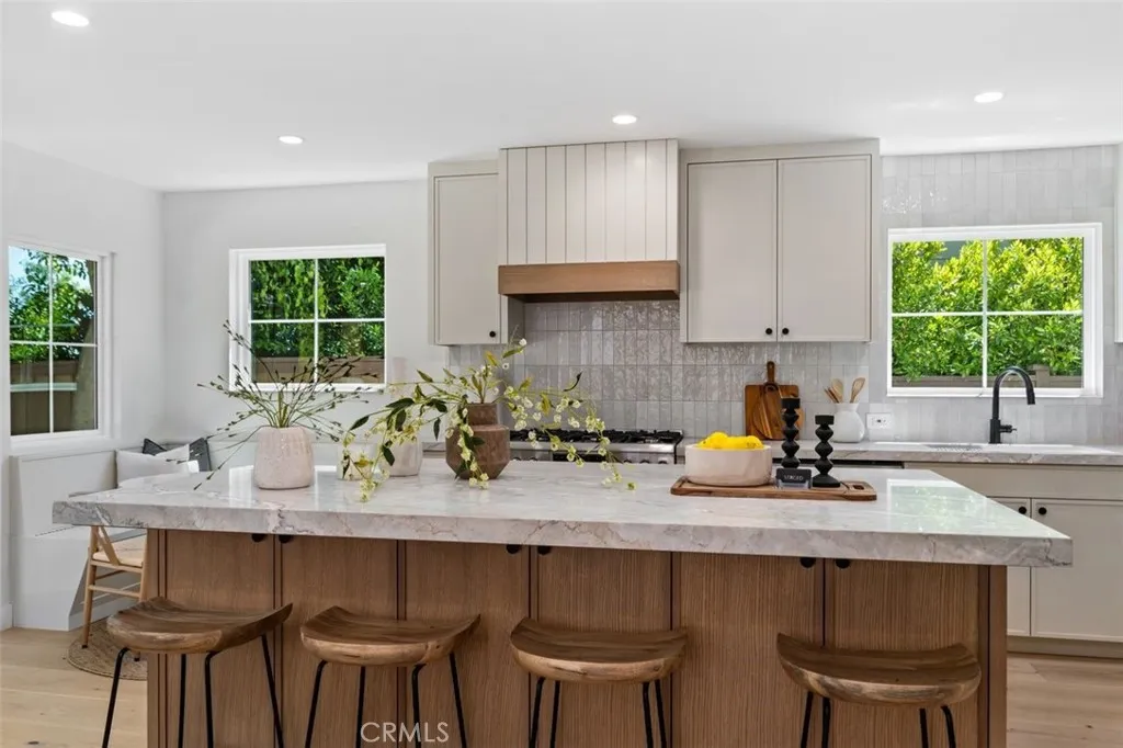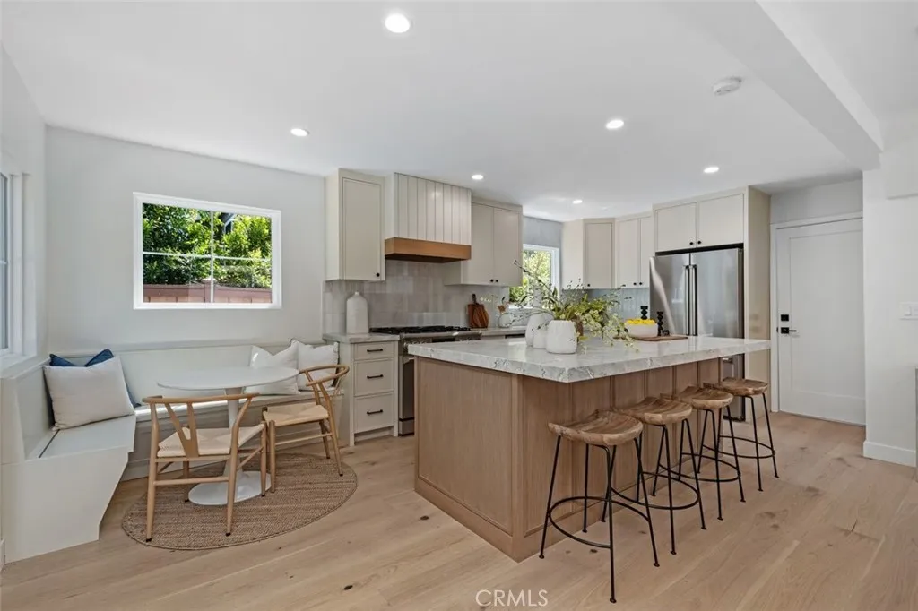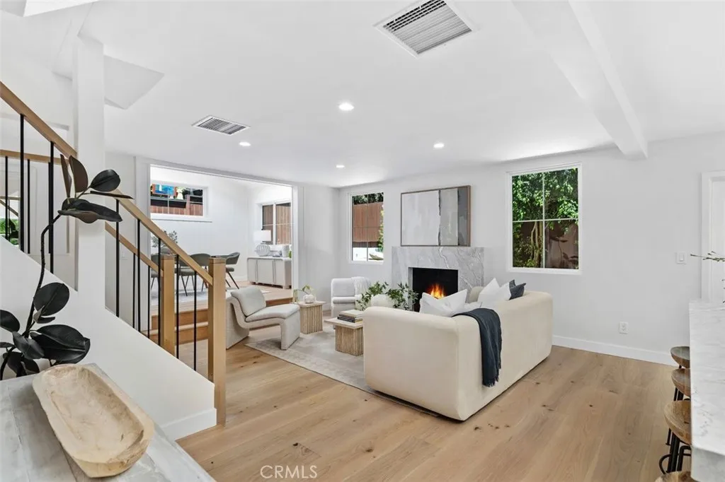 Perched in the highly sought-after Top of the World neighborhood, this completely reimagined coastal residence blends refined design with effortless Laguna Beach living. Spanning approximately 2,400 square feet, the home offers 4 bedrooms and 3 bathrooms, thoughtfully designed with both functionality and elevated style in mind. From the moment you enter through the front Dutch door, you are greeted by an abundance of natural light, and beautiful wide plank wood flooring that creates a warm, modern coastal aesthetic throughout. The open-concept kitchen serves as the heart of the home, featuring custom stone countertops, all new appliances, large center island, built-in breakfast seating, and seamless flow into the main living space—ideal for both everyday living and entertaining. A striking custom stone fireplace anchors the living room and den, while expansive windows invite in natural light and coastal breezes. The primary suite is a true retreat, offering ocean views, a private deck, generous scale, and an oversized walk-in closet with laundry. An adjacent office space with beamed ceilings provides the perfect work-from-home environment with an inspiring backdrop. Three bedrooms are located upstairs, while a highly desirable main-level en-suite bedroom with its own private entrance offers flexibility for guests, extended family, or a private workspace. Both the front and rear outdoor spaces have been completely re-landscaped, creating clean, low-maintenance environments that complement the home’s coastal design. Additional highlights include a two-car garage and parking for up to three additional vehicles—an uncommon convenience in this location. Completely turnkey and ideally positioned just minutes from Laguna’s renowned beaches, hiking trails, and village amenities, this home represents a rare opportunity to own a fully renovated property in one of Laguna Beach’s most desirable communities.