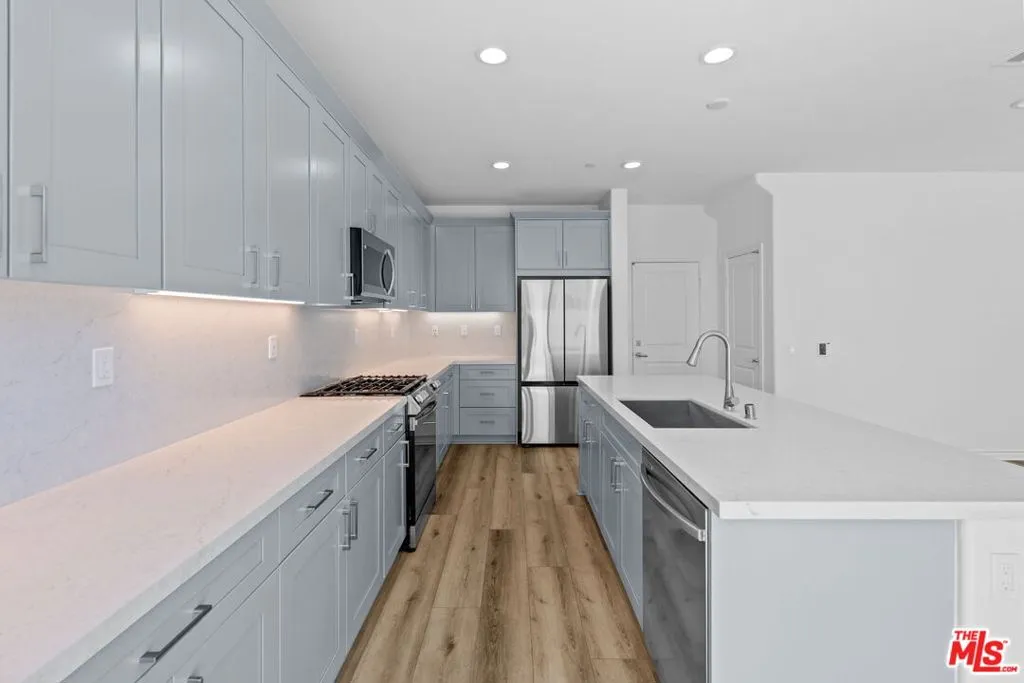 Experience this 2024 built modern Craftsman home in the sought-after Citra community of Whittier! This stunning 4-bedroom, 3-bathroom residence blends contemporary design with effortless functionality. The heart of the home is a chef-inspired kitchen featuring sleek quartz countertops, under-cabinet mood lighting, classy Thermofoil shaker cabinets, and an expansive center island perfect for morning coffee or evening entertaining that can flow outside to the private backyard patio. Enjoy a versatile layout with a convenient downstairs bed/bath suite and a spacious upstairs loft tailored for a home office or media room. Fully equipped with a premium suite of appliances and a comprehensive smart home package (solar panels, Ring, digital thermostat, and mobile-controlled lighting/garage), this home is truly turnkey. Located just steps from the Whittier Palm Park Center, the Whittier Greenway Trail, schools, and the vibrant dining and shopping of Uptown Whittier and Whittier Blvd.