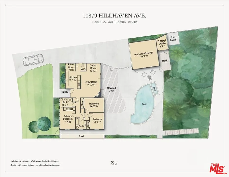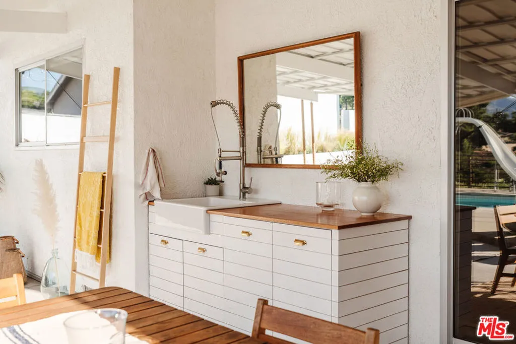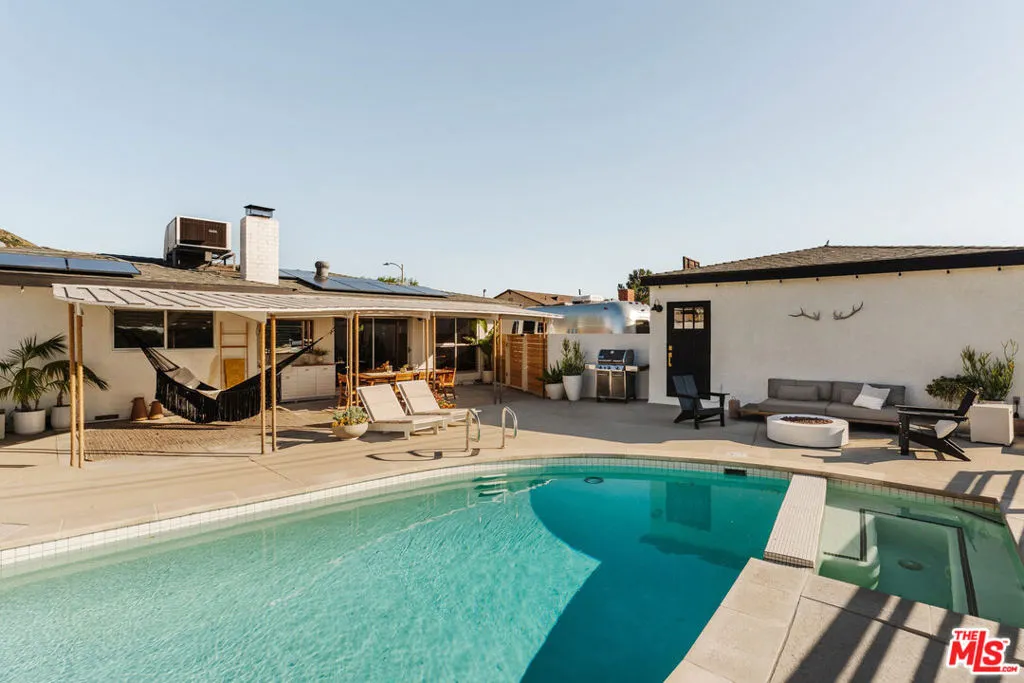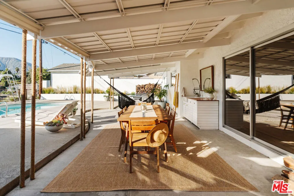 Turnkey and fully reimagined, this midcentury ranch pool home in the desirable Sevenhills neighborhood rests against the rolling hills of Tujunga, offering a seamless blend of design and setting. Thoughtfully updated throughout, the interiors reflect a considered, artful approach. The living room anchors the home with a stone-clad fireplace and walls of glass sliders, opening effortlessly to the outdoors and connecting to a dining area designed for easy flow. The open layout invites natural light and landscape in at every turn, creating a continuous dialogue between interior and exterior spaces. The chef's kitchen is both refined and functional, with top of the line appliances, custom cabinetry, marble countertops, and a built-in banquette designed for everyday living. Hardwood floors, custom paneling, and curated finishes carry a quiet warmth, while windows throughout frame verdant hillside views, grounding the home in its natural surroundings. The three-bedroom, two-bath layout is both comfortable and flexible, with a natural flow between spaces. Outdoors, a saltwater pool with a dramatic slide and heated spa overlooks the canyon, creating a striking backdrop for gatherings and long afternoons at home. The garage has been converted into a professional woodshop, with a separate ceramics studio tucked just beyond; complete with its own outlook to the surrounding hills. A robust, owned solar package with Tesla battery backup and electric car charger offers environmentally conscious living and utilities savings. Perfectly perched in serene Tujunga just minutes from the trailheads of Angeles National Forest and the charm of Montrose Village. A seamless blend of original character, canyon views, and a sparkling pool, set within one of Tujunga's most scenic enclaves.