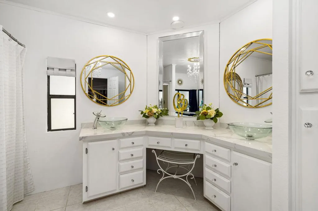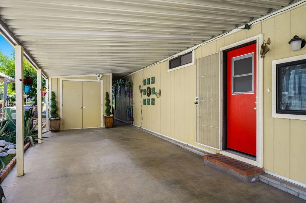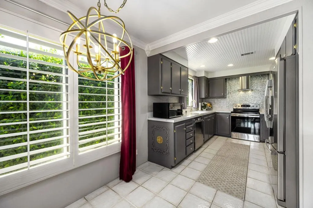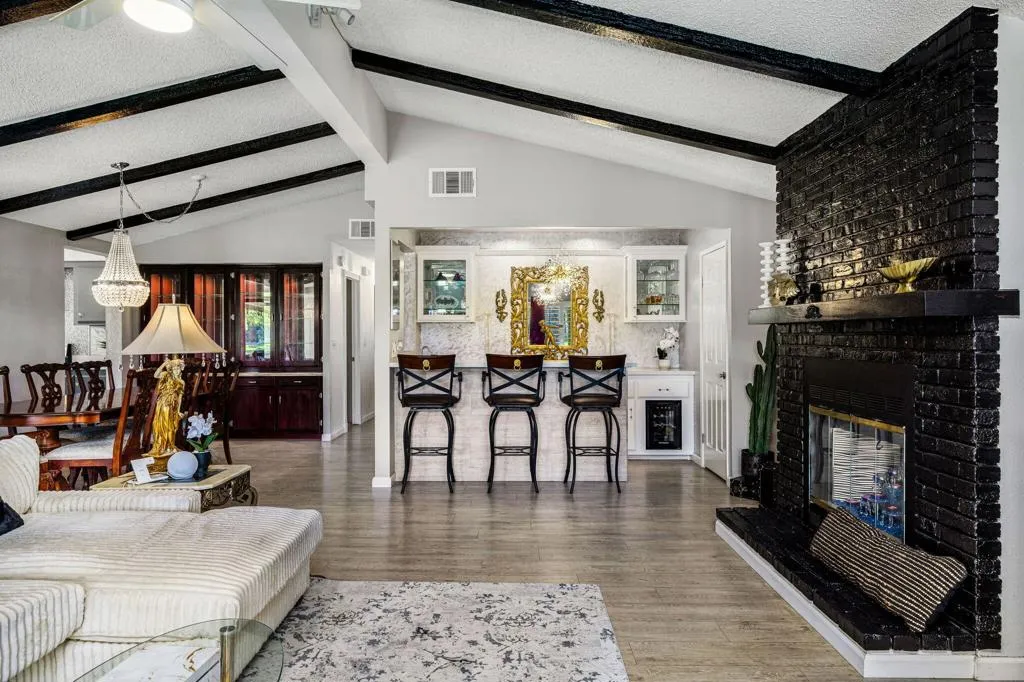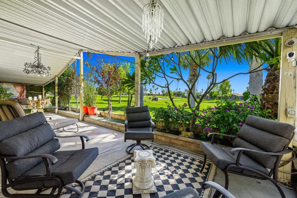 Experience bright, open living in this beautifully appointed 2-bedroom, triple-wide residence with stunning eastern golf course views. Spanning approximately 1,920 sq. ft., this thoughtfully REMODELED, energy-efficient SOLAR home blends comfort, style, and functionality--ideal for everyday living and effortless entertaining.The expansive great room features vaulted ceilings, striking art walls, a full wet bar, and wide picture windows that capture sweeping views of the course and wraparound patio. Select windows include custom solar screens to reduce glare and block harsh sunlight while maintaining natural light. The inviting kitchen offers stainless steel appliances, a five-burner electric cooktop, ample cabinetry with a pantry, and generous counter space. A charming garden window enhances the space with sunlight and serene greenery views.The open living and dining areas provide a perfect setting to relax by the fireplace or host gatherings, complemented by built-in cabinetry. The spacious primary suite offers a peaceful retreat with a large walk-in closet and a remodeled ensuite bath featuring a dual vanity, abundant storage, and a walk-in shower. The generous size guest bedroom includes mirrored wardrobe doors and convenient access to the guest bath.Outdoor living shines with a wraparound patio offering multiple seating areas to enjoy the tranquil golf course setting. The versatile laundry room doubles as a workspace, complete with room for a desk, ample storage, a deep utility sink, and direct access to the carport and storage shed.Suncrest Country Club is an exclusive 55+ active adult community offering 3 pools & spas, tennis and pickleball courts, and a 9-hole executive golf course. The gated neighborhood also features a vibrant social calendar with seasonal events and weekly gatherings at the clubhouse, all within close proximity to dining and shopping. Don't miss the opportunity to experience the Suncrest Country Club lifestyle. * Offered Partially Furnished. * Buyer to verify all information.
