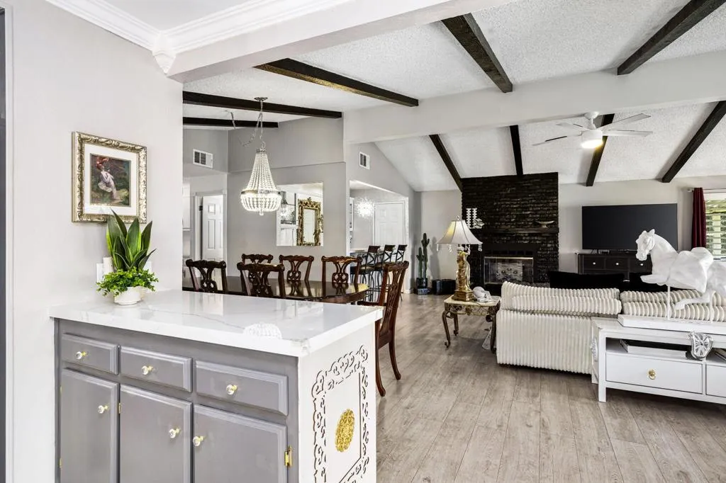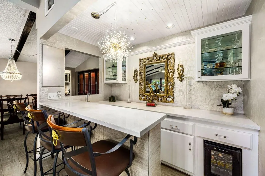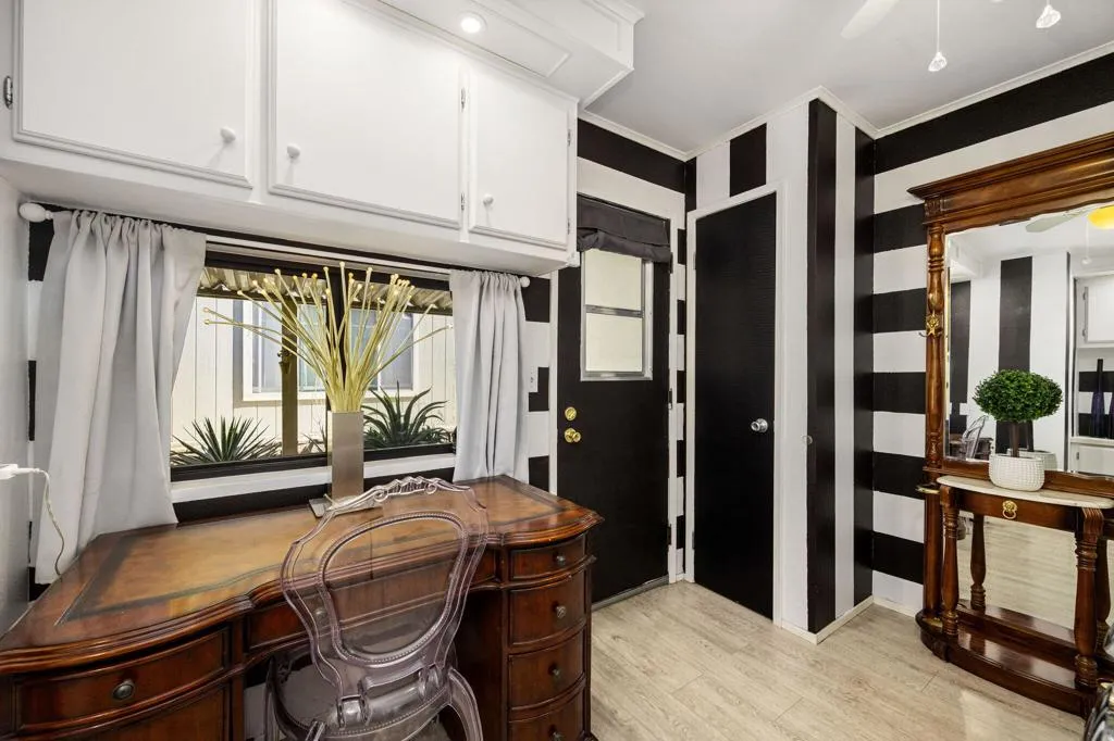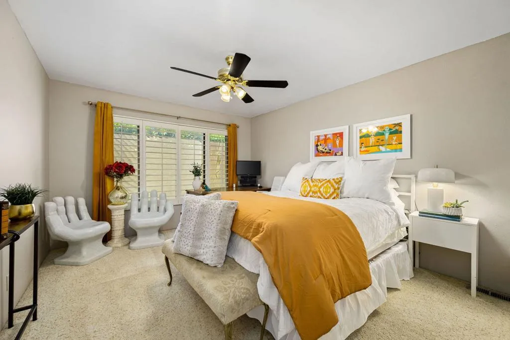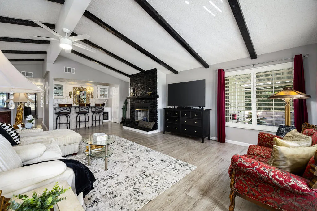 Experience bright, open living in this beautifully appointed 2-bedroom, triple-wide residence with stunning eastern golf course views. Spanning approximately 1,920 sq. ft., this thoughtfully REMODELED, energy-efficient SOLAR home blends comfort, style, and functionality--ideal for everyday living and effortless entertaining.The expansive great room features vaulted ceilings, striking art walls, a full wet bar, and wide picture windows that capture sweeping views of the course and wraparound patio. Select windows include custom solar screens to reduce glare and block harsh sunlight while maintaining natural light. The inviting kitchen offers stainless steel appliances, a five-burner electric cooktop, ample cabinetry with a pantry, and generous counter space. A charming garden window enhances the space with sunlight and serene greenery views.The open living and dining areas provide a perfect setting to relax by the fireplace or host gatherings, complemented by built-in cabinetry. The spacious primary suite offers a peaceful retreat with a large walk-in closet and a remodeled ensuite bath featuring a dual vanity, abundant storage, and a walk-in shower. The generous size guest bedroom includes mirrored wardrobe doors and convenient access to the guest bath.Outdoor living shines with a wraparound patio offering multiple seating areas to enjoy the tranquil golf course setting. The versatile laundry room doubles as a workspace, complete with room for a desk, ample storage, a deep utility sink, and direct access to the carport and storage shed.Suncrest Country Club is an exclusive 55+ active adult community offering 3 pools & spas, tennis and pickleball courts, and a 9-hole executive golf course. The gated neighborhood also features a vibrant social calendar with seasonal events and weekly gatherings at the clubhouse, all within close proximity to dining and shopping. Don't miss the opportunity to experience the Suncrest Country Club lifestyle. * Offered Partially Furnished. * Buyer to verify all information.