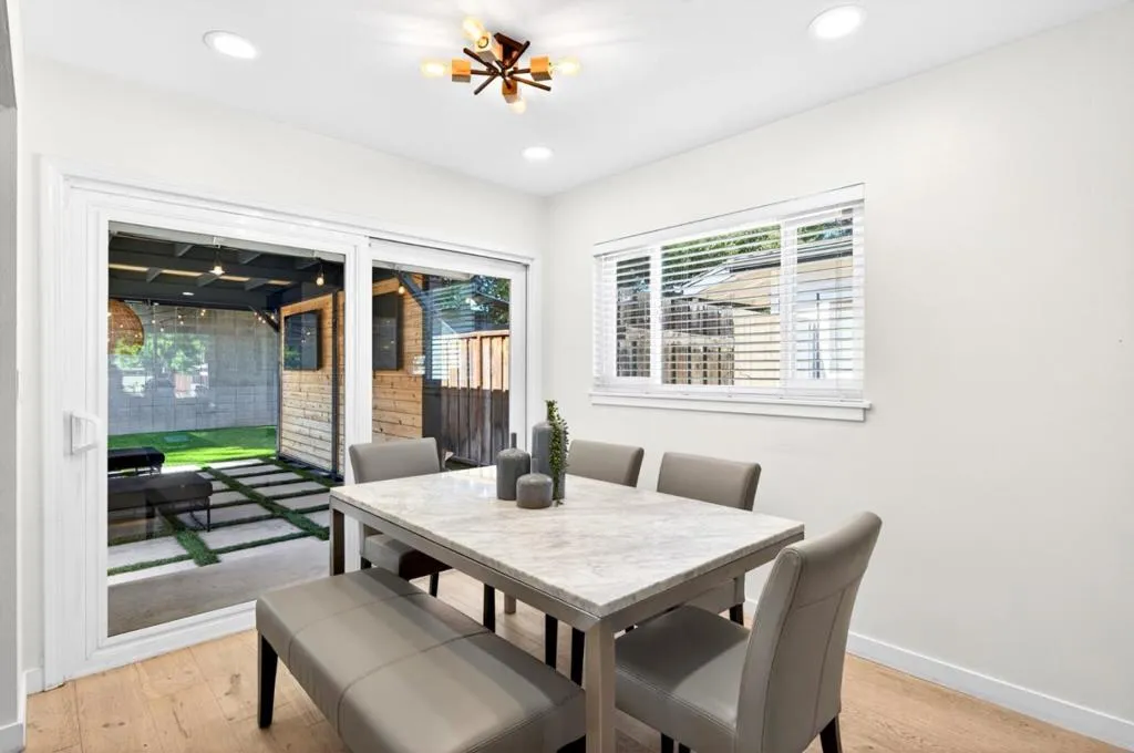 Welcome to this beautifully updated single-level home located near the Rose Garden, offering the perfect blend of comfort, and exceptional indoor-outdoor living. Step into a thoughtfully designed 3-bedroom floor plan with a seamless flow, includes dual-pane windows, central A/C, and tastefully remodeled kitchen and bathrooms. The highlight of this home is the ultimate outdoor living space. Designed for year-round enjoyment, the expansive patio is ideal for entertaining, complete with dual mounted TV screens for game-day viewing, integrated heating and custom shades providing both privacy and protection from the elements. The spacious backyard features a half basketball court perfect for active living and hosting. Additional features include a finished garage currently utilized as a gym, along with an enclosed area for a washer and dryer, offering versatility and convenience. Situated on a tree-lined street in an established, well-maintained neighborhood, this home offers unbeatable proximity to the Rose Garden, local dining, shopping, and major destinations. Moments from Valley Fair, Santana Row, Bill's Cafe, Zanotto's and SJ International Mineta Airport. This is a rare opportunity to own a move-in ready home in one of the area's most sought-after communities. Don't miss it!