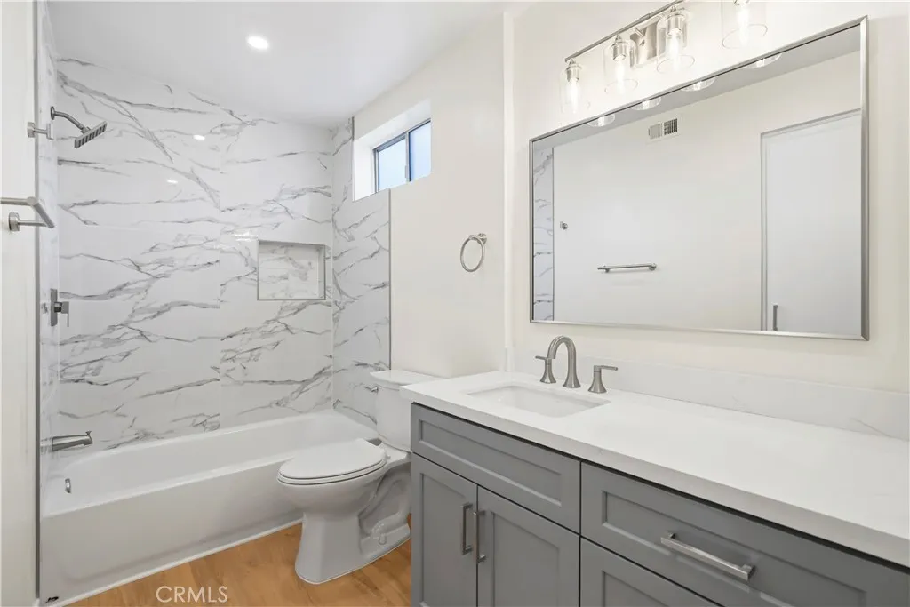 Discover the charm of the Sierra Villas Condominium Community! This inviting, END UNIT turnkey condo features two spacious bedrooms, each with its own en-suite bathroom, offering the comfort and privacy of dual primary suites. The beautifully updated kitchen boasts modern cabinetry, quartz countertops, and laminate flooring, while the bathrooms are finished with stylish tile accents. Additional highlights include recessed lighting, new A/C and heating systems, and the convenience of in-unit laundry. Included appliances are a stackable washer and dryer, new freestanding stove, new microwave, and new dishwasher. Enjoy resort-style living with a sparkling swimming pool, lush landscaping, mature trees, and tranquil garden walkways. The gated community offers coded security entry, two covered carport parking spaces, and ample guest parking. Step outside to your private patio balcony—perfect for relaxing or entertaining. Sierra Villas is well known for its low monthly HOA fees, which include water, trash, pool maintenance, and grounds care. Homes rarely become available in this peaceful, well-maintained community. A true gem in a prime location—don’t miss this exceptional opportunity!