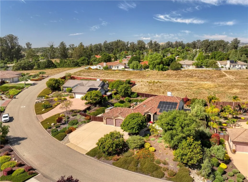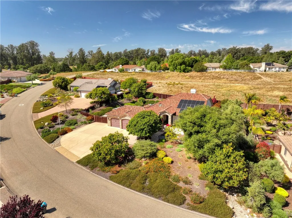 Stunning Custom Home with Luxury Finishes, Smart Energy Systems & Resort-Style Living Experience the perfect blend of craftsmanship, comfort, and cutting-edge efficiency in this beautifully designed custom home. Thoughtfully built with 2x6 construction and enhanced insulation, this residence offers exceptional energy performance alongside timeless architectural detail. Step into a light-filled interior featuring soaring 9-foot ceilings and a dramatic vaulted great room that peaks above 15 feet. Rich knotty alder cabinetry and solid 8-foot alder doors add warmth and character throughout, while travertine flooring in a classic Versailles pattern flows seamlessly through the main living spaces. Bedrooms are finished with engineered acacia hardwood, and all flooring transitions are flush for a smooth, modern feel. he heart of the home opens through custom 9-pane Andersen French doors to a spectacular 14’ x 28’ covered patio—an entertainer’s dream—complete with travertine floors, a gas-insert fireplace, and elegant arch-topped openings. A private, walled front courtyard offers an additional serene outdoor retreat. The primary suite is a true sanctuary, featuring direct patio access and a spa-inspired bathroom with a large walk-in shower, jetted soaking tub, and luxury Toto bidet toilets with heated seats and remote controls. Outdoors, enjoy thoughtfully designed drought-tolerant landscaping supported by an 11-station drip irrigation system, a tranquil rock-lined cascading pond, and a variety of mature fruit trees—including lemon, apricot, orange, apple, and pear—plus a prolific passionfruit vine. This property is as functional as it is beautiful, featuring a fully integrated solar energy system with battery storage, a natural gas backup generator, and a smart transfer switch for seamless power management. Additional highlights include a high-efficiency tankless water heater with instant hot water recirculation, two Level 2 EV charging stations, a 3-car garage with custom insulated doors, and a gated side parking area. Unique bonus features include a computer-controlled steam sauna and a greenhouse with programmable ventilation—perfect for wellness and sustainable living. This one-of-a-kind home offers luxury, privacy, and modern efficiency in perfect harmony.