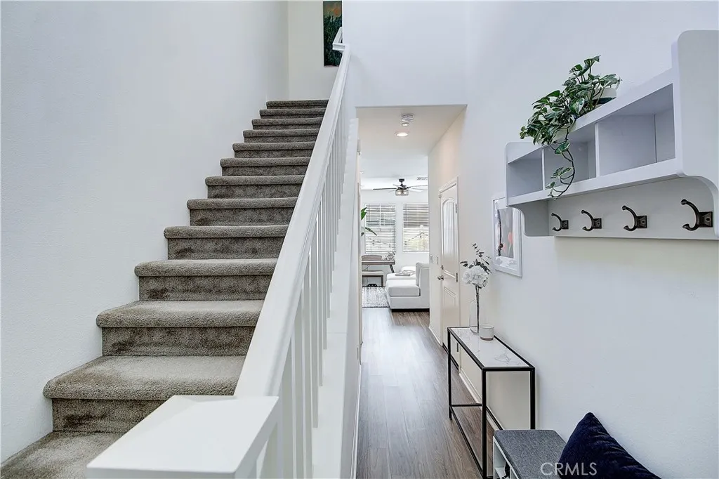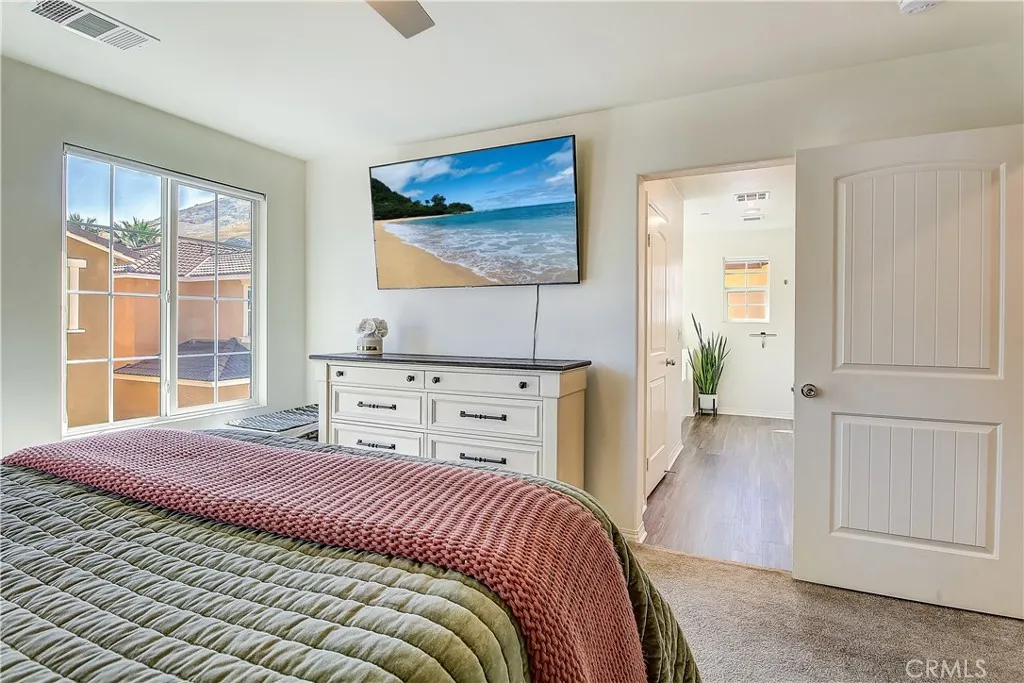 Welcome to this beautifully maintained 3-bedroom, 2.5-bathroom two-story home located within a desirable gated community, offering the perfect blend of comfort, style, and low-maintenance living. From the moment you arrive, the charming curb appeal and inviting front entry set the tone for what’s inside. Step into a bright and airy interior featuring a spacious open-concept layout, neutral tones, and abundant natural light. The living area flows seamlessly into the kitchen, creating an ideal space for both everyday living and entertaining. The kitchen is well-appointed with ample cabinetry, modern appliances, and a functional layout that opens to the main gathering space. A convenient half bathroom is located downstairs, perfect for guests. Upstairs, you’ll find a generously sized primary suite complete with a private en-suite bathroom featuring a soaking tub, separate shower, and plenty of natural light. Two additional bedrooms provide flexibility for family, guests, or a home office. Additional highlights include an upstairs laundry room for added convenience. The backyard offers a private and low-maintenance outdoor retreat, perfect for relaxing or entertaining. Enjoy cozy seating areas, clean hardscaping, and a peaceful setting with mountain views that add a beautiful natural backdrop. Additional features include a two-car garage and solar system (buyer to assume), helping with energy efficiency and long-term savings. This home is ideal for those seeking easy living with style—perfect for professionals, families, or anyone looking to enjoy a move-in ready space in a secure and well-kept community.