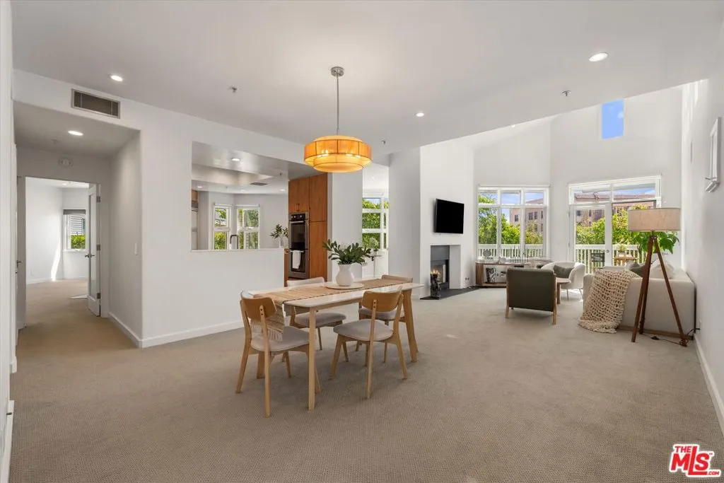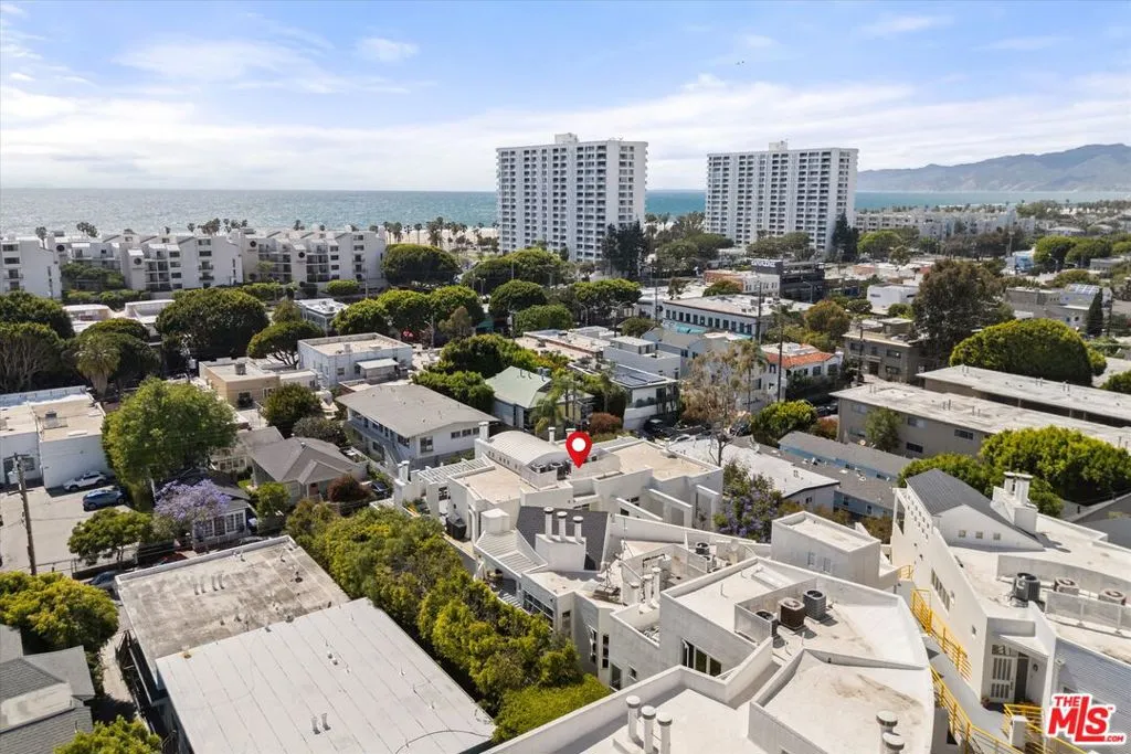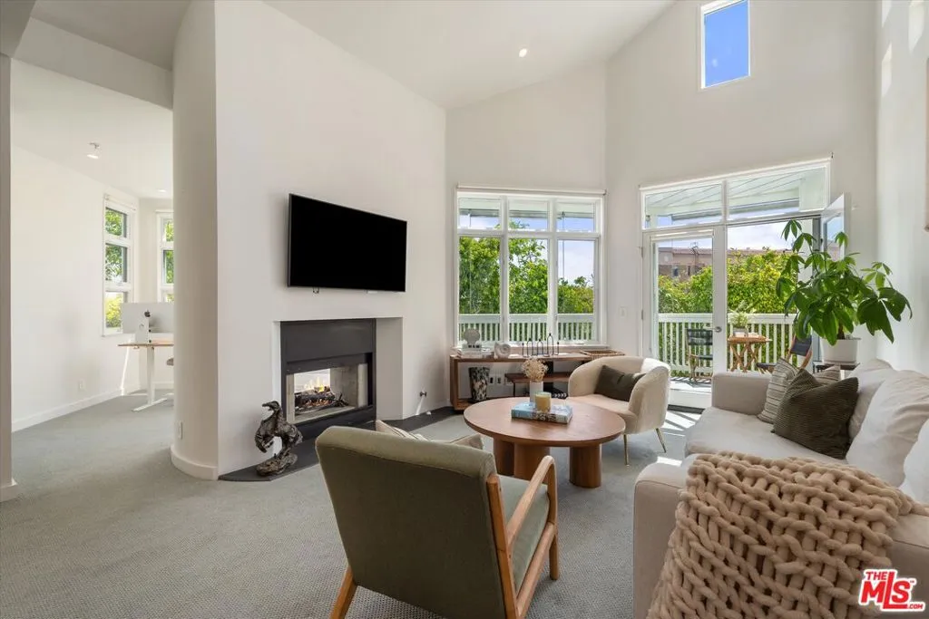 Welcome to Seaview Collection III, one of Ocean Park's most sought-after architectural communities, designed by renowned local architect Bill Brantley and ideally located just moments from the beach and vibrant Main Street, with a second entrance off 2nd Street just one block from Main Street's shops, cafes, and restaurants. This top-floor penthouse corner residence offers an exceptional blend of light, volume, and privacy, with soaring ceilings and expansive windows that fill the home with natural light throughout the day, including beautiful afternoon light across the living space. The thoughtfully designed floor plan lives larger than expected, featuring 2 bedrooms, 2.5 bathrooms, and a versatile den/office. Two en-suite bedrooms provide separation and flexibility, while the open living area is ideal for both everyday living and entertaining. At the center of the home, the spacious living room opens seamlessly to a large private terrace, perfect for dining al fresco, hosting guests, or simply enjoying the coastal breeze. A double-sided decorative fireplace connects the living area and den, adding warmth and character while enhancing the indoor-outdoor flow. The kitchen is well-appointed with stainless steel appliances, quartz countertops, custom tile backsplash, breakfast nook, double ovens, and an oversized refrigerator offering the functionality of a true chef's kitchen rarely found in a condo. Tucked away within the building, the residence offers a rare sense of privacy with minimal shared walls and a quiet, treehouse-like setting surrounded by greenery. Additional highlights include a powder room, in-unit side-by-side laundry, gated side-by-side parking with a dedicated private EV charger, guest parking, and extra storage. Situated just blocks from the sand and near Main Street's renowned restaurants, coffee shops, and boutiques, this home offers the ultimate Santa Monica lifestyle where you can park your car for the weekend and enjoy everything just moments away.