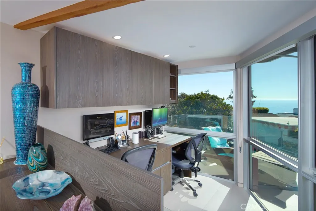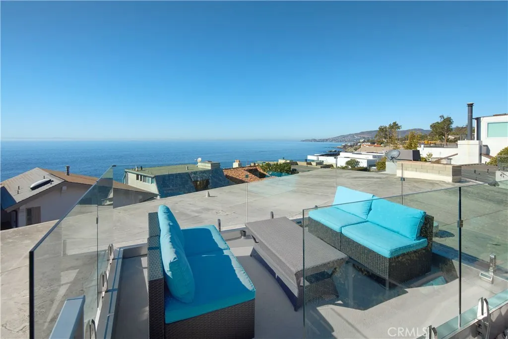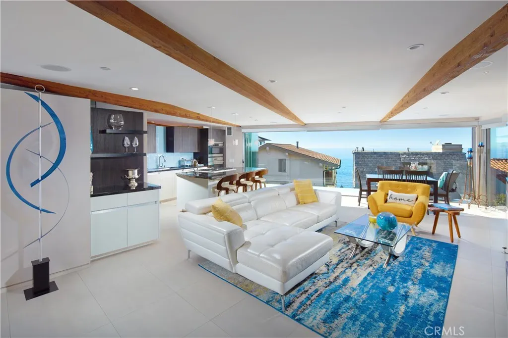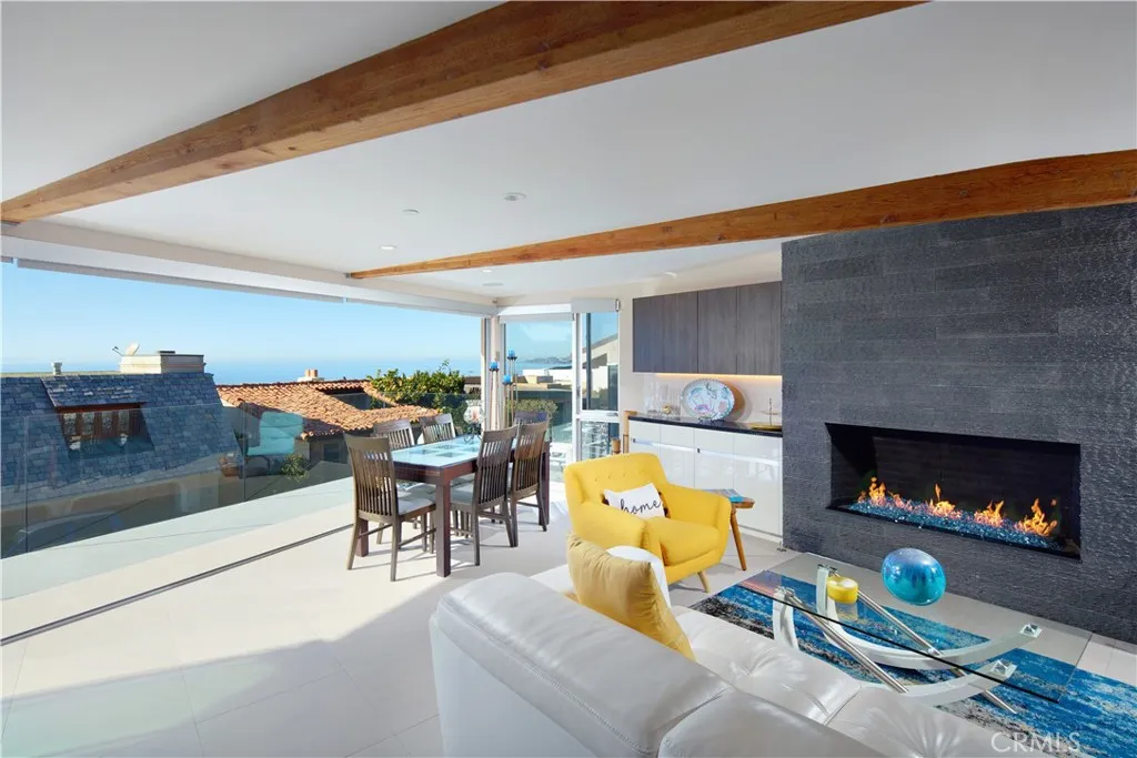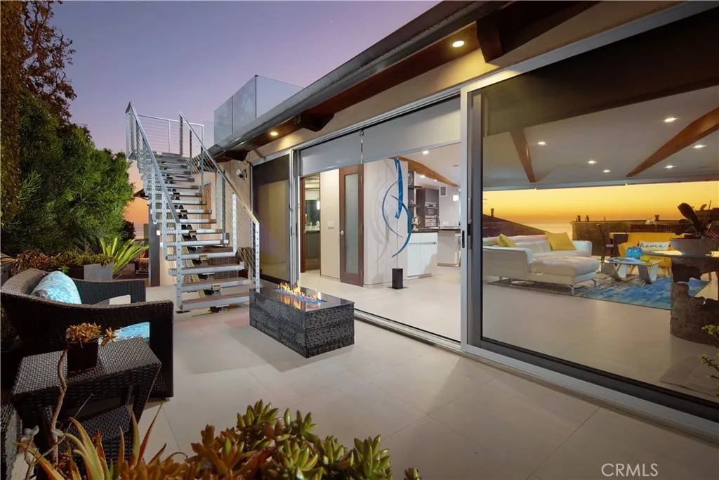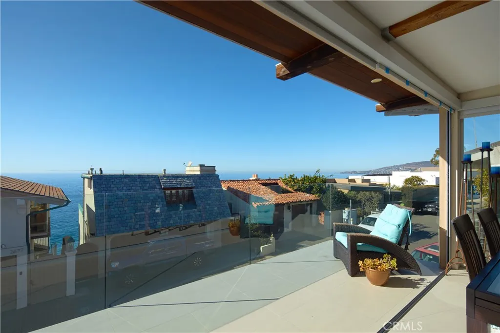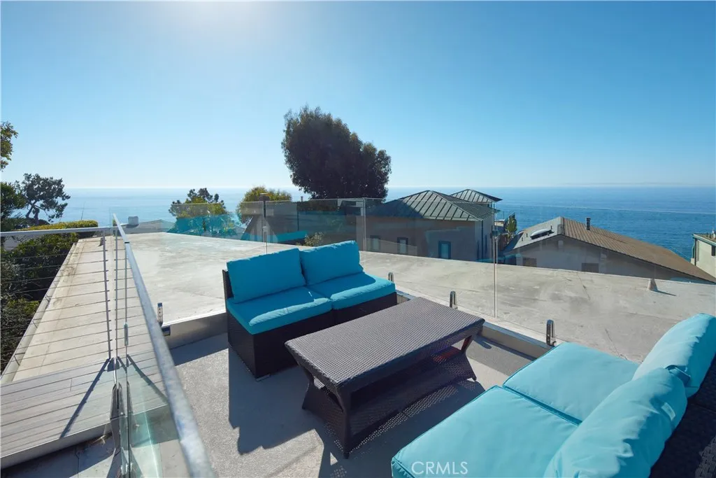 FURNISHED RENTAL. Stylish, remodeled accommodations and awe-inspiring ocean views are enjoyed in equal measure at this Victoria Beach masterpiece. Offering 180-degree ocean vistas, unobstructed Catalina sunsets, and the city lights of North Laguna Beach, this elegant home is a striking example of coastal luxury located just steps from Victoria Beach. Designed by Horst Noppenberger, it seamlessly blends contemporary design with natural, rich materials and bold, modern finishes, creating an ambiance that is both invigorating and inviting. Step inside to discover light-filled, spacious interiors featuring a great room with an 21’ premier folding glass door, exposed-beam ceilings, and floor-to-ceiling windows that open to an approximately 450-square-foot view deck. Granite countertops complement the Thermador cooktop with downdraft, dual Wolf ovens with a steamer oven, and a Sub-Zero refrigerator in the state-of-the-art kitchen. Offering approximately 1,957 square feet of living space, this well-appointed residence features three bedrooms and three-and-a-half bathrooms. The primary suite is enhanced by custom cabinetry, designer closet doors, and granite vanity tops. It also includes an office nook with custom built-ins and two workstations. Seamless porcelain tile flooring runs throughout, adding a touch of elegance to the home. Relish outdoor living with a rooftop deck accessible via dedicated stairs, a rear patio featuring a built-in firepit, and an outdoor shower—ideal for rinsing off after long, sunny days at the beach. Storage solutions abound in the three-car garage, outfitted with epoxy flooring, custom cabinets, a workbench, and overhead shelving. Thoughtfully upgraded to meet modern structural codes, the property boasts a newer electrical panel, fiber optic cable service, LED lighting, dual-zone HVAC, a tankless water heater, perimeter security wiring, and a newer fire sprinkler system.