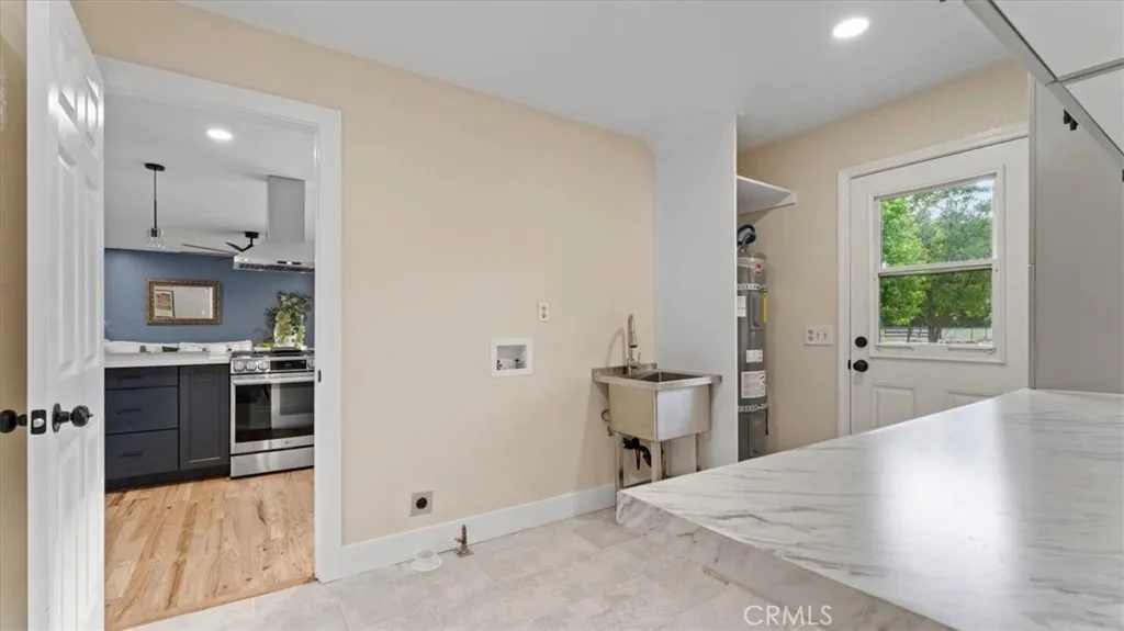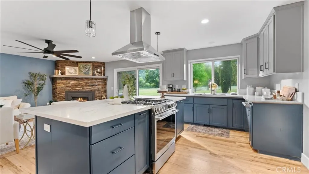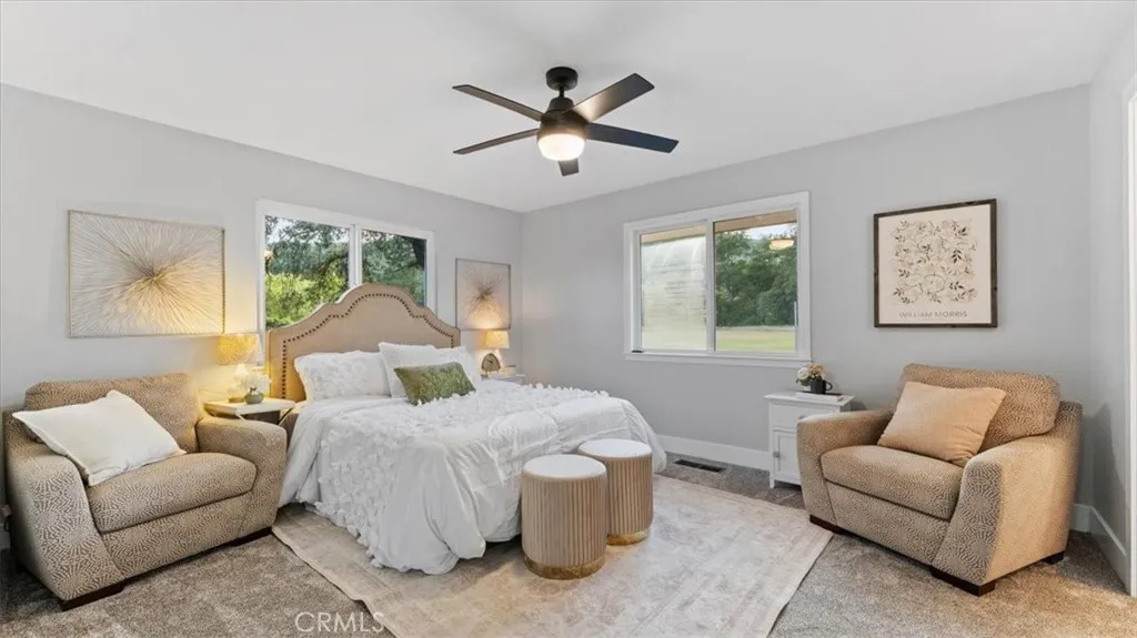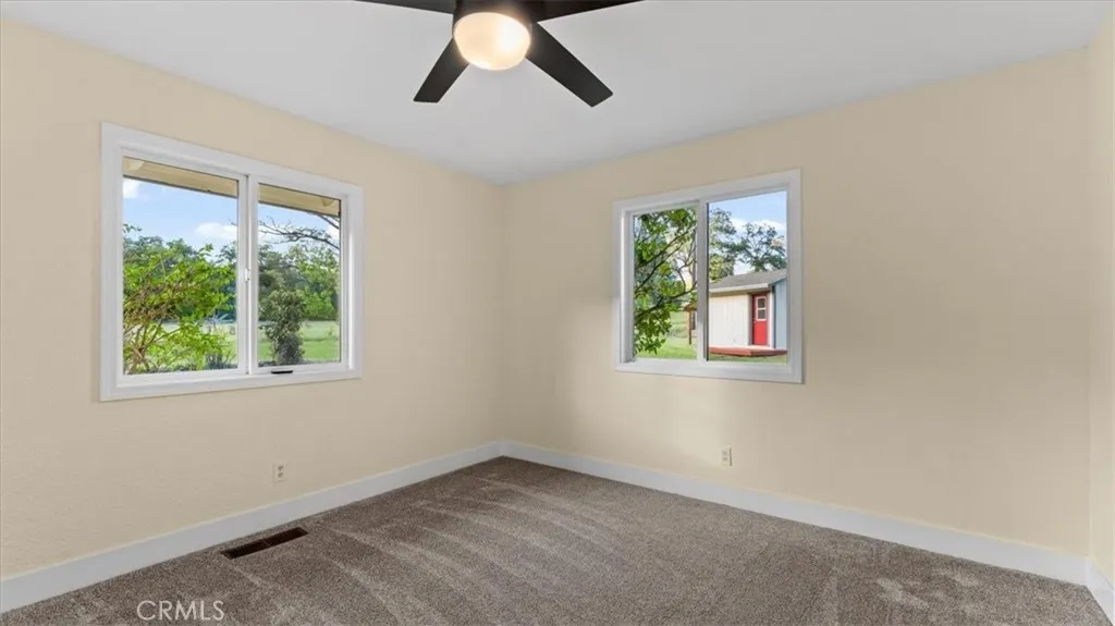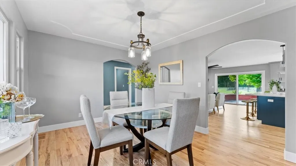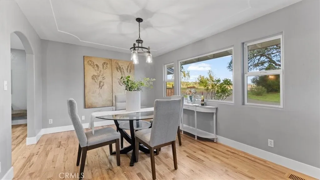 Set in the highly sought-after Butte Valley and within the Durham Unified School District, this beautifully renovated property offers the perfect blend of comfort, space, and scenic surroundings. Situated on nearly 3 level acres with stunning views and year-round Clear Creek running through the back of the property, this is a rare opportunity to own a truly special piece of land. The nearly 2,000 sq. ft. home features 4 bedrooms and 2 bathrooms with a thoughtfully designed layout, including an open-concept living and kitchen area ideal for everyday living and entertaining. The kitchen is a standout, featuring a large island with a gas cooktop and bar seating, along with a huge walk-in pantry conveniently located just off the kitchen. A formal dining room adds additional space for gatherings. No detail was overlooked in the complete top-to-bottom renovation. The home showcases restored original hardwood floors, a brand-new roof, and owned solar for energy efficiency and long-term savings. Step outside to enjoy the attached deck with a hot tub—perfect for relaxing while taking in the peaceful views. The property also includes an attached garage, carport, and shed, providing ample space for storage, hobbies, or equipment. This is country living at its best—modern upgrades, usable acreage, and a picturesque setting all in one exceptional property.