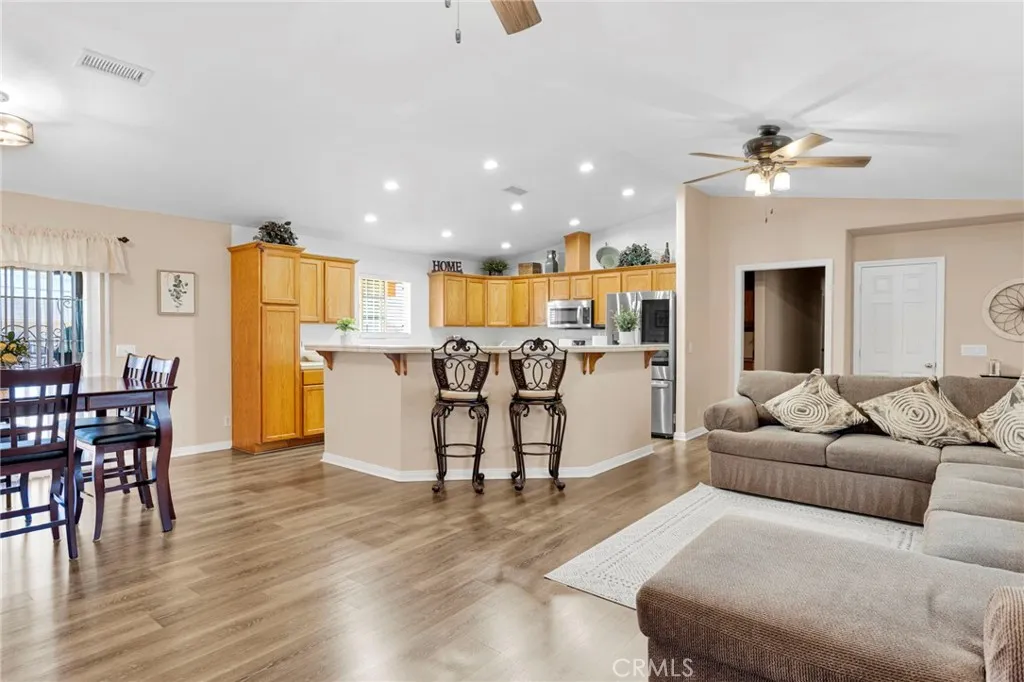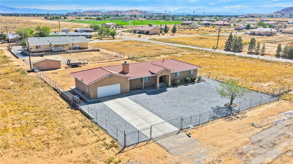 Welcome to 21237 South Road, a stunning Apple Valley property that embodies serenity and offers breathtaking views. This beautiful residence features three spacious bedrooms and two full bathrooms, with a living room that boasts charming laminate floors and a fireplace. The kitchen is fully equipped with tile countertops, stainless steel appliances, recessed lighting, a breakfast bar, and generous counter space. The open layout design ensures seamless entertaining. This property showcases true pride of ownership with ceiling fans throughout and beautiful custom wrought-iron doors. A 2-car garage with deep parking accommodates boats, and the property also features RV parking, a completely fenced yard, and a 19,800 sq. ft. lot. Located minutes from Apple Valley Commons, Civic Center Park, Brewster Park, schools, Highway 18, and I-15 freeways, this property offers panoramic mountain views and spectacular sunrise and sunset displays. Don’t miss out on this beautiful property.