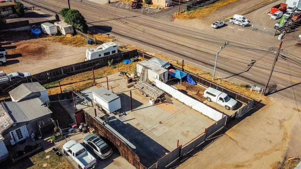 A ±8,500 SF fenced industrial yard is available for lease at $4,950 per month, or the entire property in a larger configuration consisting of an 820 SF building on a 14,318 SF lot is available for $7,500 per month. This M54-zoned site features two sliding gates for easy access, on-site electricity and water hookups, a mostly concrete pad surface, and a storage container on-site is included. The property is located in a prime area with excellent signage visibility.
