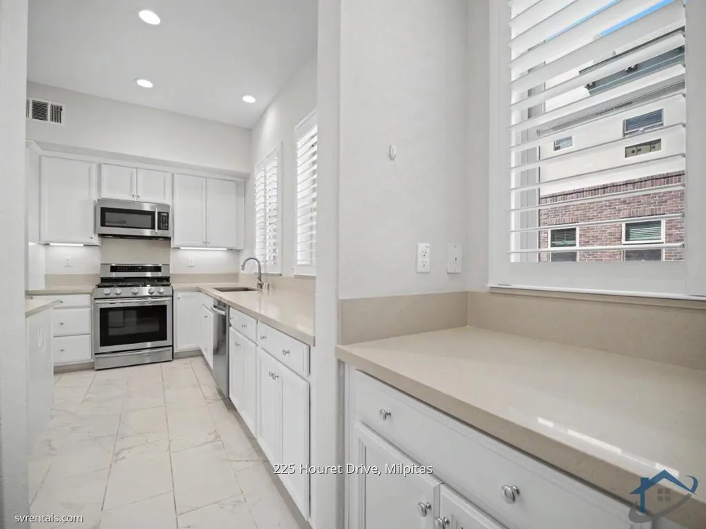 Beautiful, modern townhome with 3 full bedroom suites and no front neighbors. Top-rated schools and a perfect blend of comfort, privacy and convenience. Quiet, sought-after Milpitas community. Home Features: Spacious Layout: Plenty of natural light. 3 bedroom suites with private bathrooms, walk-in closets, high ceilings, large windows. Stylish Kitchen: White cabinetry, stainless steel appliances, spacious pantry, and a large island. Living & Dining: Open-concept plan with marble tile flooring. Large windows bring in natural light. Private balcony with unobstructed views. Outdoor Living: Enjoy a private, low-maintenance backyard perfect for weekend BBQs or morning coffee. Convenience: Laundry with washer and dryer provided, next to bedrooms. Attached 2-car garage with 220V EV outlet. Superb Location: Walk to Milpitas Transit Center/BART. Easy access to all commute routes, including Hwys 680, 880, and 237, and major employers (Nvidia, Google, Supermicro, Apple, etc.). Nearby shopping including Great Mall, Trader Joes, H Mart, Costco, & Ranch 99. Nearby parks. Top-rated schools: Mabel Mattos Elem (10/10), Rancho Milpitas Middle (9/10), and Milpitas High (9/10).