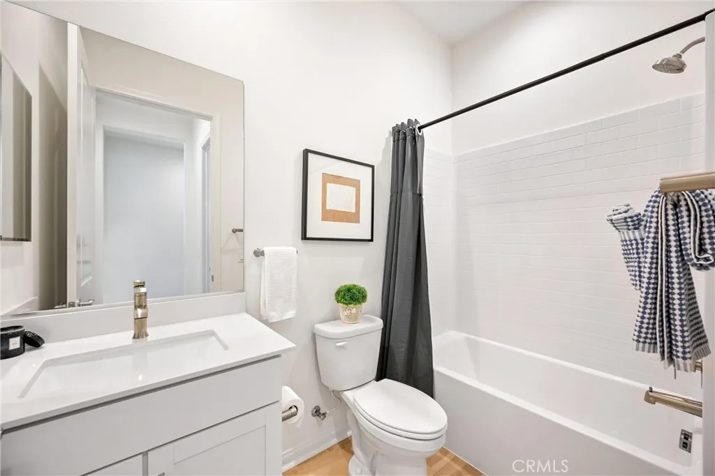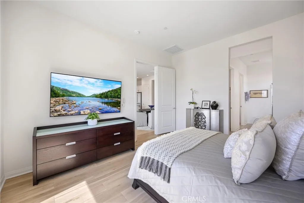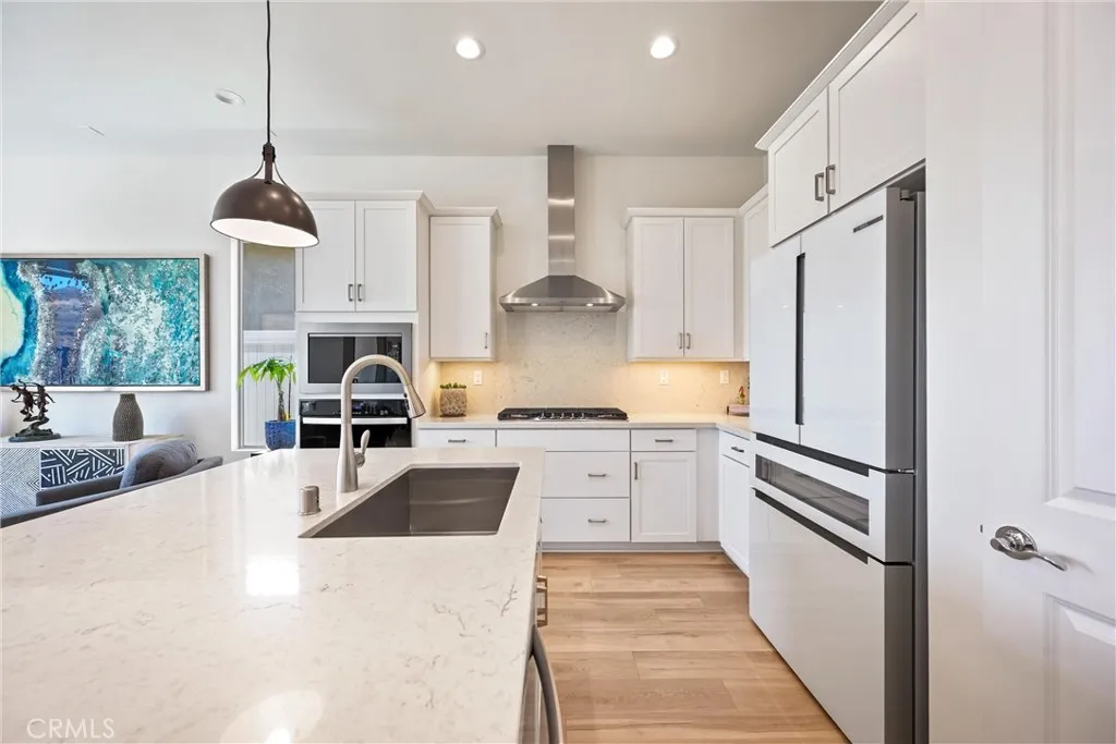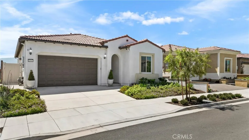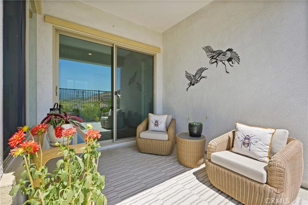 55+ RESORT-STYLE LUXURY LIVING | SINGLE STORY | FULLY PAID SOLAR | PANORAMIC VIEWS ON PREMIUM LOT | Welcome to an exceptional residence in the highly sought-after Terramor community, where refined elegance meets effortless California living. From the moment you step through the formal wide entry, you are greeted by an abundance of natural light, luxury plank flooring, and custom window covering At the heart of the home lies a stunning Chef’s Kitchen designed to impress. Featuring quartz countertops, Whirlpool stainless steel appliances, a 5-burner gas range, custom lighting, and a large island with breakfast bar seating and pendant accents, this space is both functional and beautiful. White shaker cabinetry, a custom full backsplash, pot and pan drawers, a spacious pantry, & built-in trash complete this thoughtfully designed culinary space. The adjacent Living Room is perfectly positioned to capture breathtaking views through expansive windows and is enhanced by in-ceiling speakers. A seamless flow leads to the dining area, highlighted by an oversized slider that opens to the backyard, creating the ideal indoor-outdoor lifestyle. Retreat to the serene Primary Suite, where oversized windows frame picturesque mountain views. The luxurious Ensuite Bathroom features dual vanities with quartz countertops, waterfall faucets, oversized walk-in shower with bench seating, privacy door, and expansive walk-in closet. Bedroom #2 offers comfort for guests, while the beautifully appointed second bathroom includes a shower/tub and quartz finishes. Bedroom #3 is complete with double door entry, provides the perfect space for entertaining guests, or to be used as office or flex room. A separate Laundry Room with ample storage adds everyday convenience. Step outside to a truly remarkable backyard designed for relaxation & entertaining. Enjoy a California Room, stunning views, custom landscaping and hardscaping, rain gutters and vinyl & wrought iron fencing. Discreetly integrated gutters enhance drainage. Enjoy resort-style amenities including two clubhouses (55+ exclusive + all-ages), indoor & outdoor pools, fitness center, sports courts, scenic trails, & dog parks. Conveniently located near shopping, dining, and entertainment, with easy access to the 15/91 Expressways & 241 Toll Road. Energy-efficient features include fully paid solar, tankless water heater, LED recessed lighting, & a drip irrigation system—offering both luxury & sustainability in one extraordinary home.