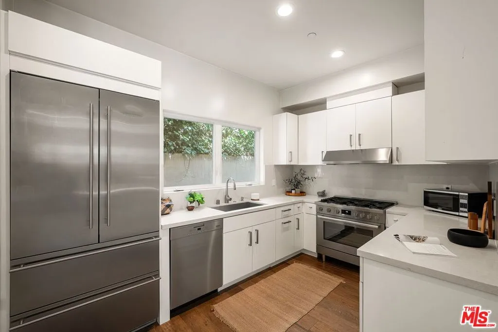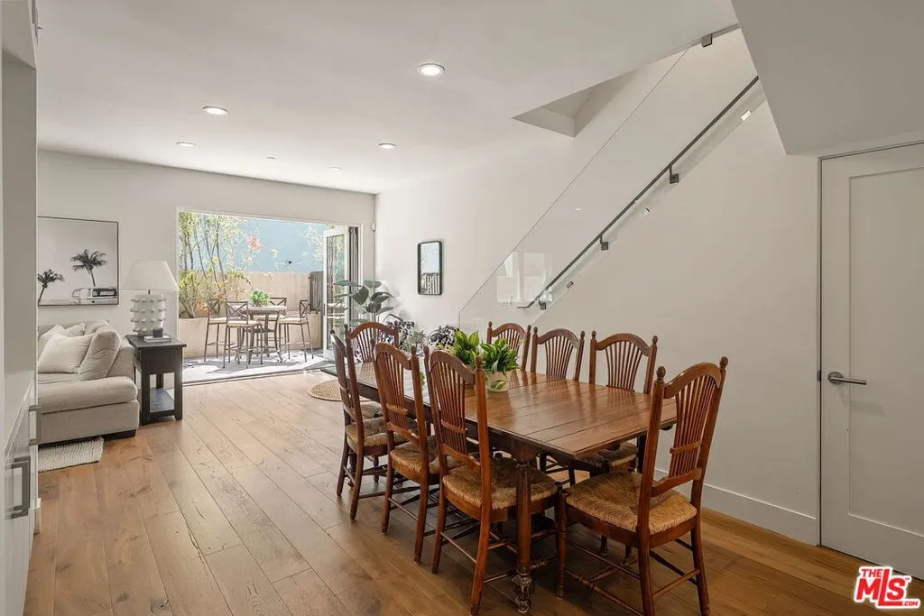 Stunning and modern, this 3-bedroom, 3-bathroom townhouse, built in 2015, offers the perfect blend of style, comfort, and convenience. Ideally situated near Montana Avenue's vibrant dining, shopping, and cafe scene, this home boasts over 1,500 sqft of thoughtfully designed living space with gorgeous hardwood floors, central air, and multiple outdoor spaces. The gourmet kitchen is a chef's dream, featuring top-of-the-line stainless steel appliances, a gas range, and sleek finishes. The spacious living room seamlessly connects to a large patio through folding doors, creating an effortless indoor-outdoor flow. The flexible floorplan includes space for a dining room, a cozy den, or even the option to enclose it as a main-floor bedroom tailored to fit your lifestyle. The primary suite is a true retreat, offering a generous walk-in closet and a luxurious en-suite bathroom with a soaking tub and a beautifully tiled shower. Generous private rooftop deck with breathtaking views that stretch all the way to the ocean. Additional highlights include elevator access to the gated garage. 2-car side-by-side parking in the secure garage with private storage room, ample visitor parking, and a location that perfectly balances urban convenience with coastal charm. This townhouse truly has it all!