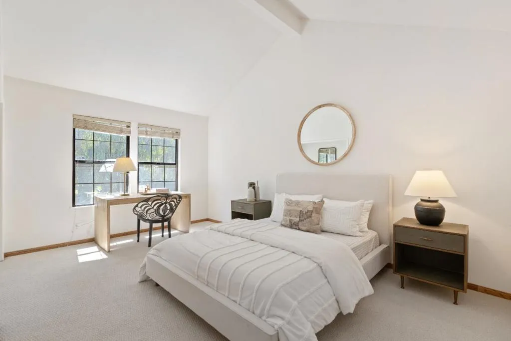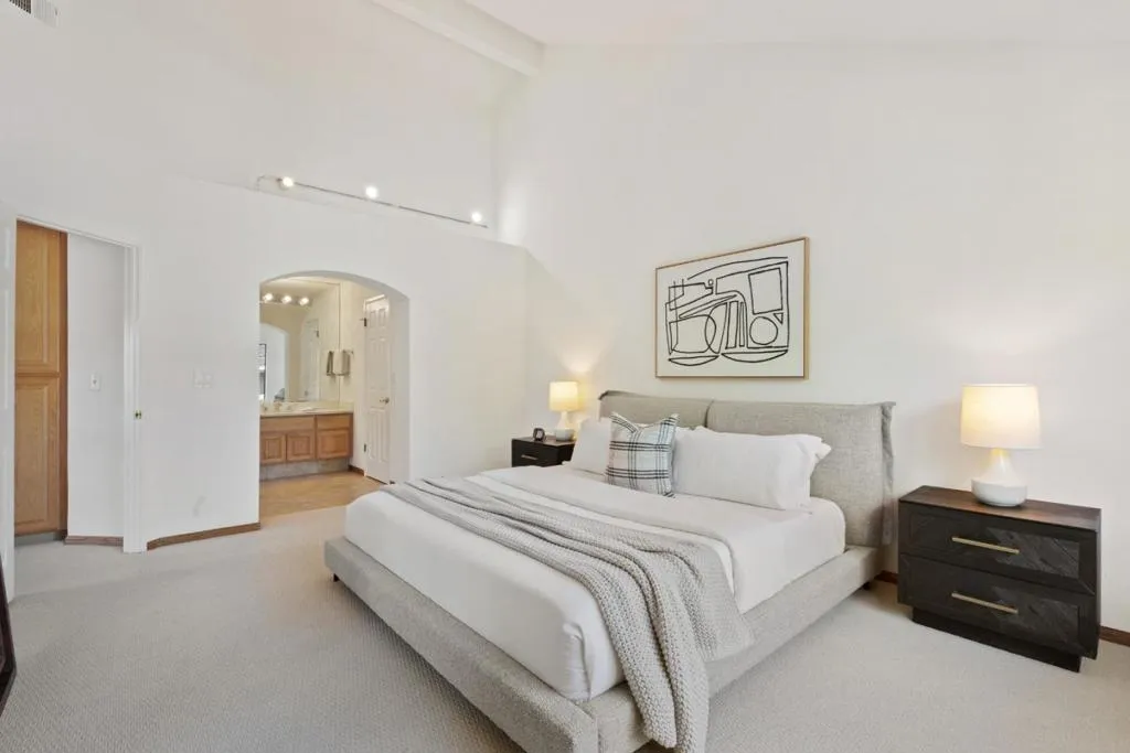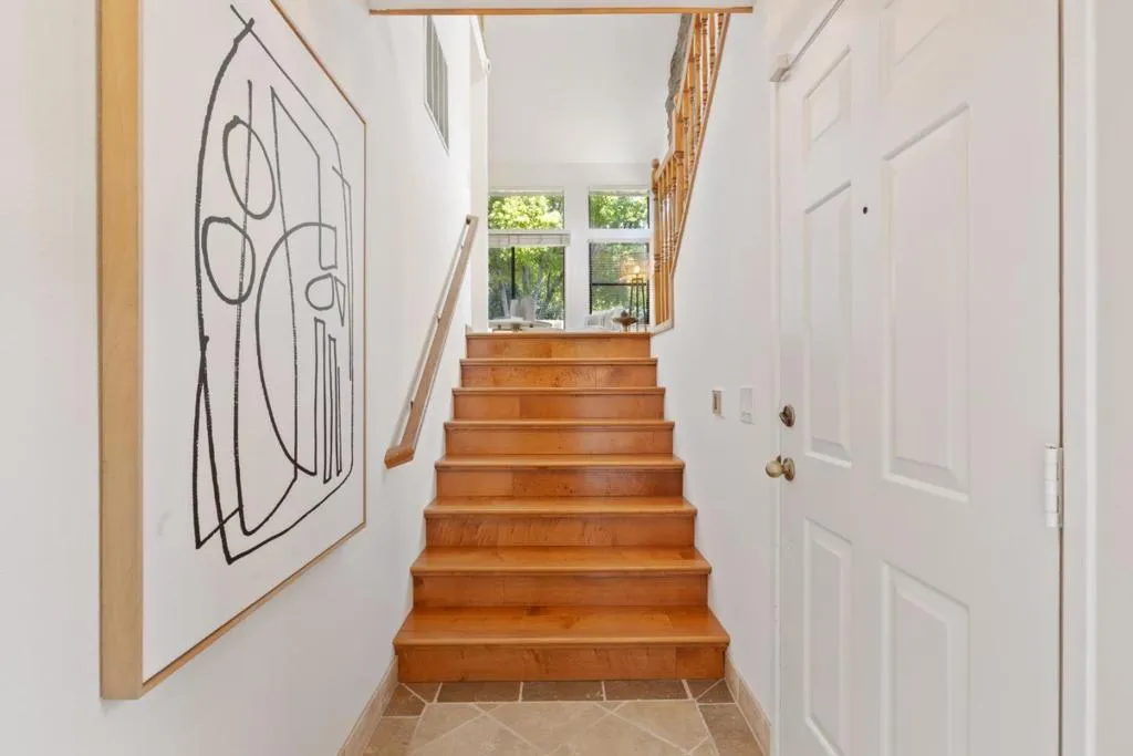 Soaring ceilings and expansive windows fill the space with natural light, highlighting a thoughtful layout with two spacious bedroom suites, each featuring en-suite baths and ample closets. The inviting living area with gas fireplace and powder room flows seamlessly into a light-filled dining space and all electric modern kitchen with stainless steel appliances and abundant cabinetry. Interior features include dual-pane windows, recessed lighting, wood flooring on the main level and staircases, brand-new bedroom carpets, forced air heat, central A/C, a separate laundry room, and an attached two-car garage. Sliding glass doors from living and dining areas lead to a private brick patio with mature plantings and lots of space to entertain. The HOA provides beautifully maintained grounds along with pool and spa amenities, offering a low-maintenance lifestyle. Ideally located minutes from Santana Row, Westfield Valley Fair, and major employers like Apple Inc., this is turnkey living in one of Santa Claras most desirable communities.