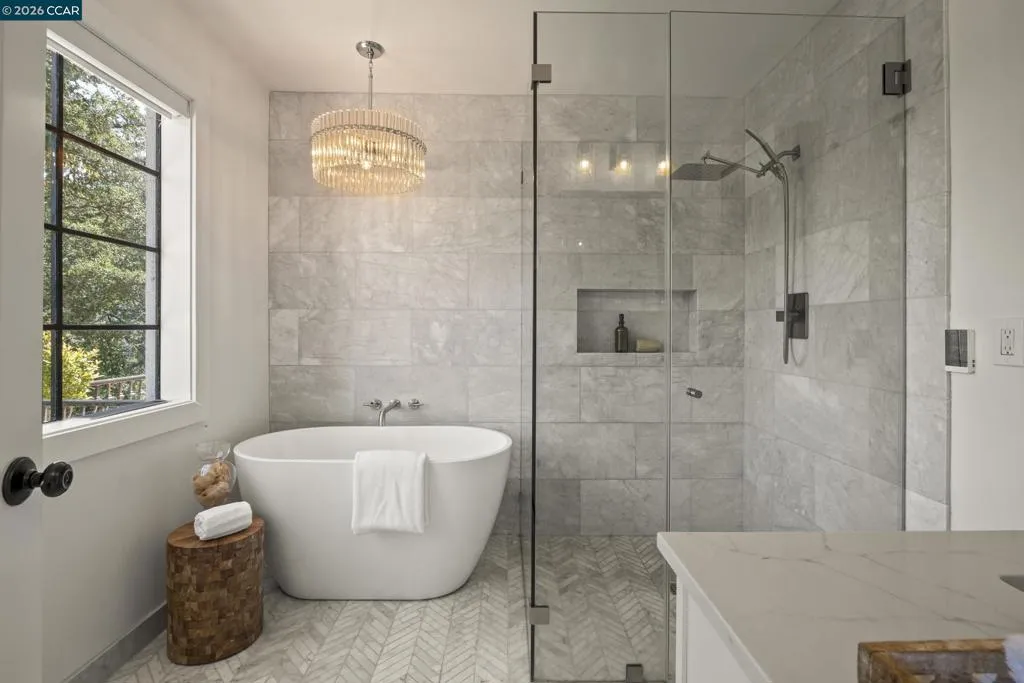 Stunning 1930s Art Deco Gem with Modern Updates & Mt. Diablo Views ! Timeless character meets modern comfort in this beautifully updated stucco home featuring original steel-frame windows & elegant period details throughout. Private courtyard entry welcomes you into light-filled living spaces with classic curved architecture and vintage plaster ceilings. Updated kitchen with quartz counters & Stainless appliances opens to a tiled view terrace - perfect for entertaining and sunrise views of Mt. Diablo. Spacious primary suite with en-suite spa features (Carrara marble, soaking tub, radiant heated floors). Flexible main-level bedroom ideal for office or nursery. Lower level offers 3 bedrooms + bright family room with French doors to a charming brick patio under a majestic oak tree. Move-in ready with new roof, fresh paint & carpet. Prime location near top-rated schools, Orinda Village, dining, parks & commute routes. Off-street parking for 4 cars. A rare blend of historic charm, privacy & modern living. Many memories were made in this home and now it's your turn- don't miss it !