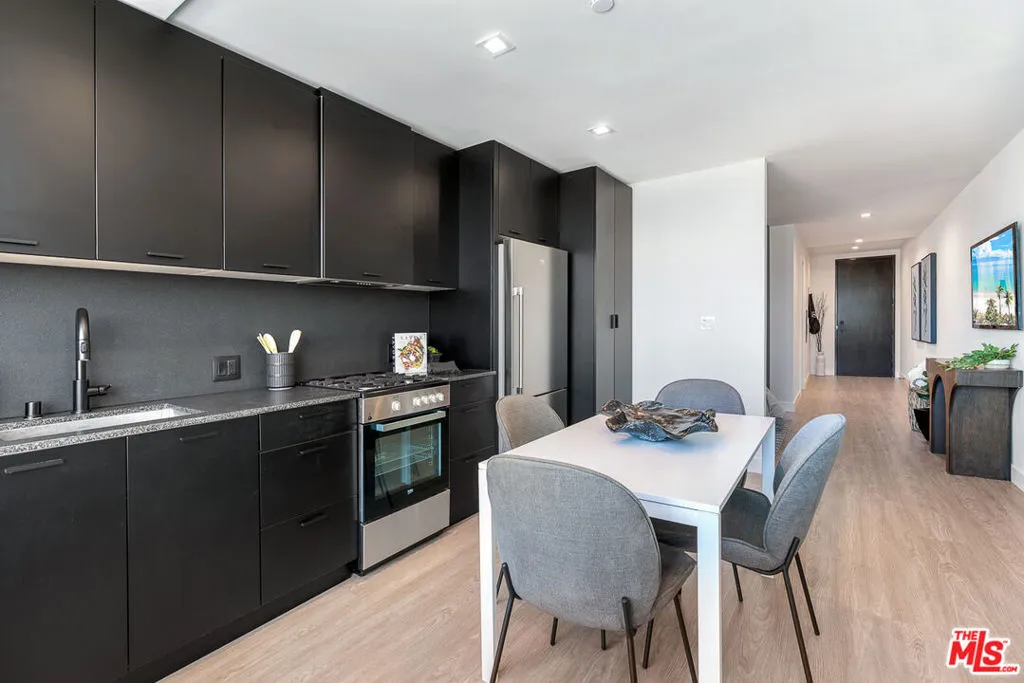Venue Residences by Helio. This studio layout is available on the 5th floor with West facing views. Kitchen has unique dark finishes with stained granite counters, matte black fixtures, and stainless steel Beko appliances including fridge, dishwasher, and gas stove. There is a bedroom nook with a built-in wall closet and room for a double or queen bed, which keeps the space separate from the living area. Bathroom has a shower/tub, wall-to-wall mirror and under sink storage. There's also a spacious entry-way to give you extra room for storage. Property amenities include 2 roof lounges with indoor and outdoor space, a heated dipping pool, outdoor cooking area with BBQ, co-working spaces, large fitness center with Technogym equipment, and wonderful front desk staff. Apartment is occupied until May 1st, so tours are available by appointment only. Parking is off-site for $125/month and internet is $84/month. Resident covers water and electricity utilities. Contact us today to schedule a tour!