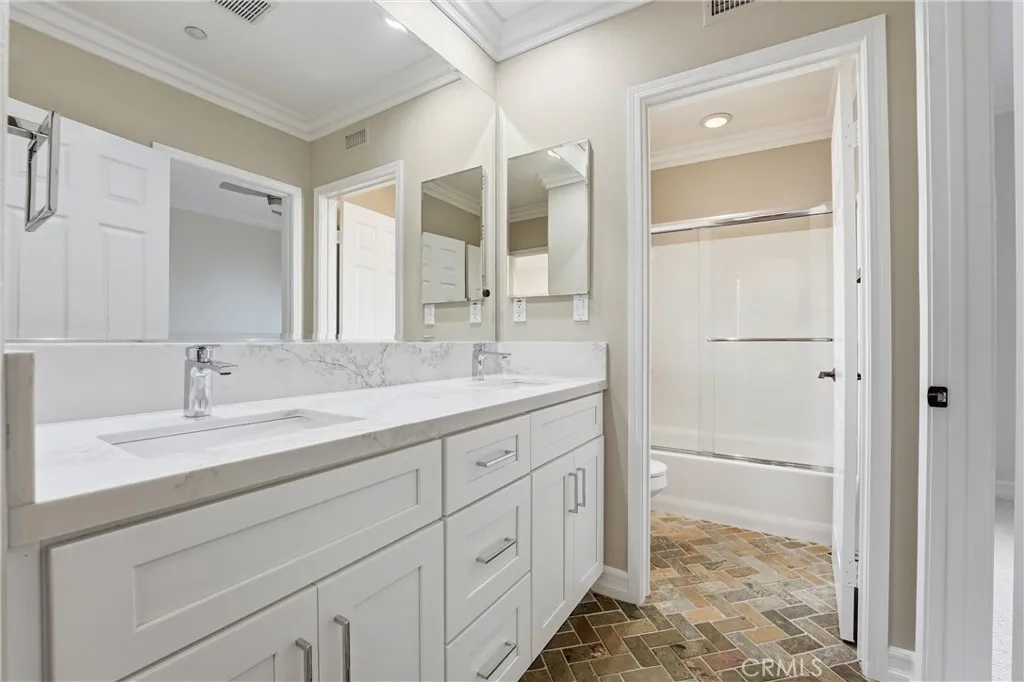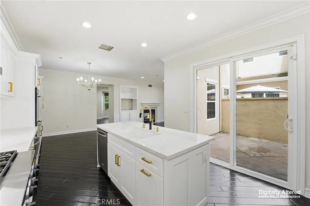 Rarely available and highly sought-after, this is the largest floor plan in the Branches community—offering exceptional space, thoughtful upgrades, and a prime location. The beautifully remodeled kitchen showcases new shaker cabinetry, quartz countertops, and designer bronze hardware, faucet, and lighting. Outfitted with upgraded stainless steel appliances, including a six-burner range, double ovens, and refrigerator, plus an oversized porcelain sink, this kitchen is both functional and stylish. Rich wood flooring spans the entire downstairs, complementing the open-concept layout that seamlessly connects the kitchen, dining, and family room—highlighted by a striking double-sided fireplace. This spacious 3-bedroom home offers a versatile primary suite complete with a private office or gym area, a large walk-in closet, and a luxurious en-suite bath featuring dual sinks, shaker cabinetry, quartz counters, and a separate tub and shower. The secondary bedrooms share a Jack-and-Jill bathroom with dual sinks and matching upgraded finishes. Plantation shutters add elegance throughout the upstairs, along with the convenience of an upstairs laundry room. Additional highlights include a welcoming living room with fireplace, a remodeled powder room downstairs, and an attached two-car garage. Enjoy outdoor living with a charming front porch and private courtyard, all surrounded by lush greenbelts, parks, and playgrounds. Ideally situated within the community, residents also enjoy access to a water park and dog park—offering a vibrant lifestyle with something for everyone.