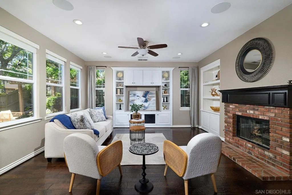 Welcome to this former model twin home that has been beautifully refreshed in the highly sought-after Cassero community of Del Sur. Perfectly located within walking distance to Del Sur Elementary and just minutes from Hwy 56, this home offers exceptional access within the award-winning Poway Unified School District. The residence features engineered wood floors, plush new carpet, and board-and-batten wall detailing in the living room. The kitchen includes a new refrigerator and dishwasher. Additional upgrades include, a tankless Navien hot water system with remote control, a new garage door and motor with MyQ camera and remote access. All bedrooms include or are pre-wired for ceiling fans, with custom wall finishes in bedrooms two and three. The private back patio creates an inviting outdoor retreat with a vine-covered trellis and built-in fire pit, perfect for entertaining or relaxing evenings. Energy efficiency and convenience harmonize with a fully owned 7.6kW solar system and a Tesla charger in the garage. This home combines refined style, smart updates, and an unbeatable Del Sur location. Welcome to this former model twin home that has been beautifully refreshed in the highly sought-after Cassero community of Del Sur. Perfectly located within walking distance to Del Sur Elementary and just minutes from Hwy 56, this home offers exceptional access within the award-winning Poway Unified School District. The residence features engineered wood floors, plush new carpet, and board-and-batten wall detailing in the living room. The kitchen includes a new refrigerator and dishwasher. Additional upgrades include, a tankless Navien hot water system with remote control, a new garage door and motor with MyQ camera and remote access. All bedrooms include or are pre-wired for ceiling fans, with custom wall finishes in bedrooms two and three. The private back patio creates an inviting outdoor retreat with a vine-covered trellis and built-in fire pit, perfect for entertaining or relaxing evenings. Energy efficiency and convenience harmonize with a fully owned 7.6kW solar system and a Tesla charger in the garage. This home combines refined style, smart updates, and an unbeatable Del Sur location.