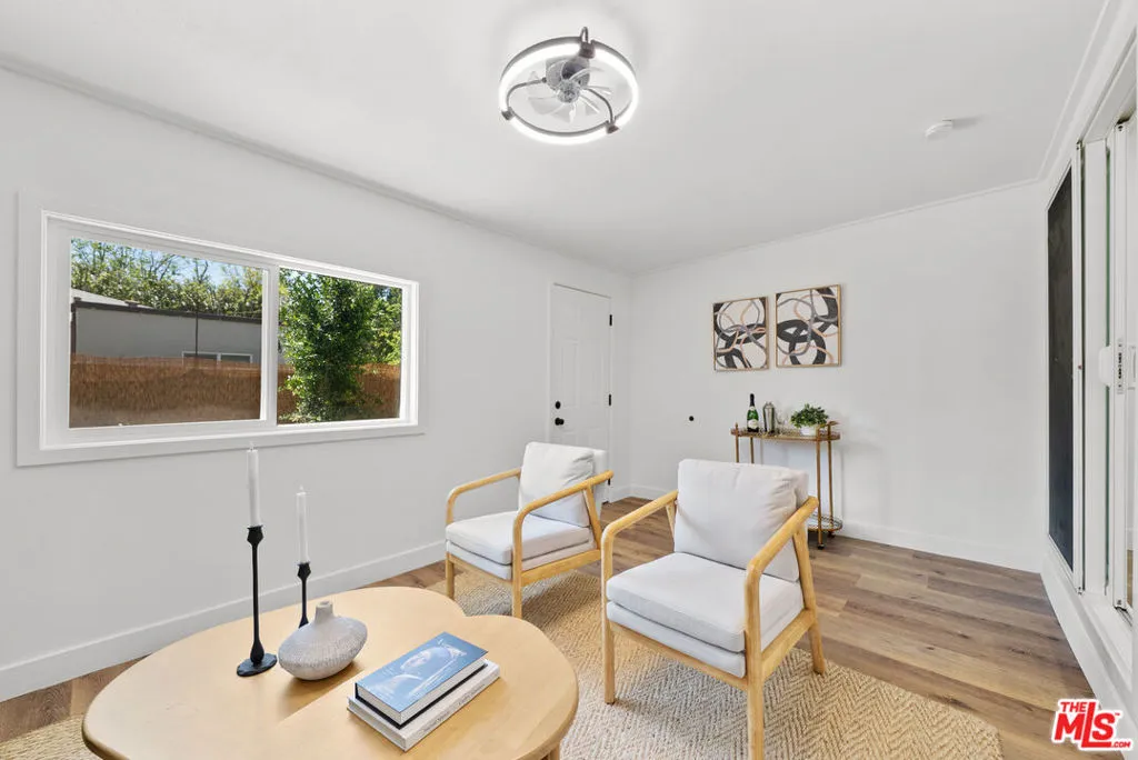 Welcome to your refreshed and redone, move-in-ready modern masterpiece! Set behind a fully gated, sprawling corner lot in Van Nuys, this turnkey property offers unmatched privacy and an exceptionally functional design suited for any lifestyle. Step inside to discover a bright, open-concept layout anchored by a spectacular, fully remodeled kitchen. Whether you love hosting grand events or enjoying quiet evenings at home, you will instantly appreciate the gleaming quartz waterfall island, premium stainless steel appliances, and custom cabinetry equipped with smart built-in USB outlets. This vibrant space flows seamlessly into the formal dining area, beautifully unified by brand-new waterproof vinyl flooring, elegant recessed lighting, and sleek modern fans that enhance the home's fresh, contemporary aesthetic. The versatile floor plan features an incredible private primary suite that serves as your personal everyday sanctuary. This exclusive retreat boasts a luxurious, spa-inspired en suite bathroom and an attached bonus flex space perfect for a private home office, a sprawling walk-in closet, a nursery, or a cozy reading nook. You will find two additional generously sized bedrooms alongside a completely renovated guest bathroom. Elevating the home's adaptability, the layout also includes a separate, flexible bonus room ideal for a creative studio, media room, a fourth bedroom or an office area, making remote work or pursuing your personal passions an absolute breeze. Step outside to discover your own tranquil, tree-canopied oasis. Multiple lounge areas scattered across the expansive front and back yards make al fresco dining and outdoor entertaining magical under thoughtful dusk-to-dawn lighting. The home radiates instant curb appeal from the street with a freshly painted exterior, an attached 2 car garage w/ new modern door, and a newly paved, fully gated driveway offering abundant parking for multiple vehicles. You can enjoy total peace of mind knowing every major system has already been upgraded: a newer central HVAC with a Nest thermostat, double-pane tinted windows, a newer shingle roof, updated plumbing, and a brand-new 200-AMP electrical panel. Maximizing the property's incredible value, the garage is perfectly primed for a rapid ADU conversion. Already outfitted with new drywall, fresh paint, sensor lighting, an epoxy floor, it is ready to be transformed into a private guesthouse, a multi-generational living space, or an income-producing rental. Don't let this stunning turnkey Van Nuys gem slip away!