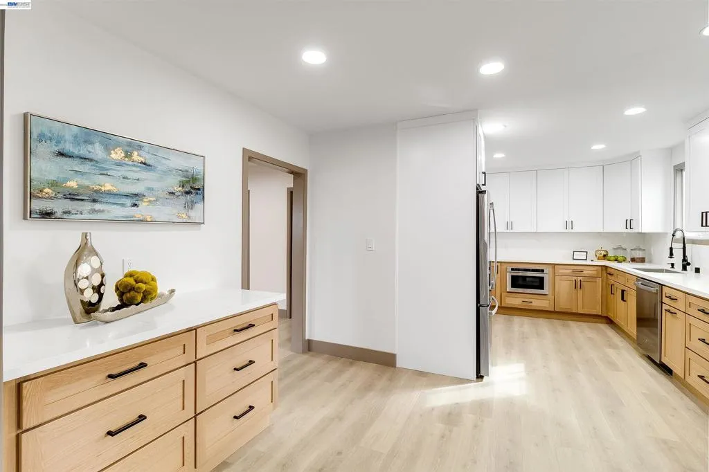 Remodeled home situated on an expansive 11,860 sq ft corner lot in the heart of El Cerrito. This impressive 3,912 sq ft residence can be operated as a duplex and features a versatile layout ideal for extended family living or generating rental income. The main level includes 3 bedrooms, 2 bathrooms, a kitchen, separate dining room, large living room, den, and laundry area. The lower level offers a fully independent living space with a separate entry, full kitchen, laundry, and 2 full bathrooms. The lower level also presents the potential to be separated into two units—a studio and a 2-bedroom, 1-bath unit—providing even greater flexibility for multi-generational living or additional income opportunities. The home showcases modern, beautifully updated kitchens, dual-pane windows, and recessed lighting throughout. A double garage, large bonus storage areas, and abundant storage throughout the home and basement add to the functionality. Situated on a huge lot, the outdoor space is equally appealing, featuring a backyard BBQ area perfect for entertaining, a wood deck where you can enjoy the views, and a gated side yard offering wide access for a boat or other large vehicles or recreational toys. Located in a welcoming residential neighborhood, the home is just moments from parks and outdoor recreation, including Hillside Natural Area and Ohlone Greenway. Commuters will appreciate the close proximity to El Cerrito Del Norte BART station. This property also offers exciting potential to subdivide under the SB9 providing the opportunity to build a second home on this exceptional lot.