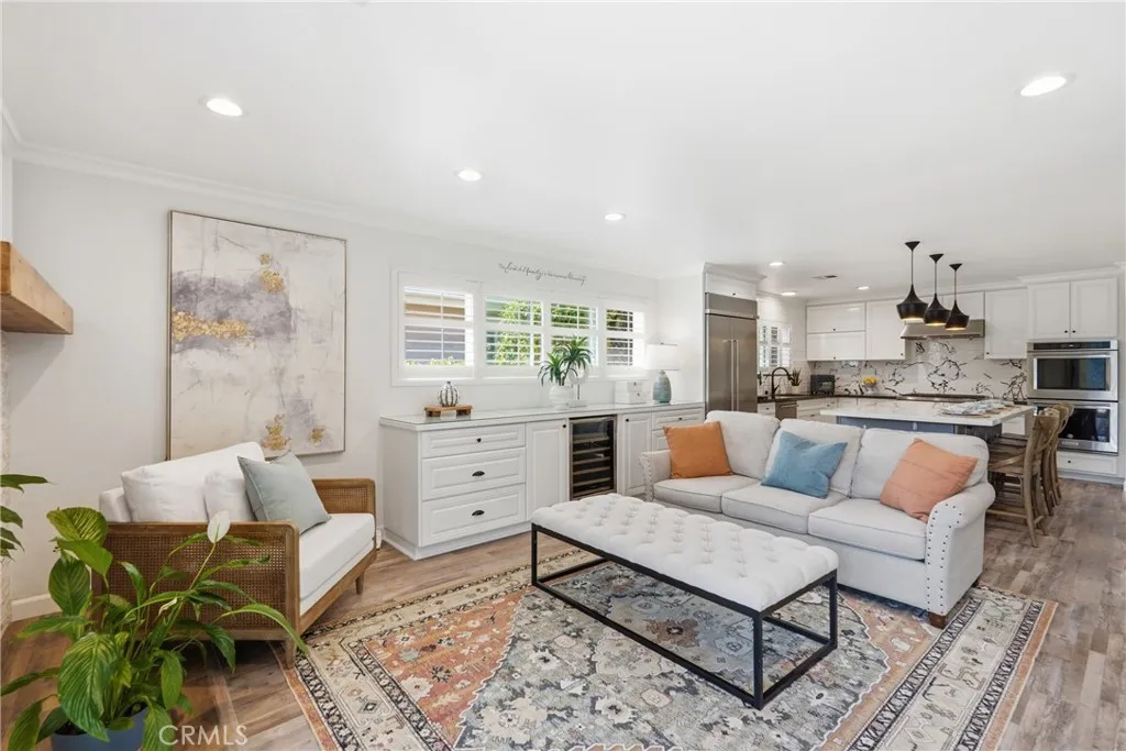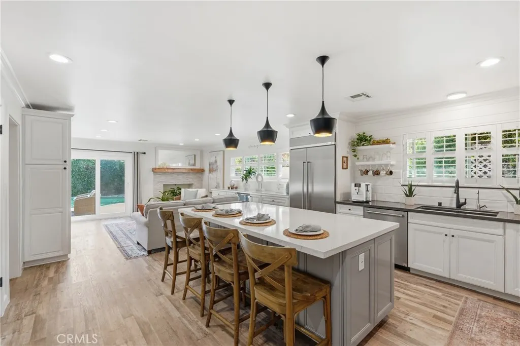 This tastefully updated single-level Roth home offers 3 bedrooms and 2 bathrooms across a spacious 7,200 sq ft lot in one of Manhattan Beach’s most desirable neighborhoods. Engineered hardwood flooring runs throughout, creating a cohesive and modern feel. Step into an oversized living room filled with natural light, featuring vaulted ceilings, crown and base molding, and direct access to the attached garage. The generous layout flows seamlessly into a dining area, creating an inviting space that easily accommodates both everyday living and formal entertaining. The fully remodeled kitchen is designed for gathering, featuring high-end appliances, a large center island, and an open flow into the family room. A warm fireplace anchors the space, while seamless access leads to a lush, private backyard—complete with a sparkling pool—perfect for indoor-outdoor living and entertaining. Outside, enjoy a peaceful and private south-facing backyard designed for year-round coastal living. Thoughtfully designed for comfort and privacy, the bedroom wing includes two generously sized guest bedrooms and a beautifully remodeled hall bathroom. The primary suite serves as a serene retreat, offering a spa-like bathroom with elegant tile flooring, a walk-in shower, and a soaking tub. Located on a wide, tree-lined street just blocks from award-winning schools, this home is within close proximity to the beach and just minutes from Manhattan Village’s premier shopping and dining. A rare opportunity to own a turnkey Roth home that perfectly blends style, comfort, and location.