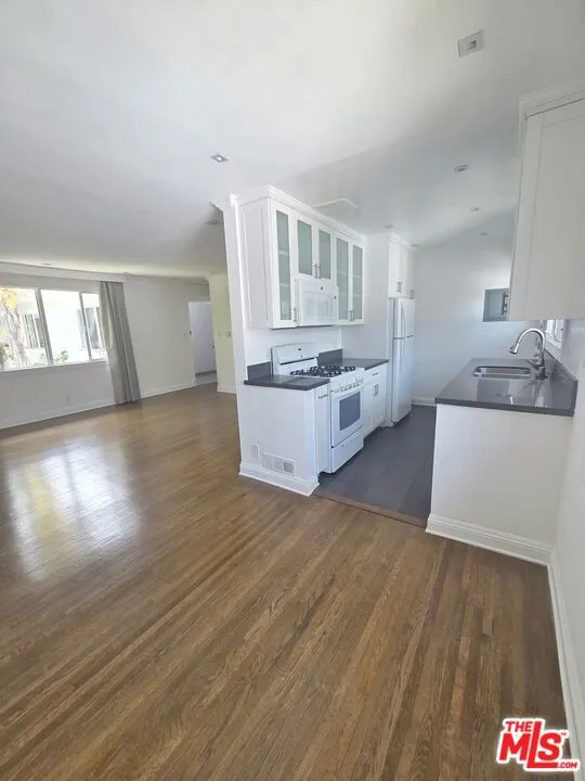 Introducing an exquisite apartment for lease in Santa Monica's most coveted neighborhood, just 300 feet away from Ocean Ave, North of Montana. Discover a coastal oasis nestled within a quiet corner of San Vicente Blvd. This mid-century walk-up building offers a unique, blooming with flowers courtyard, that leads directly to garages and a delightful sun deck area. Immerse yourself in the beauty of this apartment complex with easy access to Palisades Park, breathtaking sunset views, the beach, Montana Ave shopping, and an abundance of fine dining options. Step inside this remarkable 1-bedroom unit and be greeted by its charm. The kitchen features stylish cabinets, complemented by quartz countertops, sleek appliances, and elegant wooden floors. LED lighting illuminates every corner, creating a welcoming ambiance throughout the space. Step out of the kitchen exit door onto the staircase landing balcony that connects you to the backyard with a direct access to garages. Experience the prime location of Santa Monica as you enjoy the beach lifestyle from this idyllic setting. Take leisurely walks to the bluffs and relish in the stunning 180-degree ocean views. This unit also comes with one parking spot in a detached shared garage. There is a balcony from the kitchen door connected to the staircase leading to the backyard. Laundry area is on the premises of the building. The apartment comes unfurnished, 1 year lease, located on 2nd (top) floor. Pet friendly. Broker/Agent does not guarantee accuracy of square footage, lot size, ordinances, zoning, rent control, permits, use code, schools and/or other information concerning the listing.