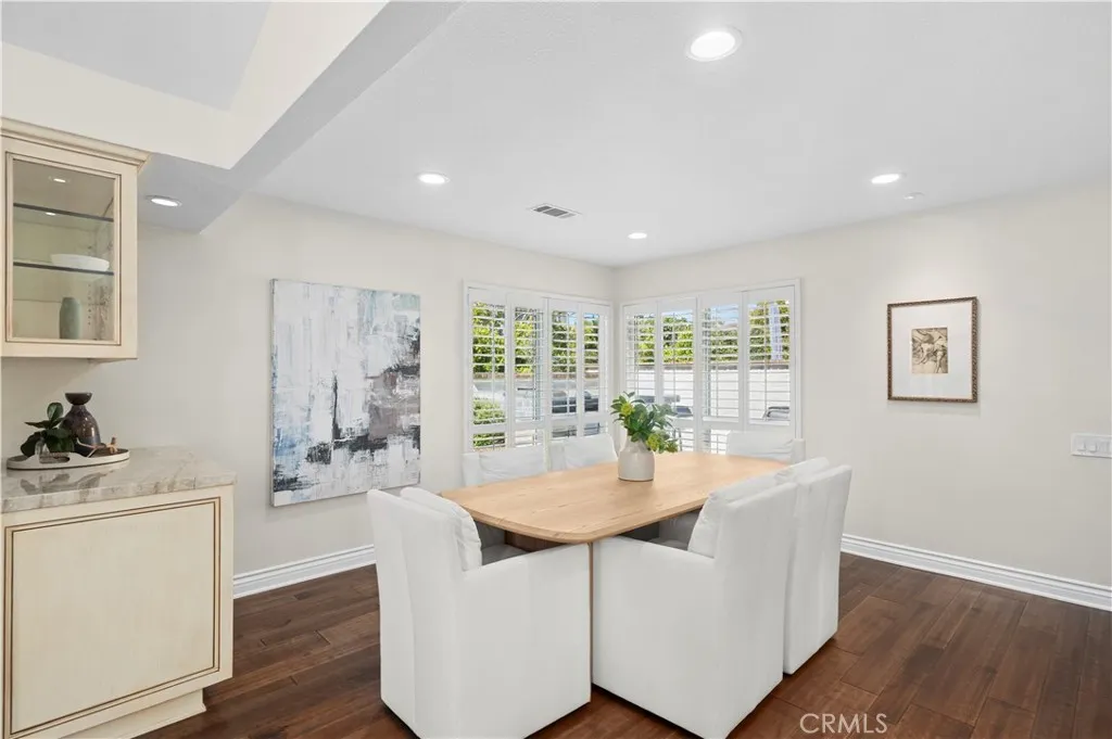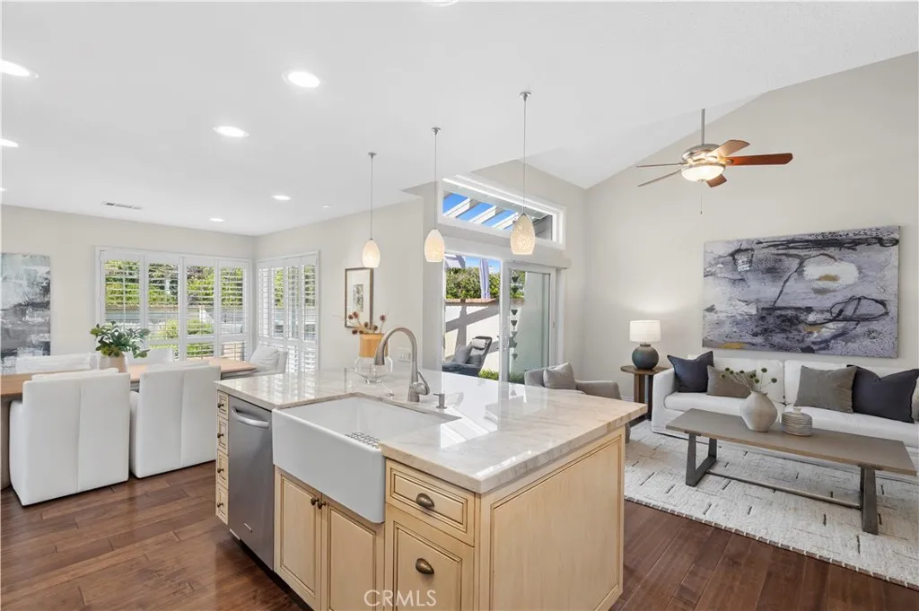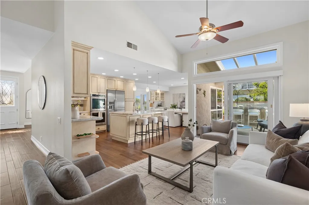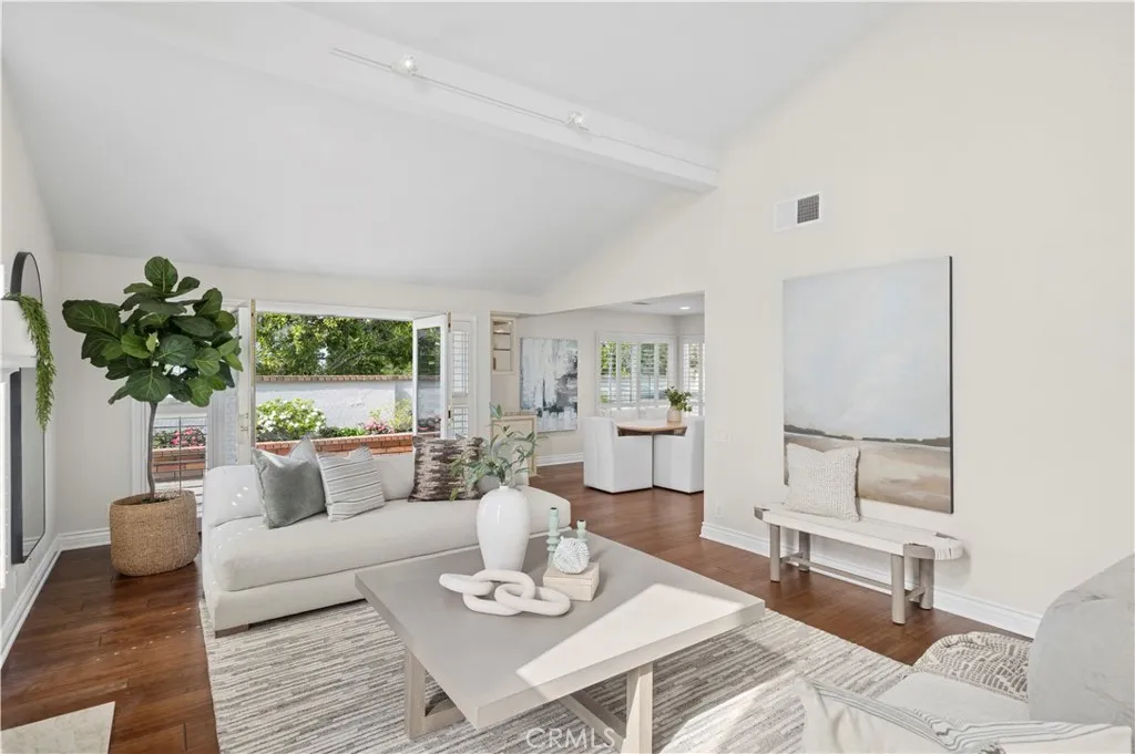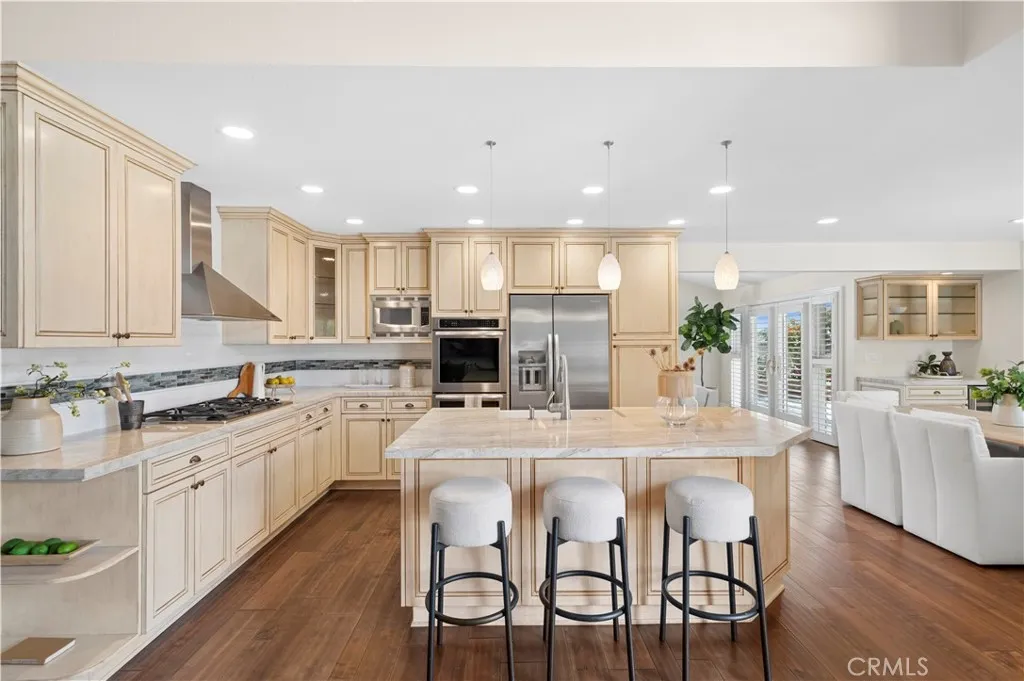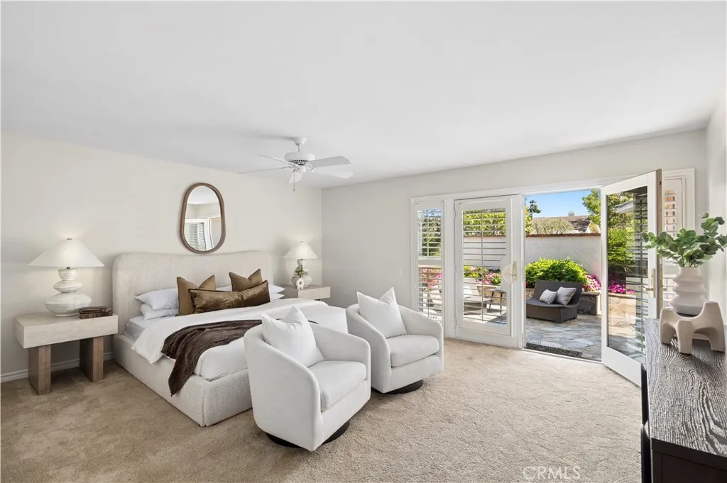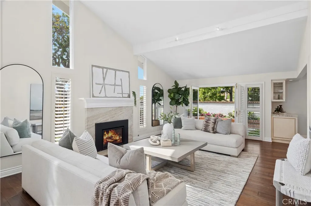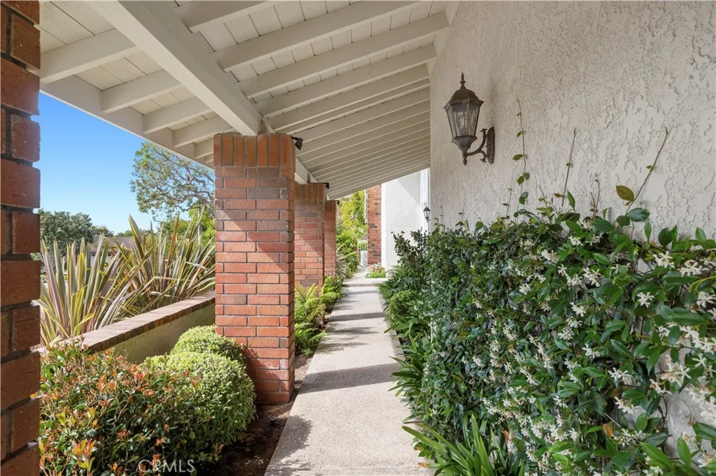Located in the highly sought-after enclave of Jasmine Creek, this beautifully maintained residence offers the ease and elegance of single-level living in one of Corona del Mar’s most desirable communities. A lush, grand entry introduces the home, opening to a light-filled interior defined by soaring vaulted ceilings, an abundance of windows, and French doors that create a seamless indoor-outdoor flow. This exceptional end-unit, 3-bedroom, 2-bath floor plan is defined by its ease of flow and livable sophistication. The inviting living room is highlighted by a fireplace with a classic mantel and opens directly through French doors to a private patio. Adjacent, the dining area sits conveniently beside the kitchen, creating an easy flow for serving. The open kitchen features a central island with breakfast bar seating, extensive cabinetry, stone countertops, a built-in range, dual ovens, stainless steel appliances, and a designer tile backsplash. A separate family room extends the living space and opens through sliding glass doors to a central courtyard patio, complete with a built-in BBQ, serving bar, and generous space for outdoor dining and entertaining. The spacious primary suite provides a serene private patio, an additional sitting area, a generous walk-in closet, and a well-appointed bath with dual sinks, vanity area, and a separate soaking tub and walk in shower. Residents of Jasmine Creek enjoy resort-style amenities including a 24-hour guard-gated entrance, multiple pools and spas, tennis courts, expansive ocean-view greenbelts, and a welcoming clubhouse. Ideally located in Corona del Mar, this exceptional home offers close proximity to world-class beaches, premier coastal shopping, acclaimed dining, and award-winning schools, capturing the very best of the coastal lifestyle.