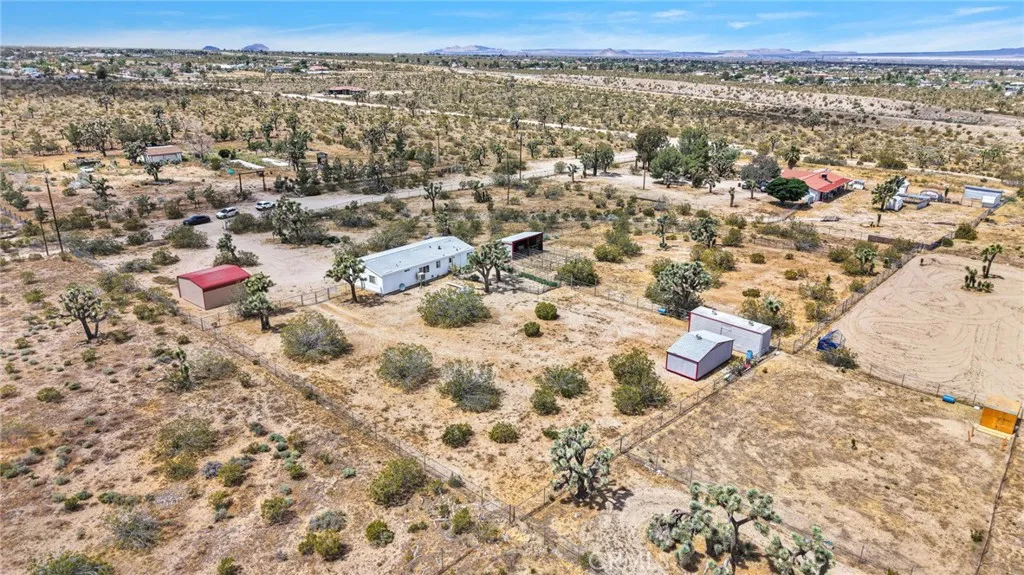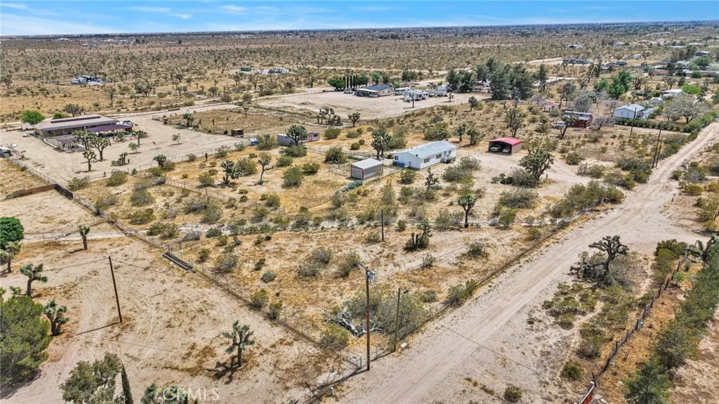 You can stop looking—this charming 3-bedroom, 2-bath manufactured home on a permanent foundation sits on 2.3 acres of fully fenced and cross-fenced land, offering the ideal setup for horse property, rural living, and outdoor lifestyle buyers. The home features a desirable split floor plan, a welcoming living and dining area, and a bright kitchen with center island. A separate laundry room adds everyday convenience, and the spacious primary suite provides a comfortable retreat. Move-in ready and well maintained. Designed for equestrian and animal use, the property includes 2 horse stables, open acreage for grazing, and plenty of space for round pens, turnouts, trailers, or additional improvements. Natural desert landscaping has been preserved to provide shade and a functional environment for animals. Additional features include a large covered structure for RV parking, trailers, or equipment, a storage shed, and a shipping container for feed, tack, or tools. Located in a horse-friendly, animal-friendly community with easy access just a short distance off the paved road—ideal for commuters, haulers, and everyday convenience. A rare opportunity for those seeking horse property, acreage, and a move-in ready home in Phelan.