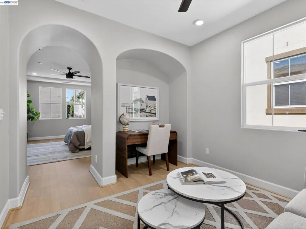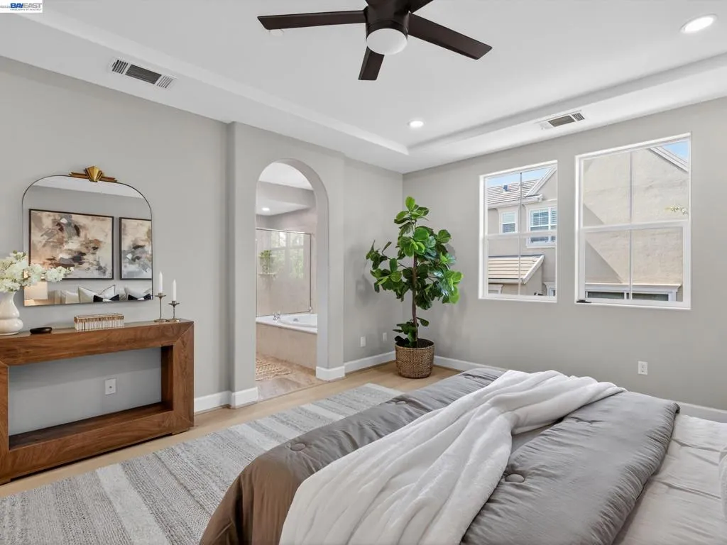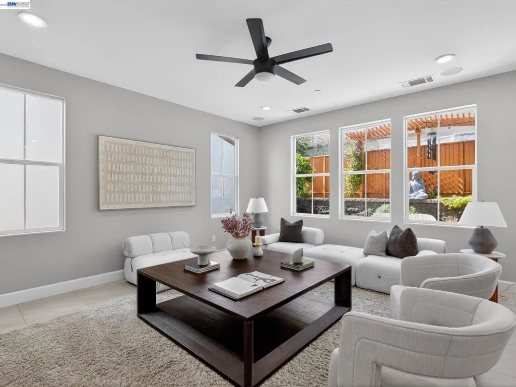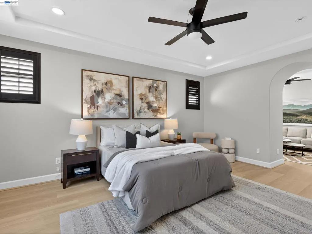 Many upgrades—perfect move-in ready home. Largest home in the Gale Ranch Iriana neighborhood, featuring the best-looking elevation with a balcony. Excellent location—walk to all 3 top San Ramon schools. Well-connected downstairs layout with a living room featuring a fireplace, separate dining area, butler’s pantry, powder room, and gourmet kitchen with extended counters, cabinets, island seating, breakfast nook, gas range, stainless appliances, and granite countertops, plus a family room with a media niche. Upstairs features a primary bedroom with a lavish bath and walk-in closet; bedroom 2 is currently used as a retreat; bedroom 3 includes an attached bath suite and balcony; bedrooms 4 and 5 share another common bathroom; and there is convenient upstairs laundry with cabinetry. $100K+ in upgrades. Owned solar system, water softener, purifier, fans in all rooms, and a finished garage with designer flooring, storage cabinets, and Tesla EV charger. Landscaping includes pavers in the back and side yards. Well-cared-for home with brand-new upgrades, including top-quality luxury vinyl flooring with soft underlayment, moldings, taller baseboards, new interior paint, modern electrical ceiling lights with night light feature, modern vanity lights and fixtures, new fence paint, and more. Low HOA dues, well-maintained Mosaic community rec center, clubhouse, two pools (large pool and children’s wading pool), and numerous parks and trails nearby. Open Fri, Sat & Sun.