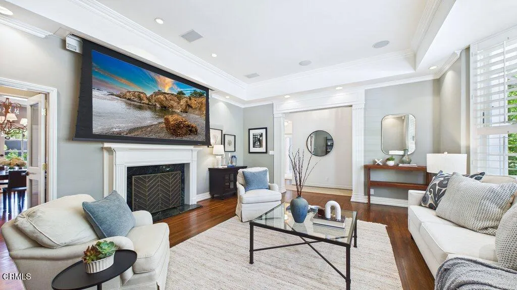 Nestled on a charming cul-de-sac in the highly coveted 'Vale of Annandale' enclave of Pasadena's prestigious San Rafael Hills neighborhood, this beautifully reimagined residence blends timeless elegance with modern indoor-outdoor amenities and living. Originally built in 1940 and thoughtfully transformed, the home offers an exceptional layout designed for both everyday comfort and effortless entertaining. From the formal entry with its cathedral ceiling, you are immediately drawn to a spacious living room featuring an elegant fireplace--ideal for both quiet evenings and stylish entertaining with an integrated media screening system. The family room includes custom floor-to-ceiling built-ins and breathtaking views of the lushly landscaped rear grounds. Throughout the home, French doors in the kitchen, dining room, den, and primary bedroom invite natural light and create a seamless connection to the outdoors. The main level offers a beautifully remodeled chef's kitchen that flows into the formal dining room, along with four generous bedrooms and four full bathrooms featuring updated finishes. Notable amenities include: Integrated Technology: Surround sound with built-in speakers inside and out; Smart home features including remote control of pool, spa, lighting, heating and cooling. Wine Cellar: A downstairs space capable of storing 2,000 bottles. Versatile Attic: A bonus 940 sq. ft. finished upper level with storage, a holiday planning and gift-wrapping station, and flexible space for an office, studio, or lounge. The private backyard retreat is an entertainer's dream, featuring a brick patio, built-in gas grill, and an outdoor living room with a fireplace. The grounds also include a sparkling pool with waterfalls, a resort-like spa, a sports court, and a golf putting green. Multiple spaces invite comfort, relaxation and entertaining in a serene, resort-like setting. Ideally located just a few minutes from Old Town Pasadena and the trails of South Arroyo, the Rose Bowl, and DTLA, and in close proximity to beloved local favorites including Little Flower, Stoney Point, San Rafael Park & Library, this unique and exceptional property offers a rare blend of privacy, sophistication, and lifestyle with modern convenience in one of Pasadena's most desirable and prestigious locations. The combined main level, wine cellar and bonus upper level attic space brings a total of 3,821 sq ft making this a highly coveted, unique and rarely available property.