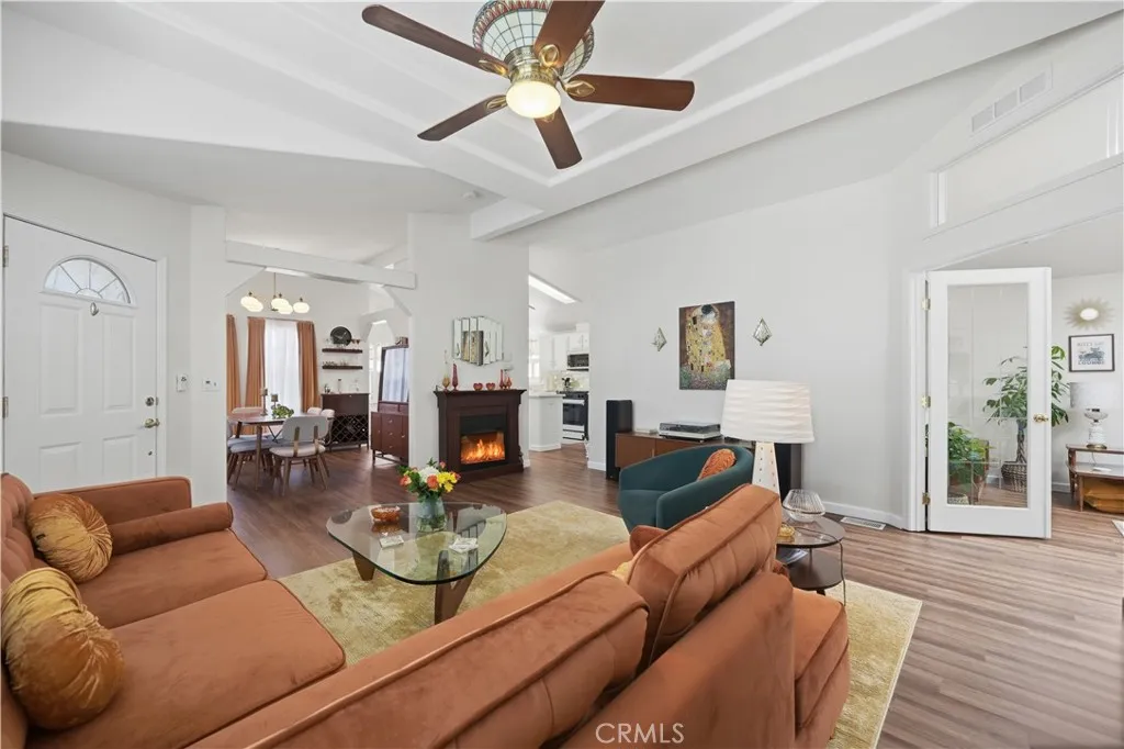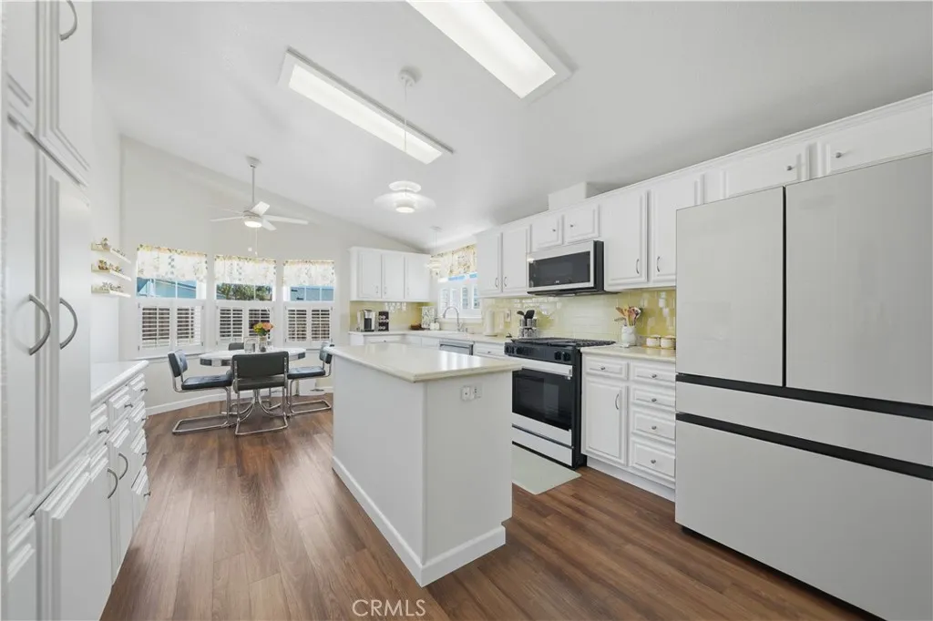 Welcome to this beautifully upgraded 3-bedroom, 2-bath home located in the highly desirable 55+ community of Sun Meadows. Thoughtfully updated throughout, this home offers modern comfort, stylish finishes, and low-maintenance living. Step inside to find all-new interior paint in a neutral palette, complemented by durable and stylish Cortec 8mm WPC stain-resistant flooring throughout the main living areas and plush new carpet in the bedrooms. The home is enhanced with crown molding in the kitchen, living room, hallways, bathrooms, and bonus room, adding an elegant touch. The upgraded kitchen is a true standout, featuring professionally refinished cabinetry, a sleek glass tile backsplash, brand-new high-end Samsung Bespoke white glass appliances, a new double sink and faucet, updated lighting, and a ceiling fan. Plantation shutters over the sink bring in natural light while maintaining privacy. Both bathrooms have been tastefully updated with refreshed cabinetry and fixtures. The spacious primary suite includes a newly installed ceiling fan for added comfort. Additional interior highlights include an updated indoor laundry room with both gas and electric hookups, plus a convenient pantry and built-in desk area—perfect for everyday functionality. Enjoy outdoor living with an extended, enclosed screened-in patio and a low-maintenance yard featuring turf in the front and mature citrus trees—including Meyer lemon and mandarin orange in the backyard. Auto enthusiasts and hobbyists will appreciate the large 2-car garage with a 10x10 extended workspace, built-in storage cabinets, and overhead storage. Residents of Sun Meadows enjoy resort-style amenities with no additional fees, including a pool, spa, sauna, tennis court, putting green, horseshoe and bocce areas, a 4-lane shuffleboard court, arts & crafts room, and a spacious clubhouse with card rooms, billiards, lounge, kitchen, and event space. The community is pet-friendly (up to two pets) and offers an active social club, creating a vibrant and welcoming environment. Experience the perfect blend of affordability, comfort, and community living with reasonable land lease rates in one of the area’s most sought-after 55+ neighborhoods.
