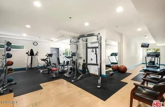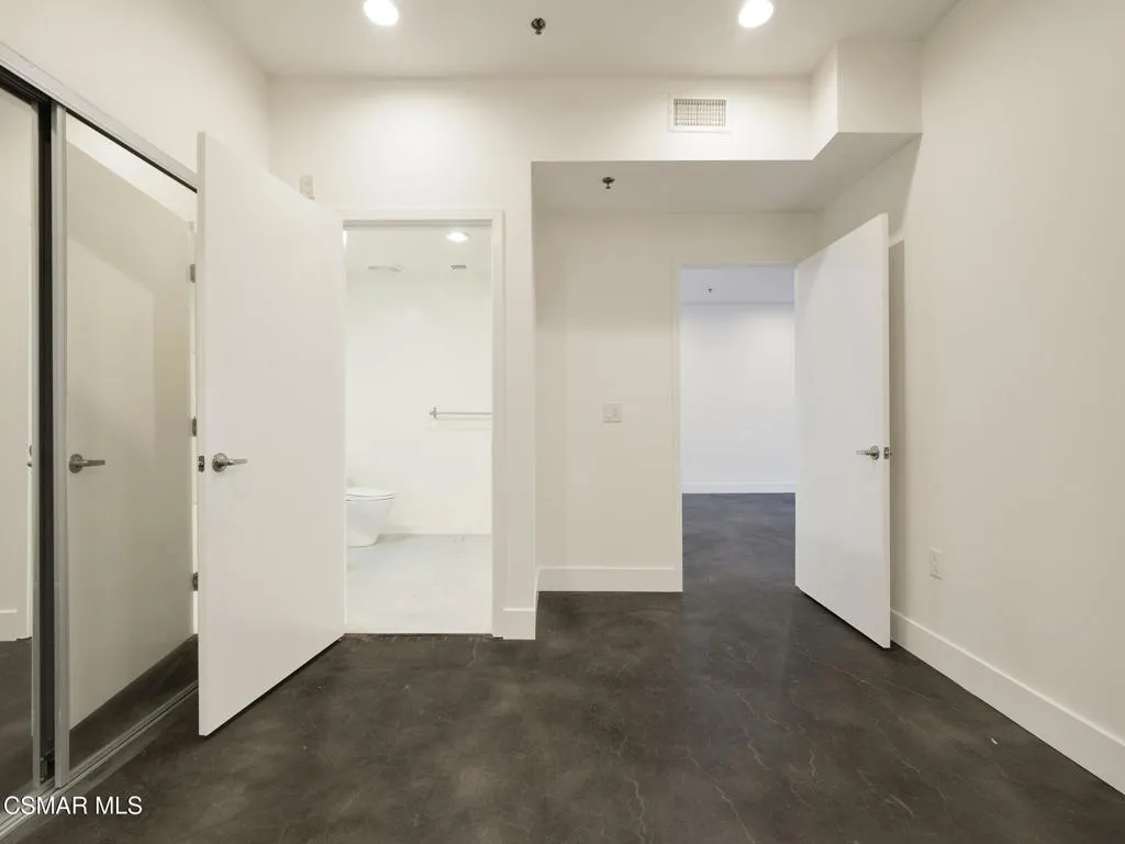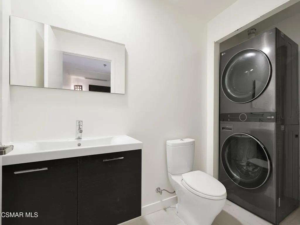 Welcome to 5016 Bakman Ave., 104 - a stylish 2-bedroom, 3-bathroom ground-floor condo offering 1,350 sq ft of refined living space in the heart of North Hollywood. An open-concept layout welcomes you with a light-filled living area, enhanced by updated concrete flooring, recessed lighting and a tasteful modern color palette. A large glass slider extends the living space outdoors to a private patio, creating a seamless indoor-outdoor flow ideal for relaxing or entertaining. The contemporary kitchen is designed with both form and function in mind, featuring stainless steel appliances, an upgraded industrial-style faucet and abundant cabinetry for exceptional storage. A convenient guest bathroom includes full-size stackable laundry hookups for added practicality. Both spacious bedrooms feature their own modern ensuite bathrooms, each appointed with dual vanities for comfort and convenience. Additional highlights include Lutron motorized window shades in the living room and kitchen, secured underground tandem parking and guest parking within the complex. Residents enjoy resort-style community amenities including a fully equipped fitness center with free weights, machines and treadmills. Ideally located near shopping, dining and public transportation - this gem offers exceptional urban convenience with a modern lifestyle appeal. Welcome home.