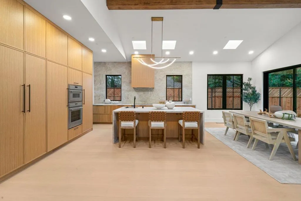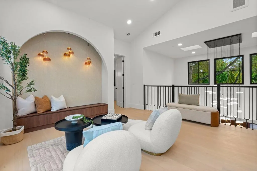 A rare, statement-level new construction by Sterling Homes, 15 San Juan Avenue sets a new standard in West Menlo Park. Spanning 4,726 sq. ft. across two levels on a private, tree-lined lot, this 5-bedroom, 5-bath Transitional residence delivers scale, design, and effortless indoor-outdoor living. The main level is built to impress. A dramatic vaulted great room opens seamlessly to the outdoor living spaces, creating a true California flow. The chefs kitchen anchors the home with a large island, butlers pantry, and central dining designed for both everyday living and entertaining. A private ADU with kitchenette and en suite bath offers flexibility for guests, office, or multigenerational use. Upstairs, a light-filled loft, dedicated laundry room, and well-appointed ensuite secondary bedrooms provide comfort and function. The grand suite is a retreat of its own, featuring two spacious walk-in closets and a spa-inspired bath with soaking tub, oversized shower, and refined finishes throughout. Located in the top rated Las Lomitas School District. Ideally positioned just blocks from Alameda de las Pulgas and minutes to Stanford University and Atherton, this home offers the rare combination of privacy, convenience, and elevated design.