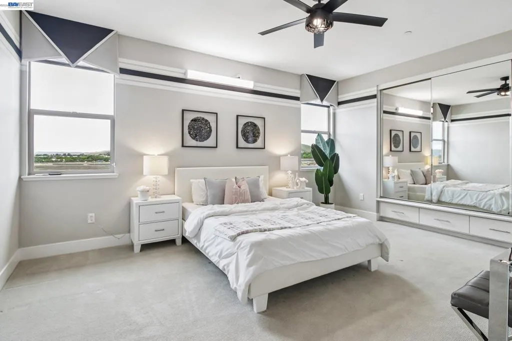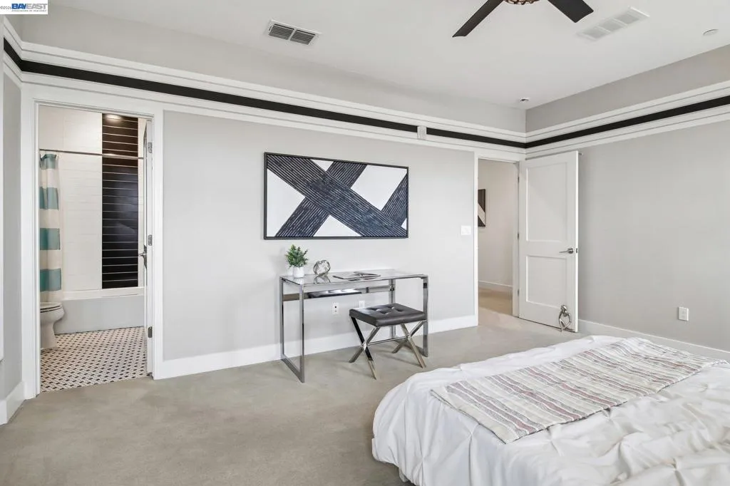Welcome to 601 Sandalwood Drive in Livermore, a stunning corner unit, former Shea model home showcasing over $80K in designer upgrades and a thoughtfully designed floor plan that blends style and functionality. The light-filled interior features an privacy from neighbors, and an updated kitchen with slab countertops, custom cabinetry, and seamless flow into the living and dining areas—perfect for everyday living and entertaining. A desirable main-level bedroom and full bath offer flexibility for guests or a home office, while upstairs you’ll find a spacious primary suite with a spa-like bath including a stall shower and separate soaking tub, plus an additional bedroom with its own full bath and a convenient laundry room. Enjoy modern efficiencies with a solar system and EV charger, along with the rare bonus of a 2-car driveway—an uncommon feature in this community. Residents enjoy resort-style amenities including a clubhouse, gym, pool, BBQ areas, and open green spaces. Ideally located near Costco Wholesale, vibrant downtown shops and dining, and just one exit from Dublin with easy access to Highway 84 and the Altamont Corridor Express, this home offers the perfect balance of comfort, convenience, and lifestyle.