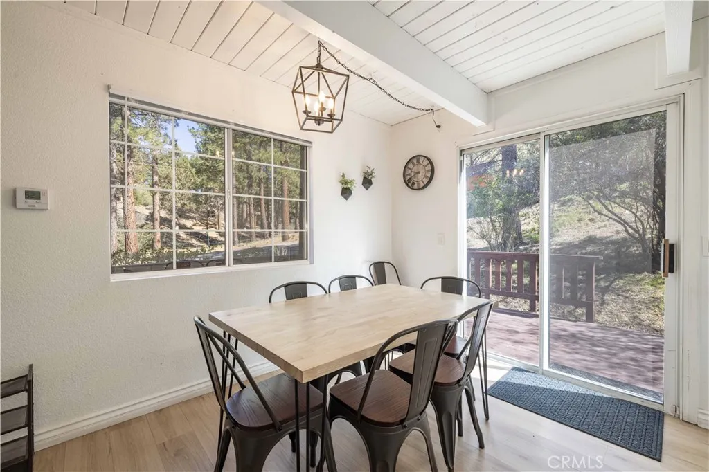 Tucked against a backdrop of wide-open wilderness, this updated mountain retreat delivers the kind of setting people come to Big Bear for. Sitting on an oversized corner lot with two APNs and direct access to over 200 acres of untouched land, you get privacy, space, and room to grow—all in one. Inside, the home strikes a clean balance between modern updates and cozy cabin feel. Vinyl flooring runs throughout, a fireplace anchors the living space, and the kitchen has been dialed in with quartz countertops, subway tile, and newer stainless steel appliances. It’s fully furnished, so whether you’re moving in or renting it out, there’s nothing to figure out. The backyard is where this one really wins. Hot tub under the stars, fire pit for late nights, BBQ for easy hosting, and a fully fenced yard with space for kids, dogs, or just breathing room. There’s also RV/boat parking and a powered shed that could easily turn into a game room, studio, or bonus hangout space. The two APNs open the door for future options—build, expand, or split. And if you’re looking at this as an investment, it’s already proven itself with 230+ five-star Airbnb reviews and “Guest Favorite” status. Simple, functional, and set up to enjoy from day one—whether that’s for you or your guests.