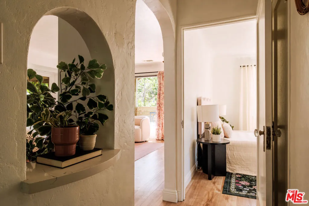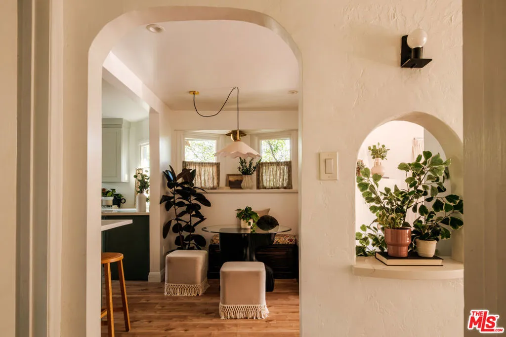 Nestled in the heart of Silver Lake, this timeless craftsman blends classic character with thoughtful modern updates just moments from the energy of Sunset Boulevard. The home carries a rare and storied past. In 1935, owner Laura D. Misson relocated it from Hollywood to its current setting, imbuing the property with a sense of history that's genuinely hard to find. Original architectural details remain beautifully intact throughout: graceful archways, delicate plaster work, and a charming faux fireplace that anchors the home with warmth. Behind a welcoming front porch, the bungalow unfolds with ease. The spacious living room is flooded with natural light through a generous bay window, while the dining room is made for entertaining, complete with handsome storage benches and a display shelf. The beautifully updated kitchen strikes the perfect balance of style and function, equally suited to quiet weeknight dinners and effortless gatherings. Both bathrooms have been tastefully renovated the primary bath in particular feels like a private retreat, with moody, spa-like finishes: quietly luxurious. The primary bedroom features a spacious walk-in closet with washer/dryer and customizable Container Store closet system. Thoughtful design moments carry throughout: gorgeous Nickey Kehoe lighting and hardware, and original crystal doorknobs that catch the light just so. Outside, mature (and low maintenance!) landscaping creates a serene and private setting with room to relax, dine, or simply breathe. The converted garage is a standout, functioning beautifully as an art studio or work-from-home space, with custom wood carriage doors that swing open to flood the space with light and air. And the lot itself is a genuine rarity: largely flat and fully usable, offering a true backyard experience that's increasingly hard to come by in Silver Lake. Updated systems are the cherry on top: newer central HVAC, newer roof, foundation updates and seismic retrofitting, upgraded plumbing and electrical. Walkability here is exceptional. Start mornings at Cafe Tropical, grab lunch at Botanica, or meet friends for happy hour at L&E or Greekman's. Sunset Junction, Erewhon, and the eclectic mix of boutiques, coffee shops, and dining along Sunset are all just blocks away. With so much beauty to enjoy, this gorgeous home is chic, full of soul, and convenient to everything.