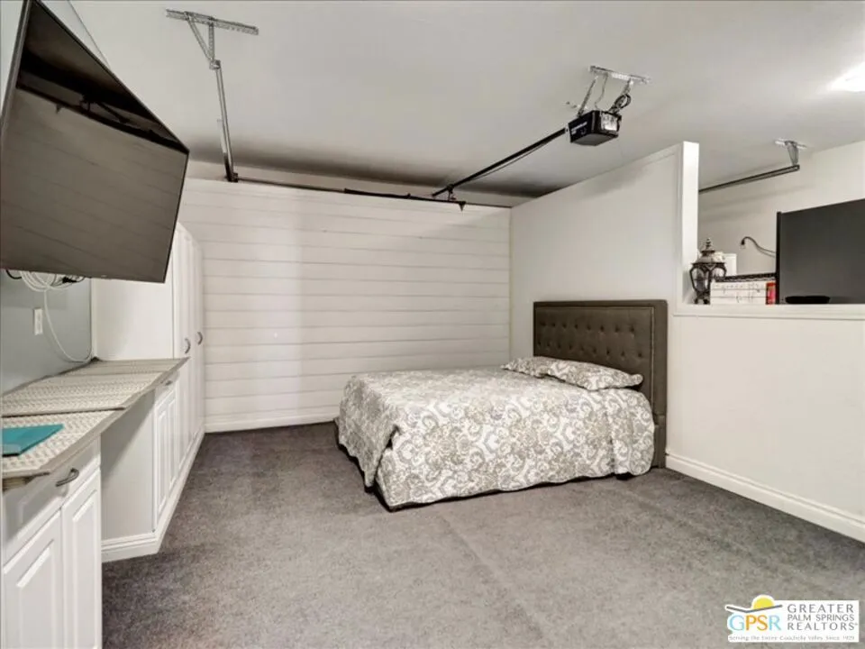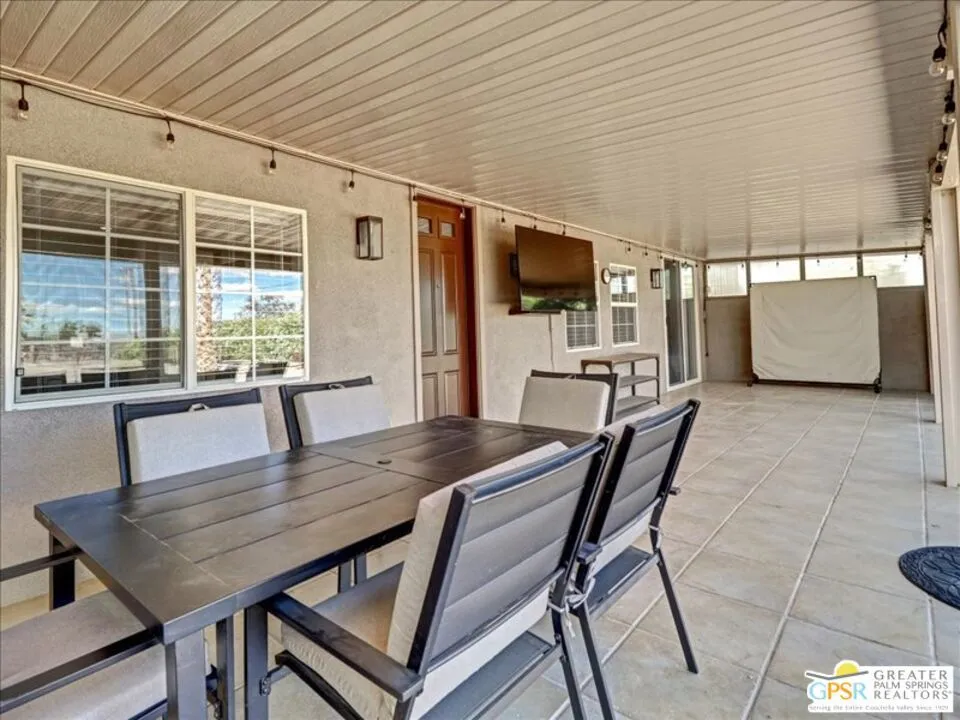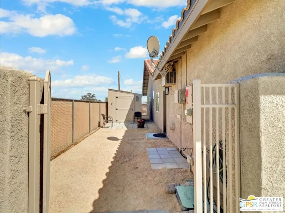Unique Desert Gem Features a Well Maintained 3 Bedroom / 2 Baths, Custom Window Blinds treatments, Open Concept (Living Room/Entry, Large Kitchen/Family Room w/Gas Fireplace, Mounted Flat Screen TV, Built-in Cabinetry to match the Custom Cherry wood Kitchen Cabinets with Quartz Counter Top and back splash. Very Large Pantry with additional storage in kitchen, Very Tall ceilings with recessed lighting in Hallways, Large Master Suite comes with Bath w/ Private Toilet, Separate Shower, Deep Oval Bathtub, Double Sink Vanity,Walk-in Closet). Hallway bath with (Double Sink Vanity, Shower/Tub Combo, Toilet). Large Back Patio (Mounted Flat Screen TV, 6 Seat Patio Table w/Chairs). Laundry Room with custom overhead cabinets, Homeschooling /Home Office/Business (Dedicated Space/Building, Sky Lights, Electricity, Phone Line, Internet, Mounted Flat Screen, AC/Heat) Setup in the Garage, Rear yard is equipped with Workshop ( Electricity, Lights, Shelving, Air Conditioner ). Storage (40 ft Container/Heavy Duty Muscle Shelving Units), That can be converted to a ADU with rear yard excess sliding gate entrance, Front yard was landscaped and rear yard was leveled and cleared, Front and Side yards has a sprinkler systems. Home is located on a Paved Street a Block away from HWY 62. Home has a 16 panel Solar System Leased, Seller is willing to pay off the Lease with the purchase. ( PROPERTY IDEAL FOR BUSINESS OWNER).