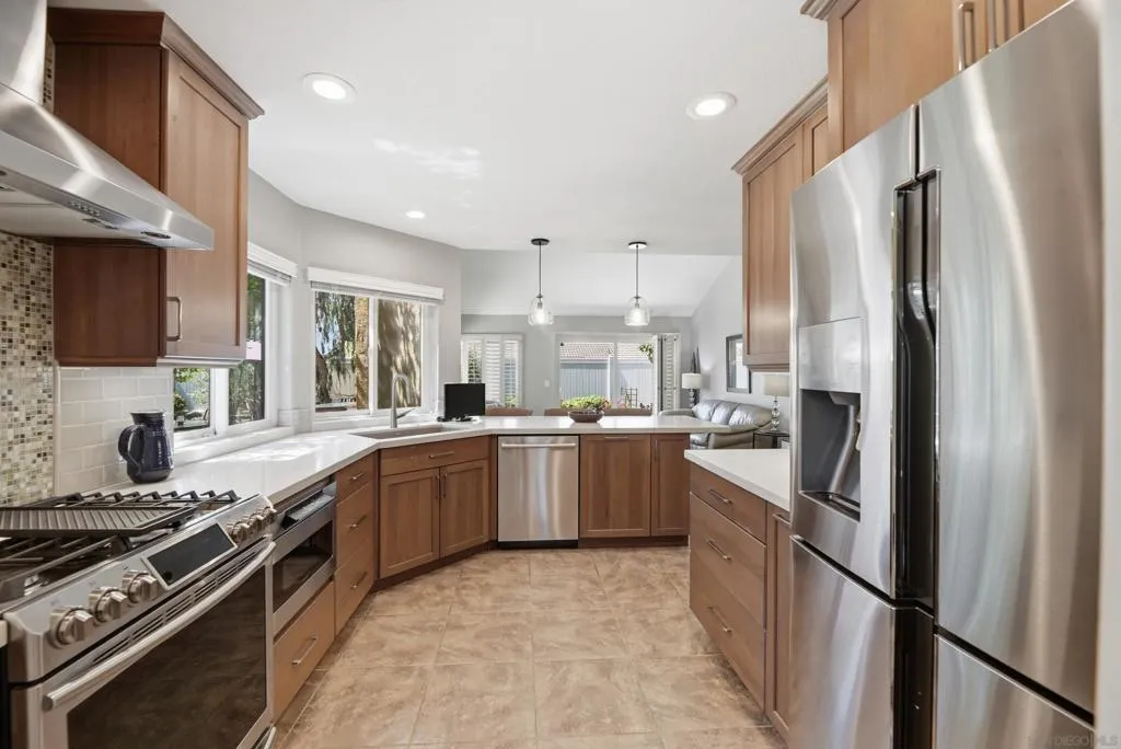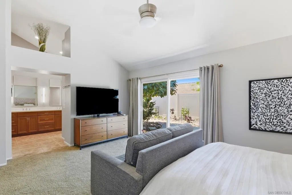 Located on a quiet cul-de-sac, this light, bright, and thoughtfully upgraded, home blends comfort with timeless improvements throughout. Vaulted ceilings with gorgeous beams create an airy, open feel the second you walk inside. Remodeled kitchen with soft close cabinetry, SS appliances, gorgeous backsplash and countertops, a plethora of pantry space, and complete with delightful pendant lighting and bar seating, this expansive home is your next move. The primary suite is a true retreat, highlighted by a beautifully remodeled bathroom complete with a spacious walk-in shower and an oversized walk-in closet. Complete roof lift and relay in 2005. Additional upgrades include Andersen windows and sliders, enhancing energy efficiency and natural light, as well as electronic shade screens in the the front living spaces, perfect for ease and efficiency. The polished backyard is a real retreat; complete with grassy areas, private seating areas, and mature trees that line the vinyl fencing. This wonderful Montelena home also features spacious bedrooms and large primary retreat tucked away toward the back of the home. This delightful house is located within Poway Unified School District, close to freeway access, and close to trails, shopping, and restaurants. Come see this amazing home today!