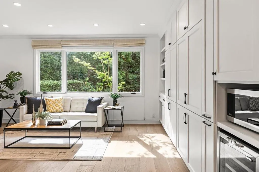 Elegant transitional Colonial in sought-after lower Hillsborough, set on a private, tree-lined lot. Light-filled interiors with garden views throughout. Kitchen with Carrera marble and Thermador appliances flows into gracious, defined living and dining spaces. La Cantina folding doors open to a resort-style backyard with built-in BBQ, firepit, and multiple entertaining areas. Renovated in 2020 with French oak floors, all new Marvin windows, and updated finishes throughout. Four bedrooms upstairs, including two spacious primary suites. Private, serene setting just moments from North School, Crocker Middle School, and Burlingame Avenues shops and dining