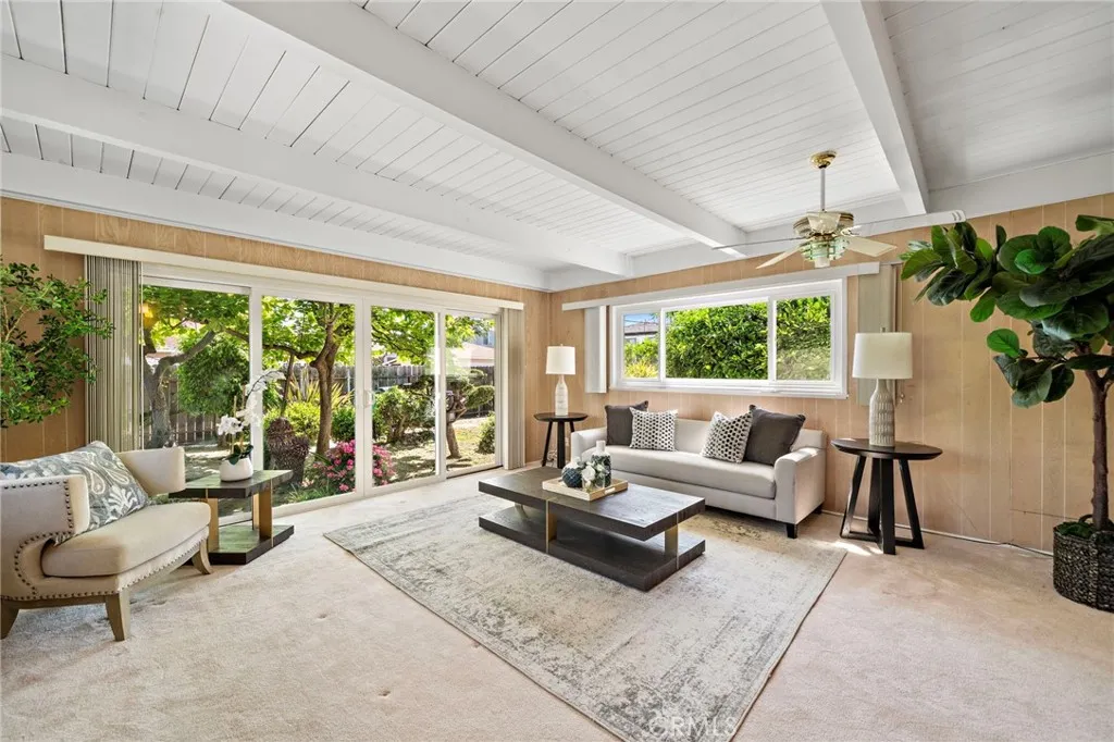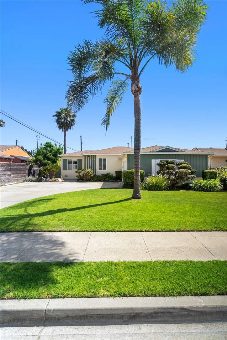 Absolutely charming, beautifully upgraded, and thoughtfully expanded single story home located in one of Midway City’s most desirable neighborhoods, just one block from Huntington Beach and within an award-winning school zone, close to Bella Terra, Old World Village, Golden West College, Little Saigon, and the beach, with convenient freeway access. This adorable 3 bedroom, 1 bath home offers approximately 1,363 square feet of comfortable living space, highlighted by a spacious family room addition featuring an open beam ceiling, mini-split A/C, and a wall of sliding glass doors that open seamlessly to the wrap-around backyard, creating the perfect indoor-outdoor flow for entertaining. The expansive yard includes multiple patio areas, wide side yards, a variety of fruit trees, and rear alley access through a back gate. The home boasts inviting curb appeal with a pristine lawn, lush tropical gardens, and a sweeping driveway that accommodates multiple vehicles and leads to a two-car garage. Step inside to an entry foyer that opens to a bright and welcoming living room and a sunlit kitchen with an eat-in dining area, tile countertops, gas range, vent hood, dishwasher, and abundant natural wood cabinetry. A convenient inside laundry room just off the kitchen offers additional storage. Most windows and sliders have been upgraded to dual pane, enhancing energy efficiency and comfort. The bathroom features tile flooring and tiled walls, a tub/shower combination with dual shower heads and grab bars, and all three bedrooms are equipped with ceiling fans. Perfect as a starter home, downsizing opportunity, or investment, this home offers charm, functionality, and an unbeatable location - a rare opportunity to enjoy expanded living space and coastal-close convenience at an exceptional value.