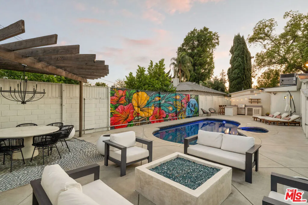 Set on a generous corner lot, this beautifully reimagined residence offers the perfect blend of style, comfort, and resort-inspired living. A charming front yard welcomes you home, setting the tone for what lies beyond an inviting sanctuary thoughtfully remodeled in 2022 with a newer roof and timeless upgrades throughout. Inside, a chef's kitchen anchors the home, seamlessly connecting to an open floor plan designed for effortless entertaining and everyday living. Light-filled spaces flow naturally from room to room, creating an atmosphere that feels both refined and relaxed. Step outside to a private backyard retreat where indoor-outdoor living truly shines. Enjoy a built-in BBQ and eat-in island, ideal for hosting gatherings, alongside an in-ground pool and spa that evoke a vacation-at-home experience. Evenings are elevated by a cozy fire pit and an inviting al fresco dining area, perfect for memorable moments under the stars. This is more than a home, it's a rare opportunity to own a turnkey property that celebrates space, style, and exceptional outdoor living.